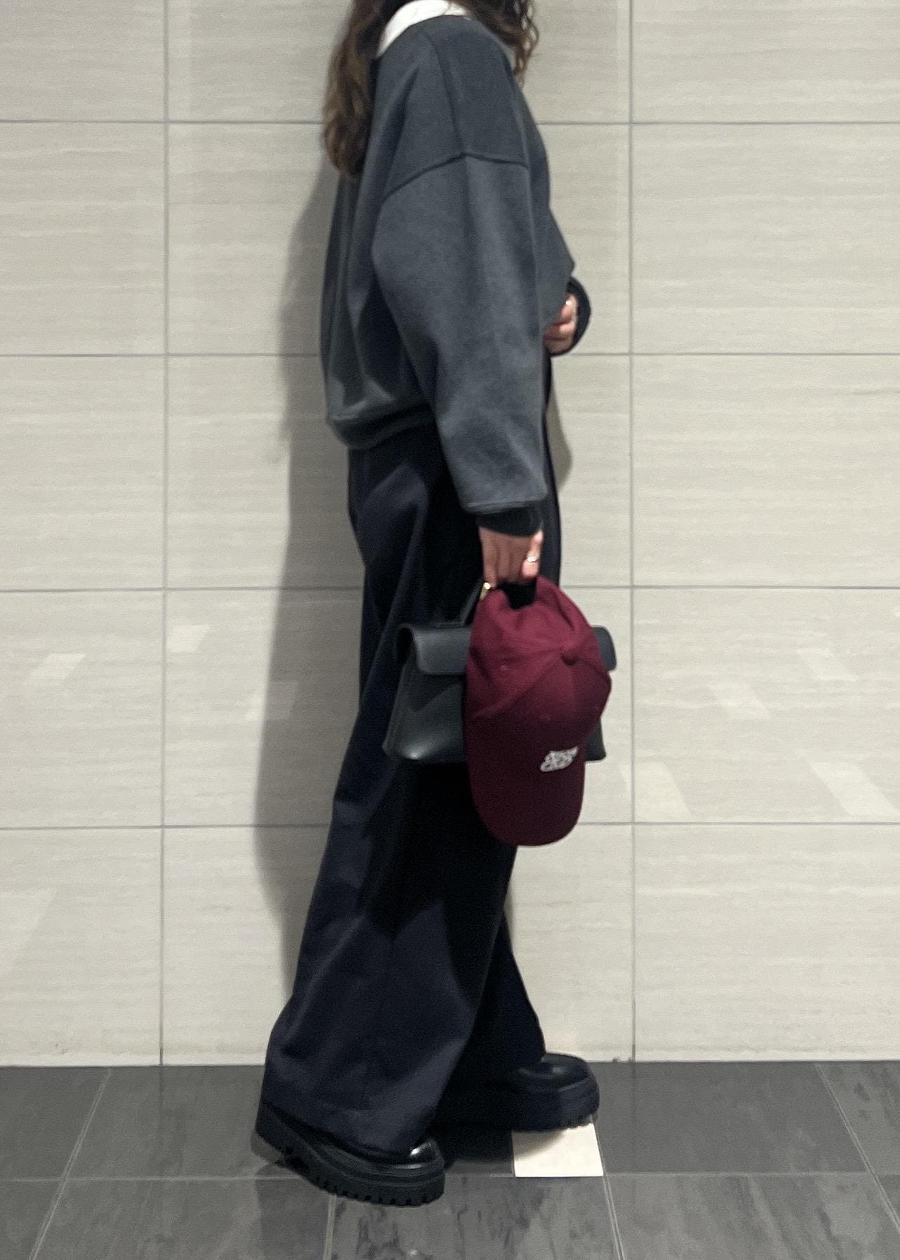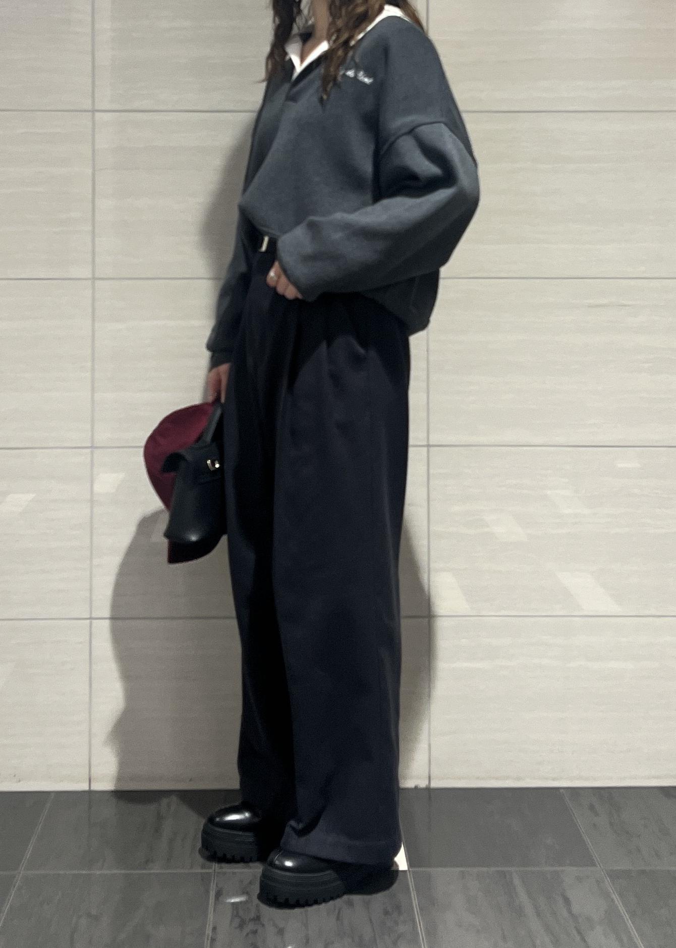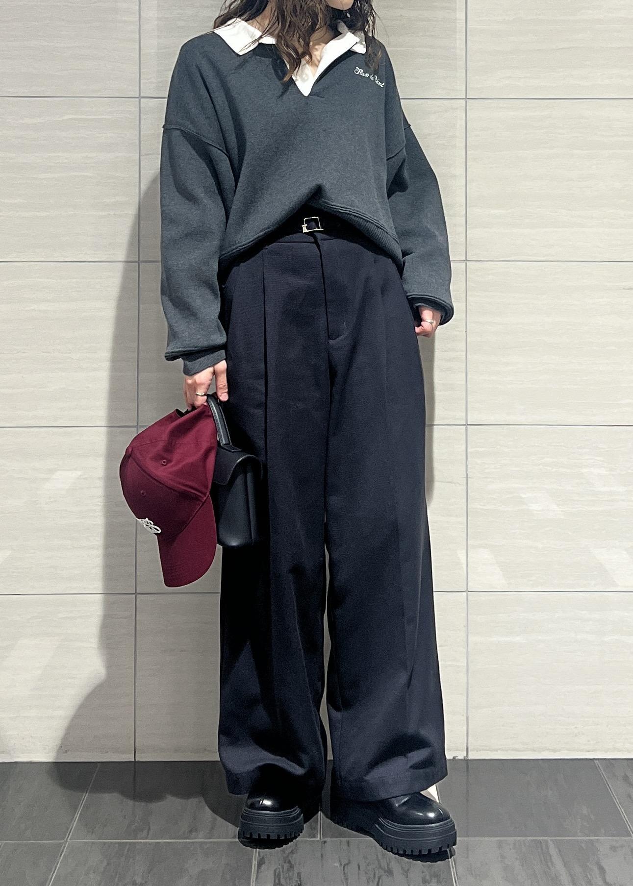 タック入りのワイドシルエットですが、落ち感があり広がりすぎず、すっきり着用できます。