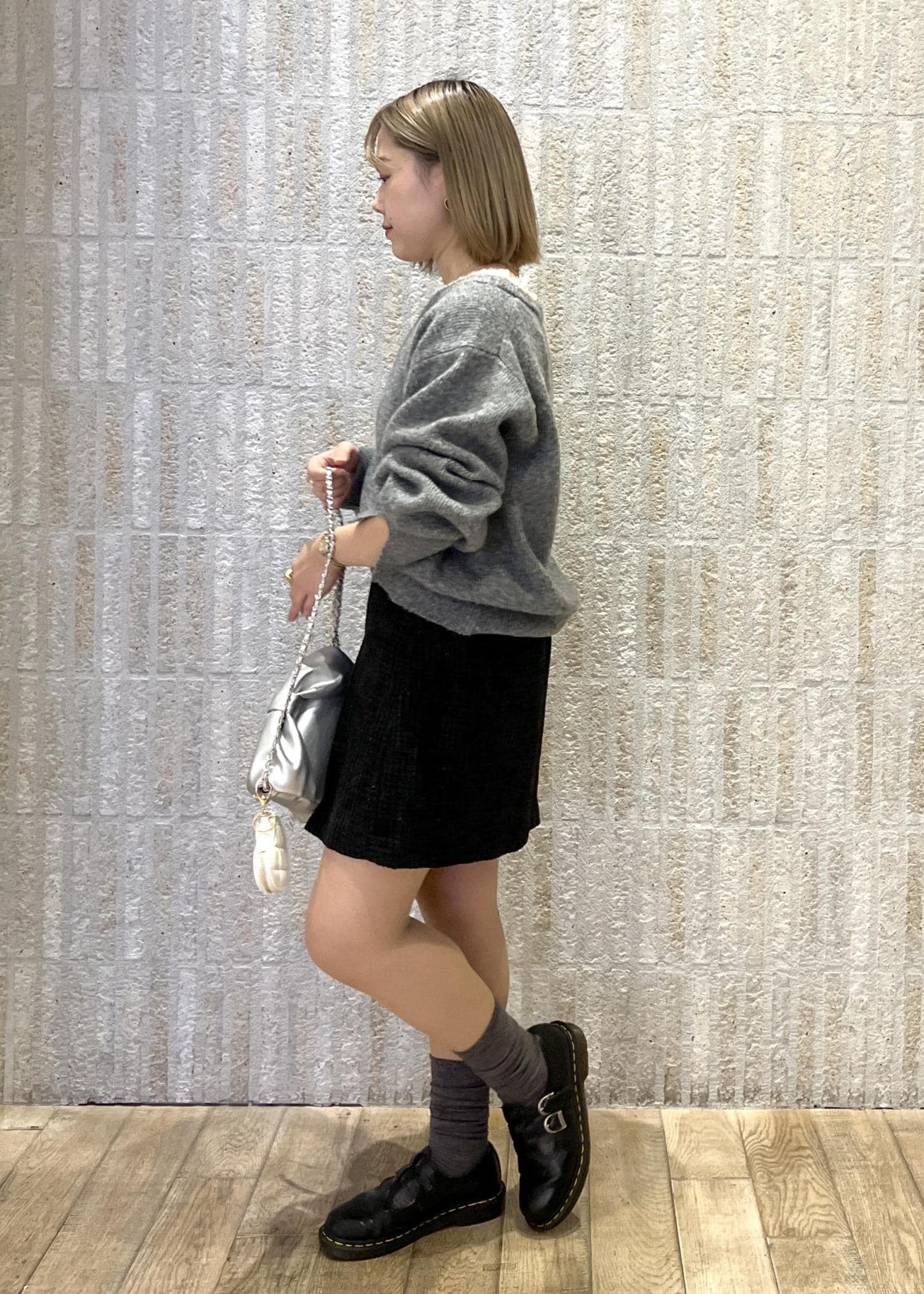 どんなアウターにも合わせやすいコーデですので、
