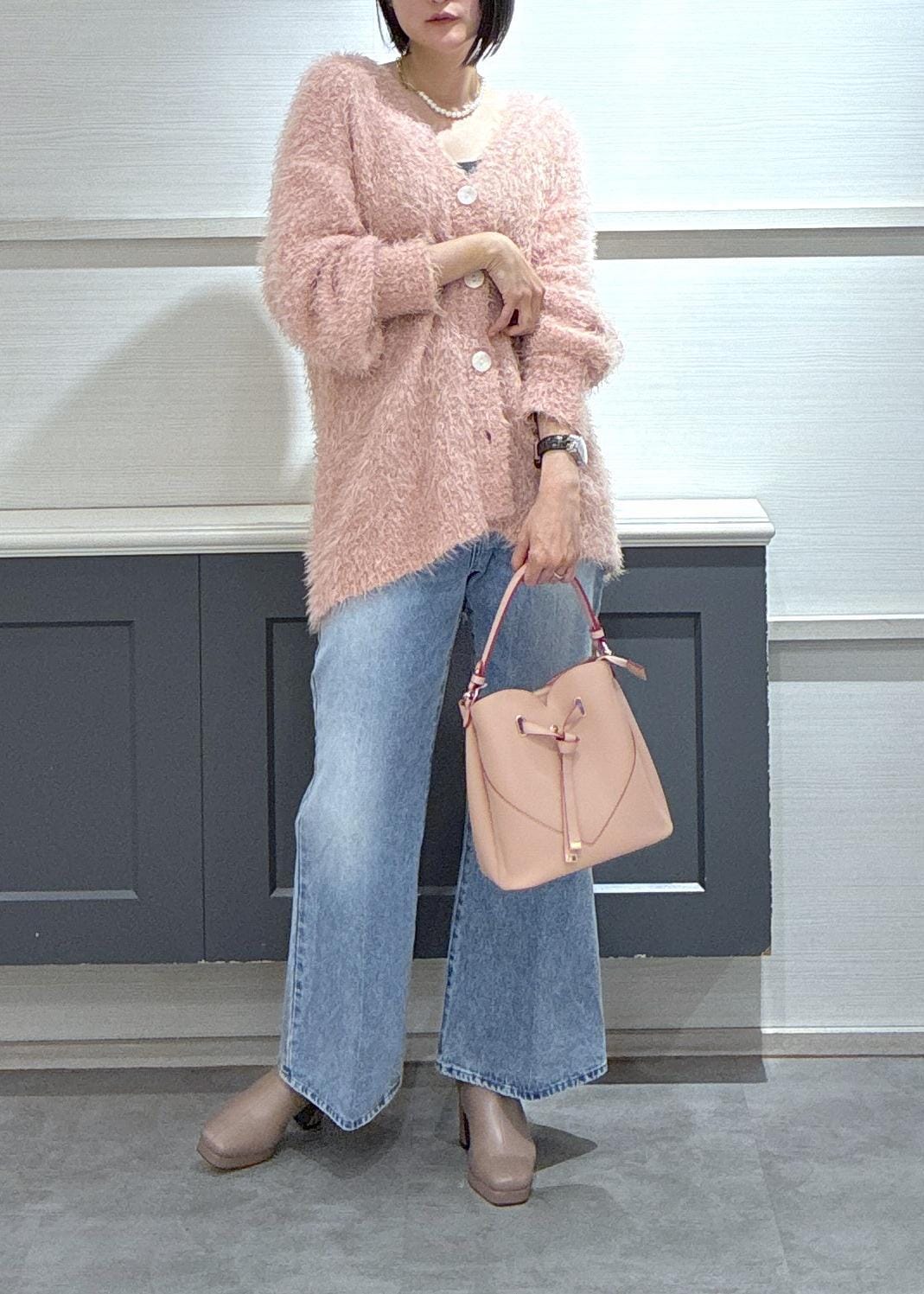2BUY10%OFFVISポップコーンヤーンラメフェザーニットカーディガン/WEB限定FSサイズピンク / F¥3,953レビュー身長168センチでお尻はすっぽり隠れる着丈です!