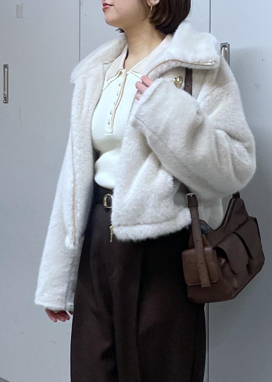 ファスナーを上まで閉めるとマフラーいらずな暖かさ。