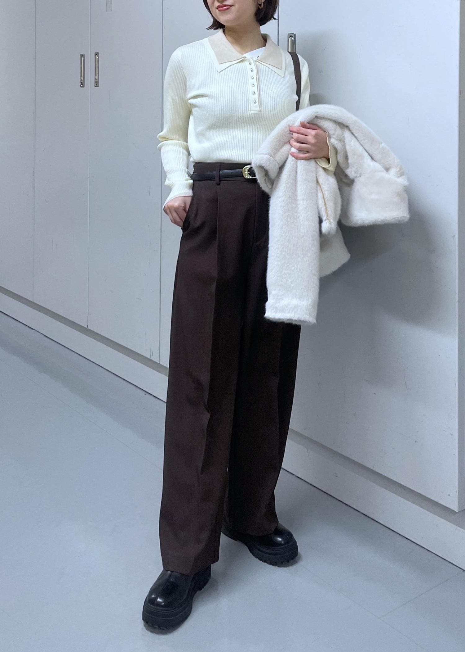 VISダブルカラーポロニットトップスオフホワイト / F¥5,929レビュー伸縮性あるニットでチクチク感なく着用できます。