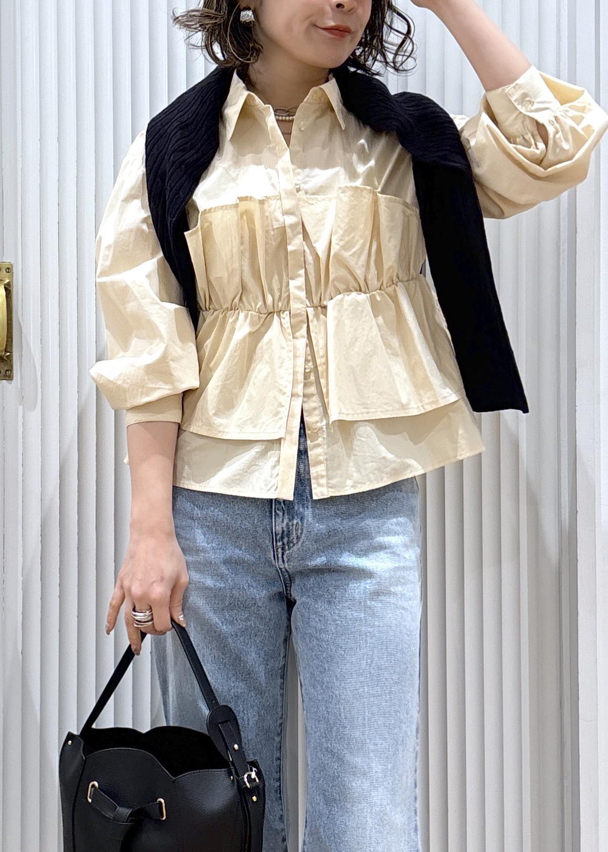 VISビスチェドッキングシャツ/イージーケアクリーム / F¥6,589レビュービスチェをレイヤードしたようなデザインが可愛いブラウス。薄手のサラッとした素材感。表面感があり、フロントデザインが映えるので1枚での着用はもちろん、ジャケットのインナーにも華やかさアップ間違い無し!