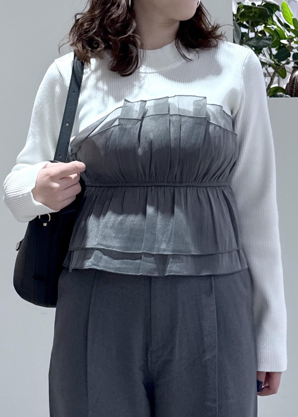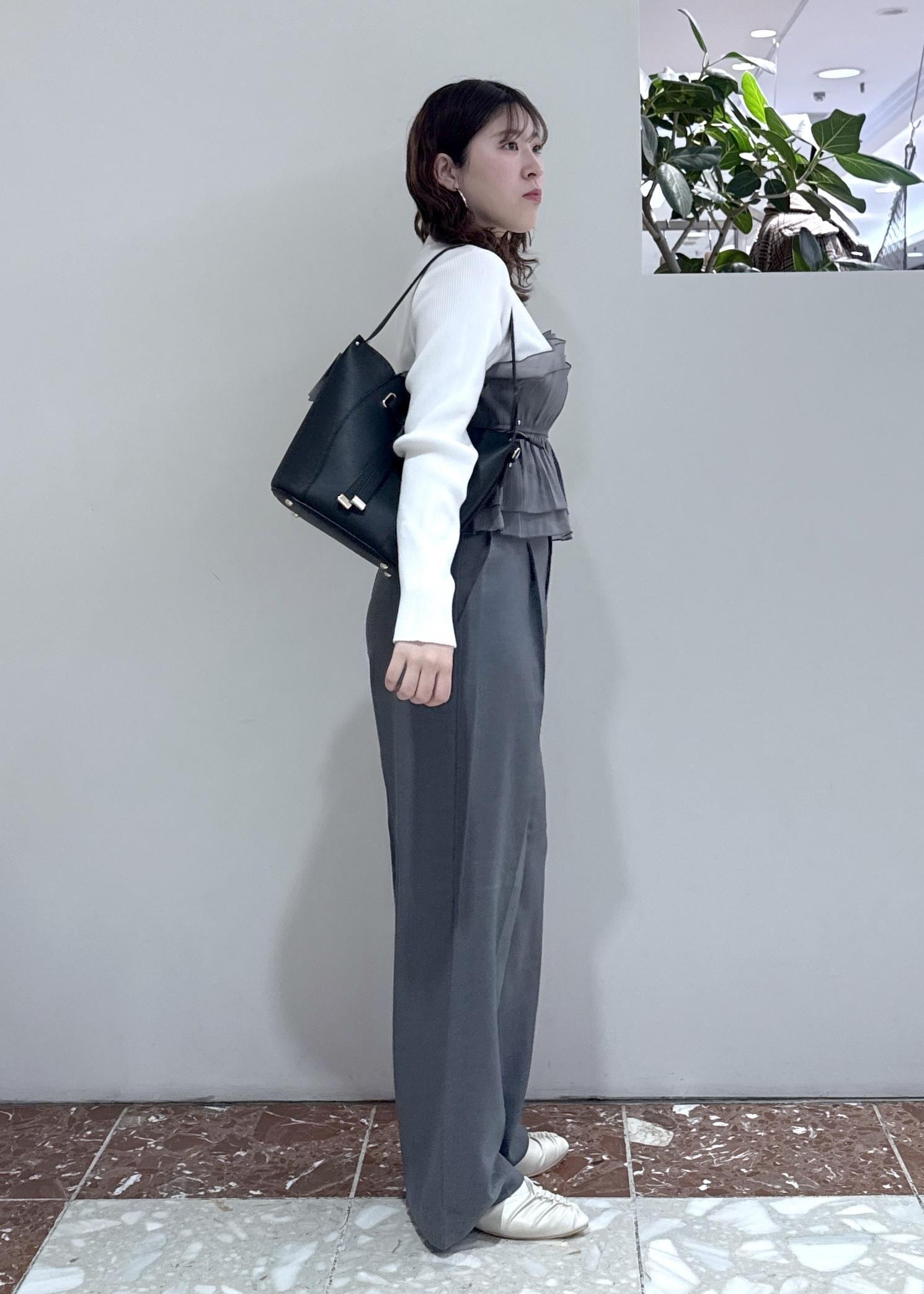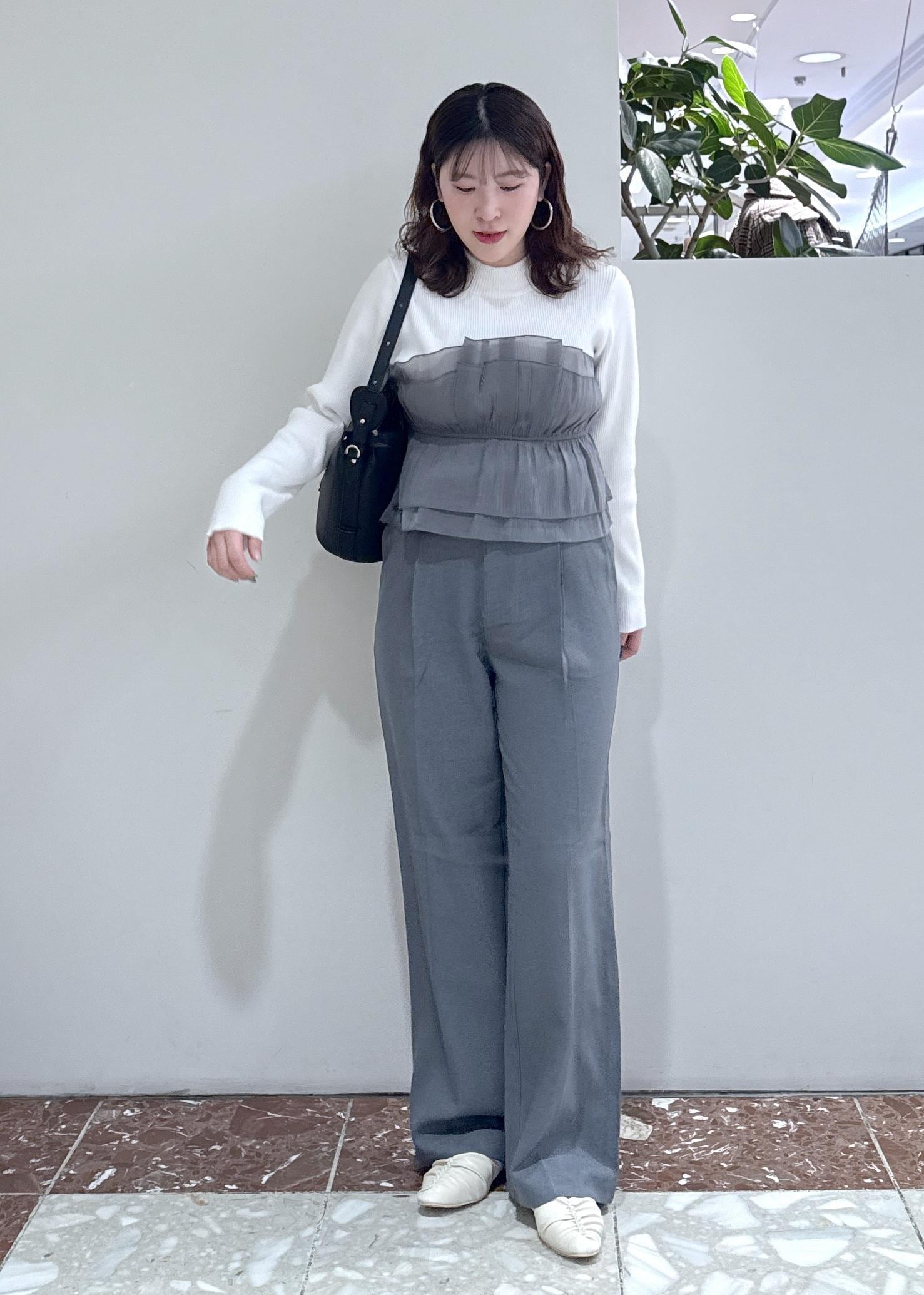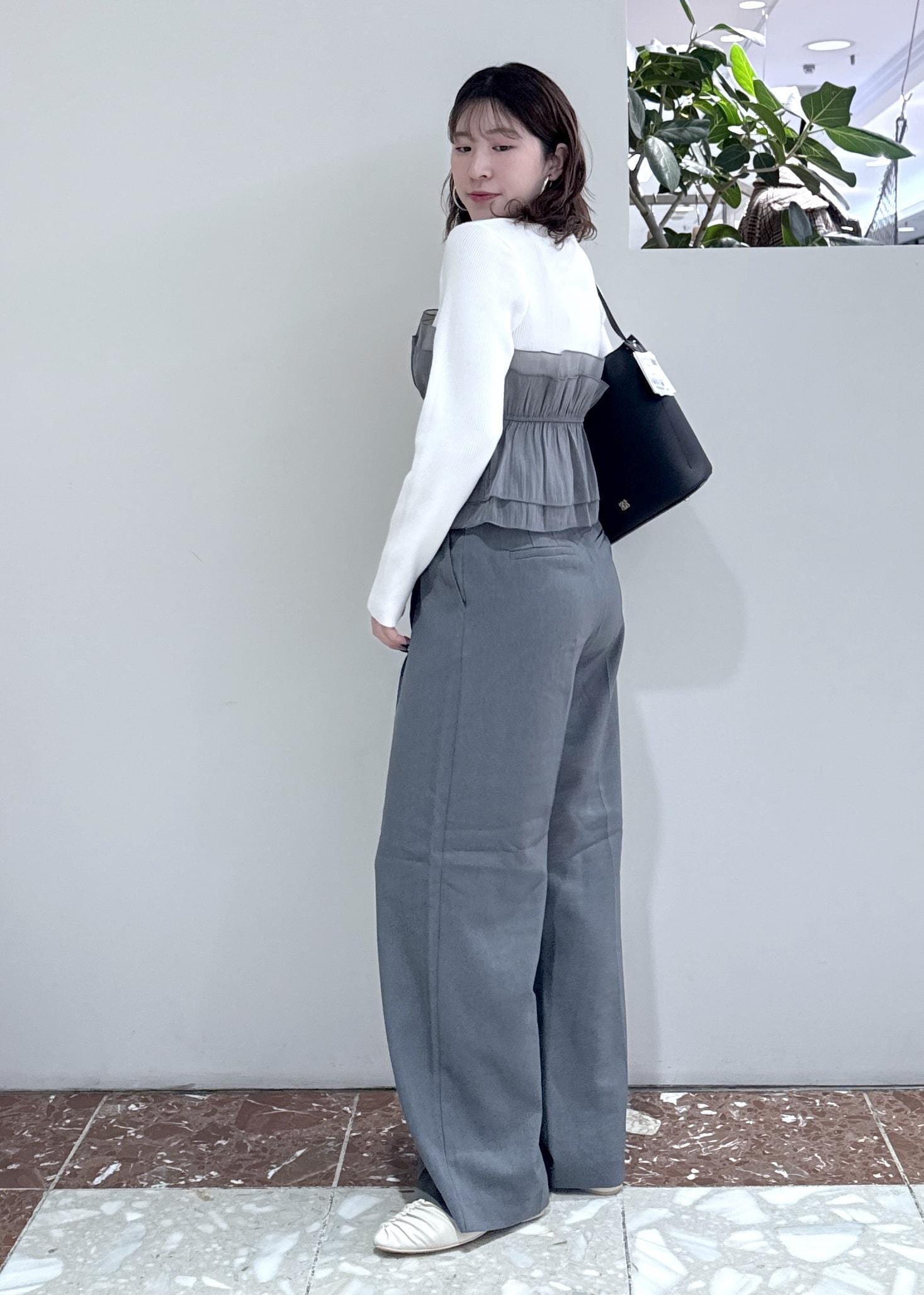 肉感を拾わない程よいフィット感と、1枚で着映えするトップスなのでベーシックコーデでも華やかに! -