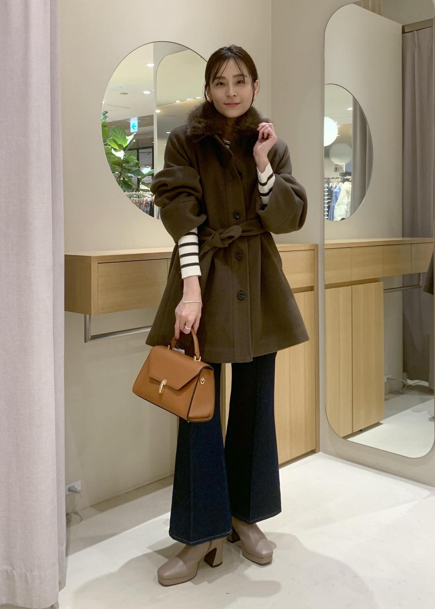 ベルトをすると緩やかなAラインになるので、シルエットが綺麗ですよ。