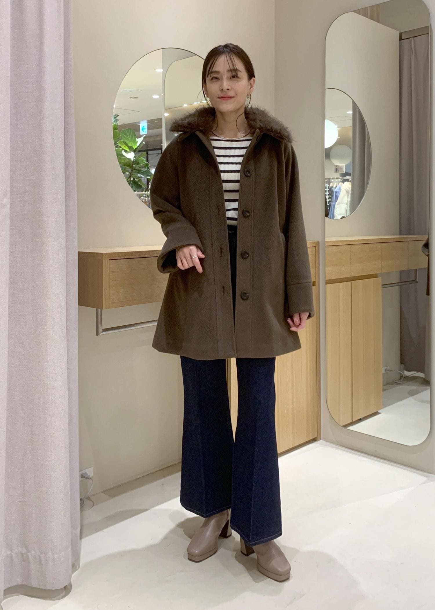 ファーは取り外しできますので、印象を変えられますよ。 -