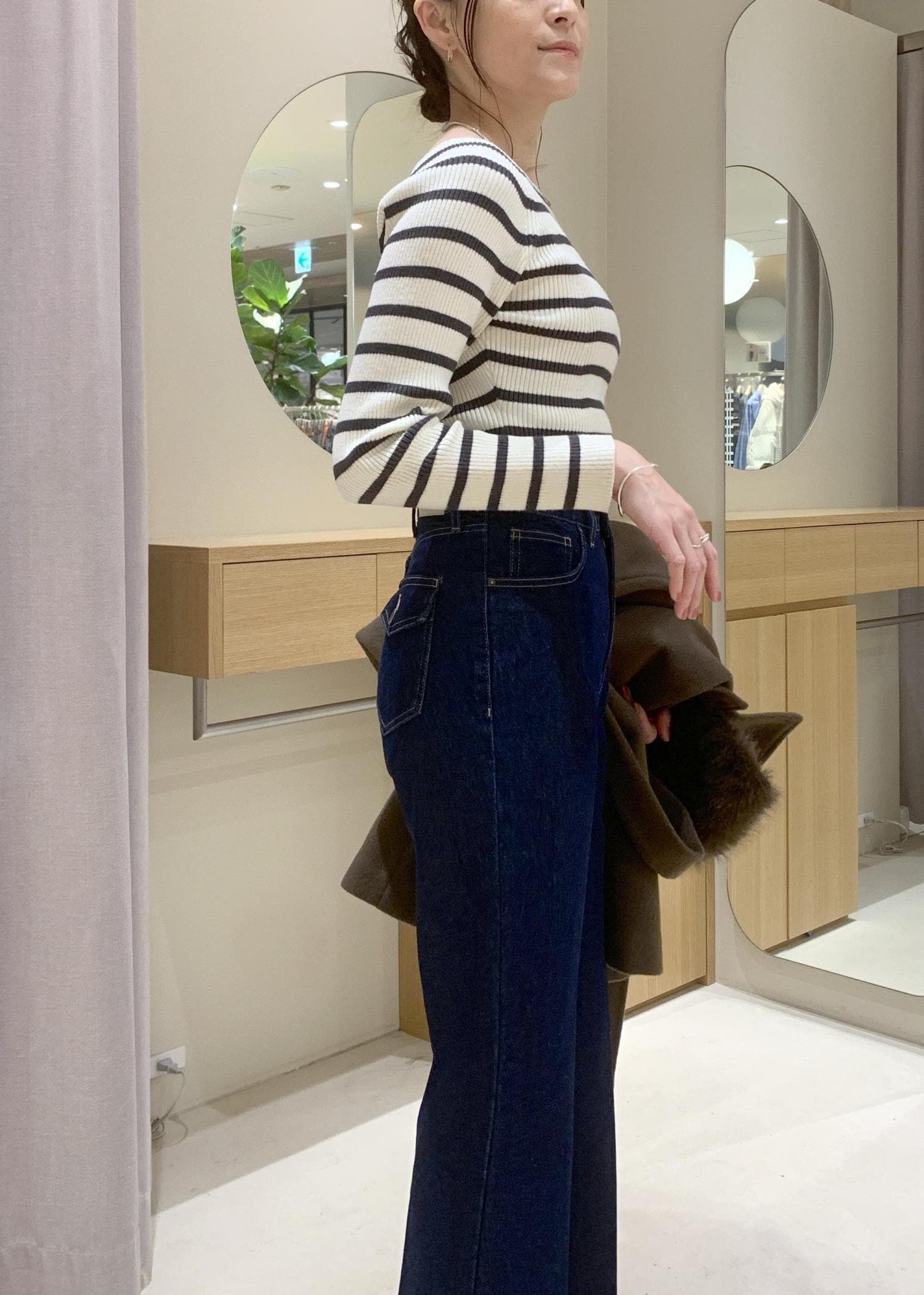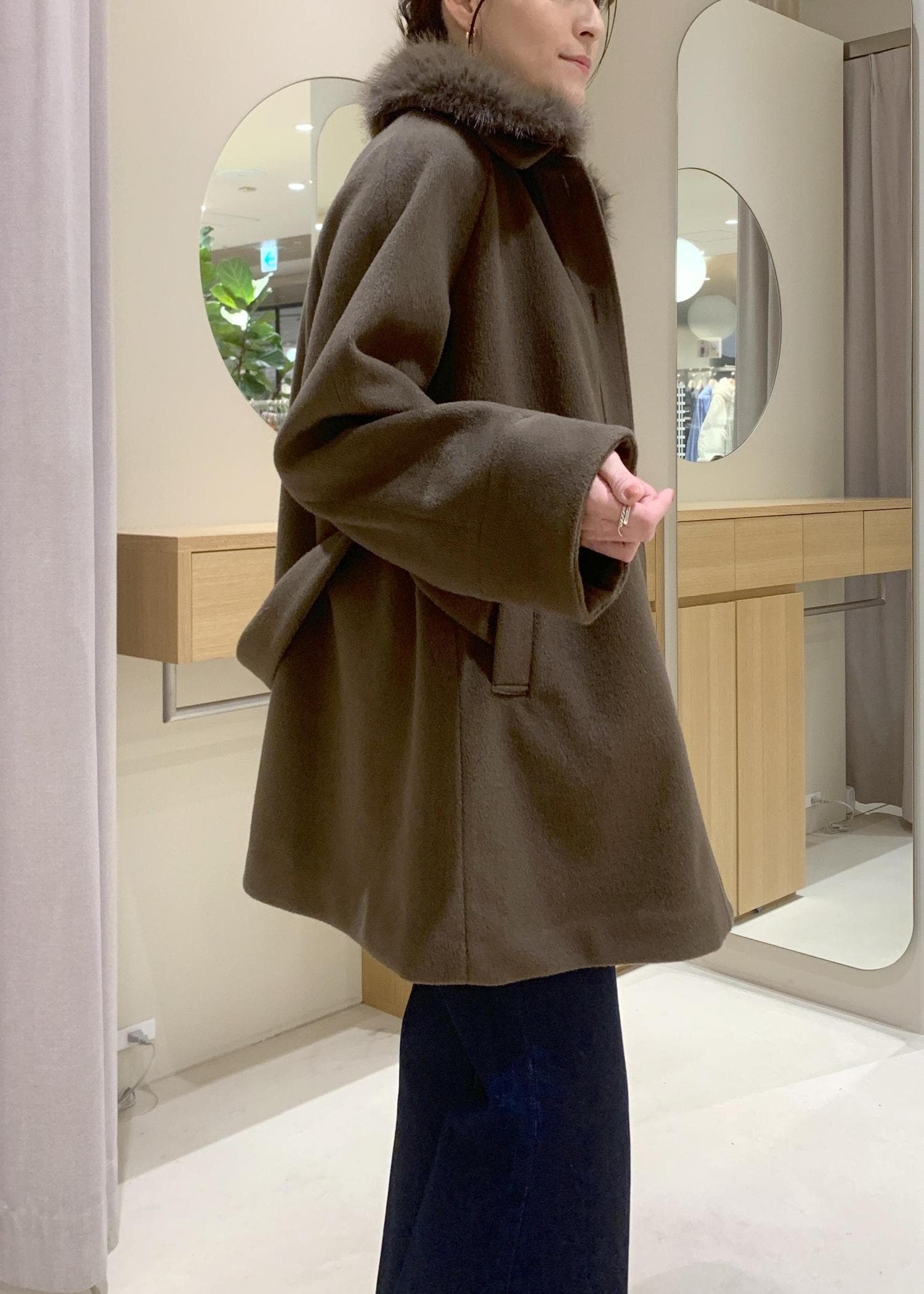 コート自体の重みも感じず、中に厚手なニットも着込みやすいサイズ感です。