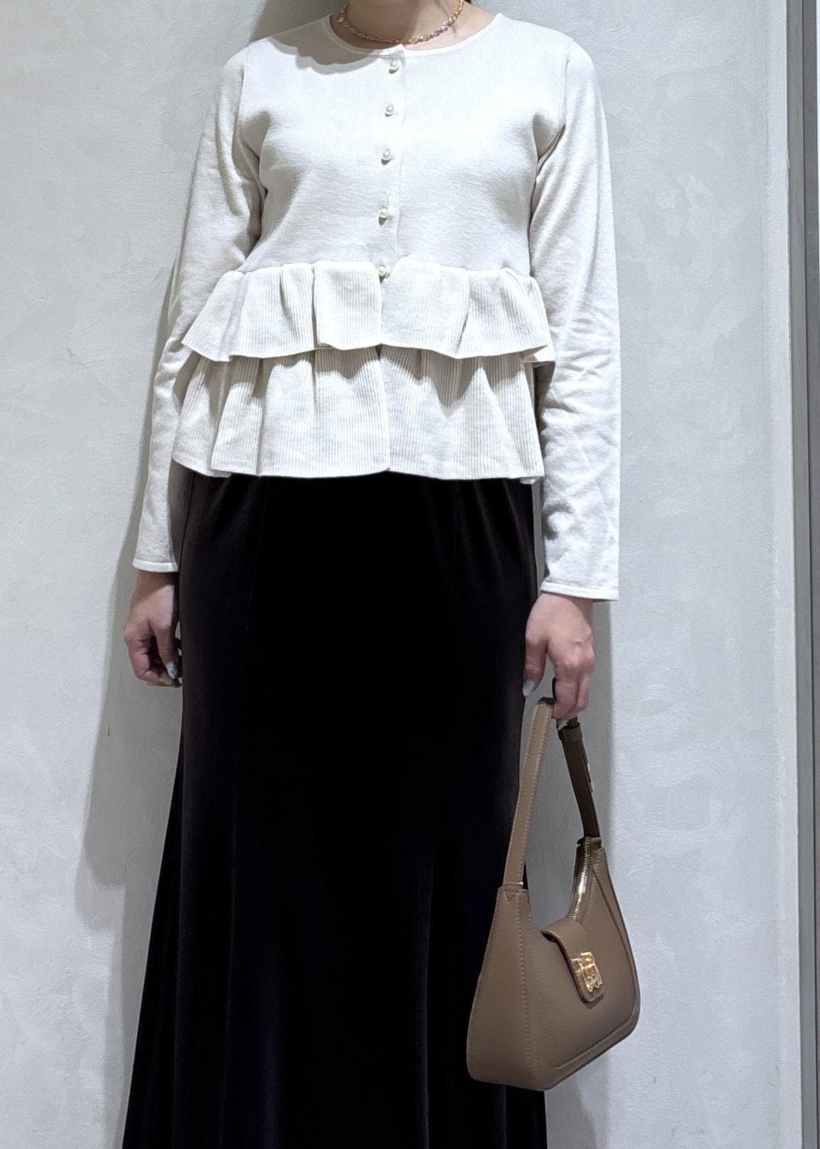 VISティアードペプラムニットカーディガンベージュ / F¥6,589