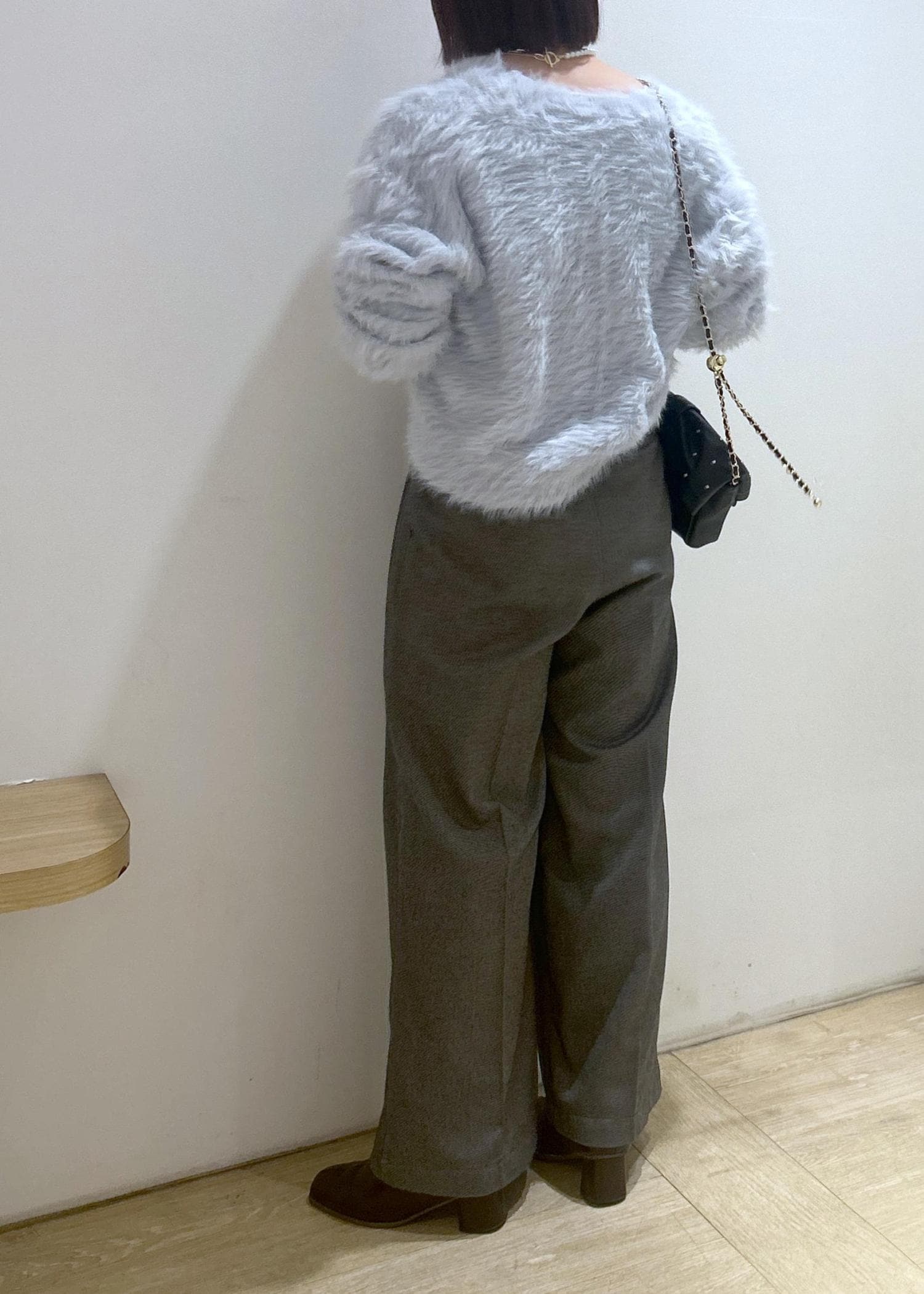 少し起毛したウールライクな素材で、柔らかすぎずシルエットが綺麗なパンツです。 -