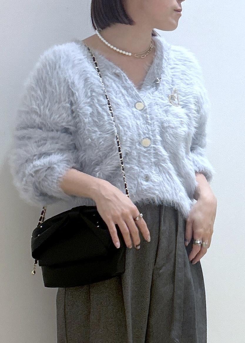 2BUY10%OFFVISラビットライクVネックカーディガン/イージーケア・WEB限定カラーサックス / F¥4,743レビューふわふわの手触りで暖かいです。分厚すぎないニットなので、アウターも羽織れます。丈は腰にかかるくらいで、袖丈は長めですが、リブで止まります。