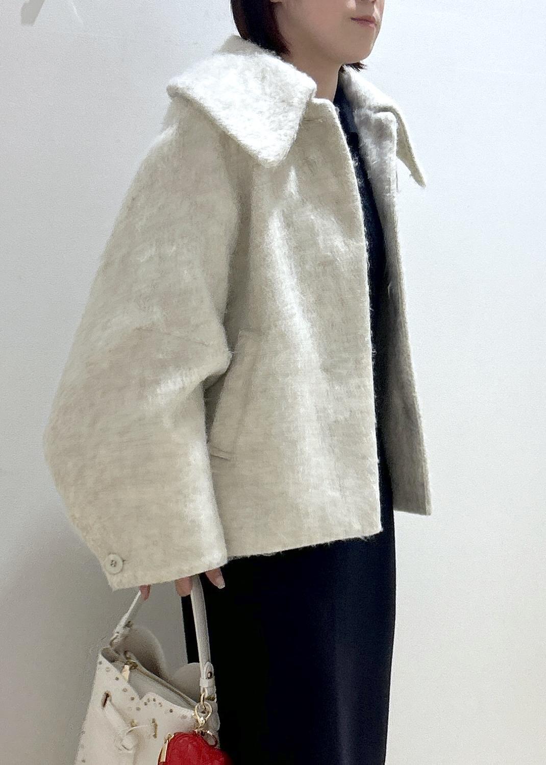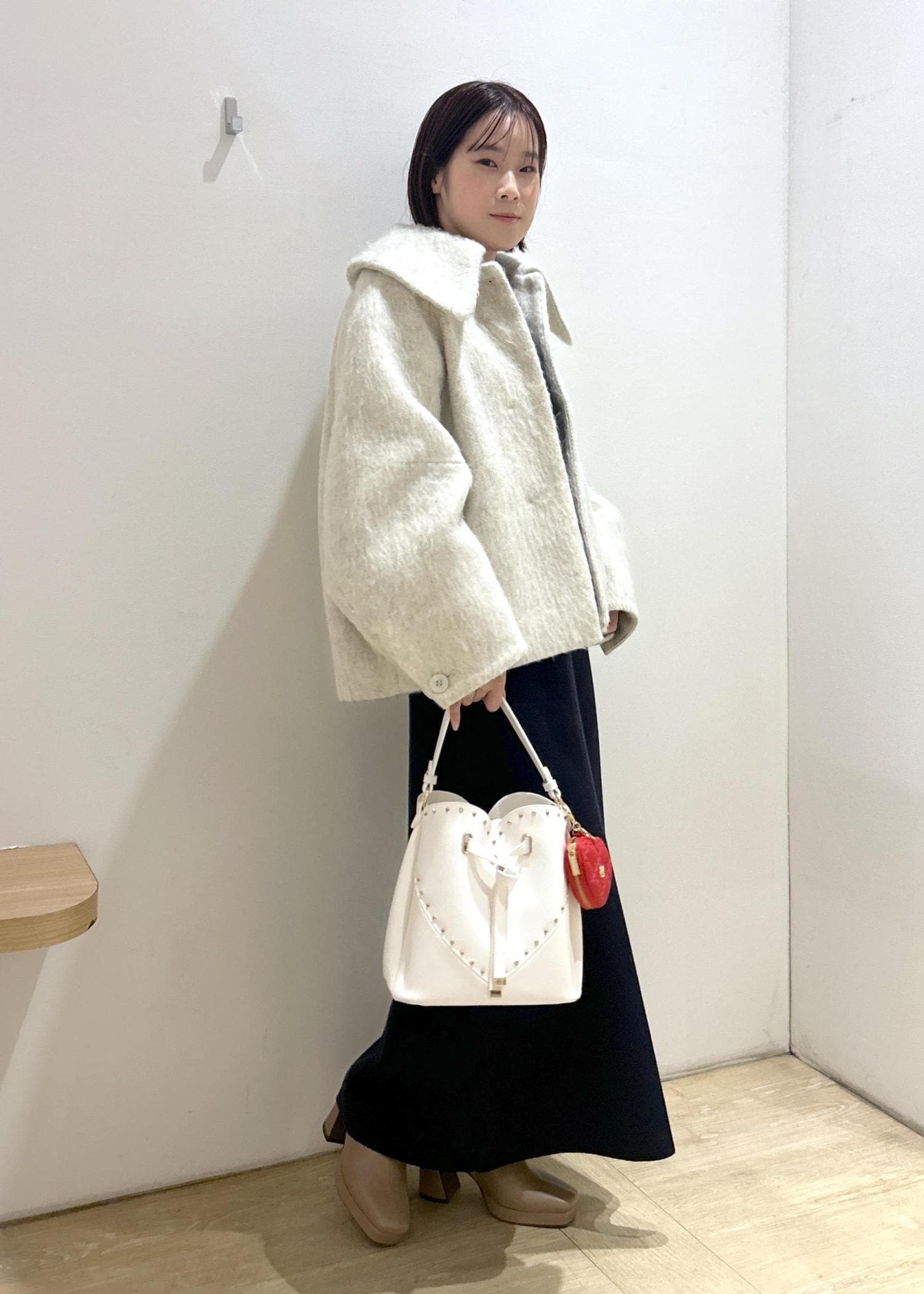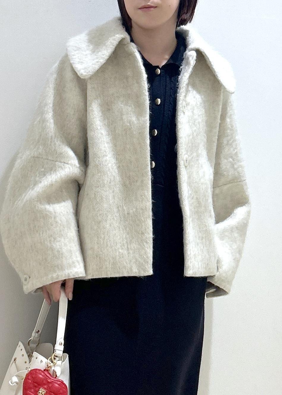 2BUY10%OFFVIS【アウター総選挙1位】ビッグカラーモモンガシャギーショートコートオフホワイト / S¥8,791レビューアウター総選挙1位のビッグカラーのショートコートです!大きめの襟で小顔効果があり、かなりゆったりシルエットなので、中に厚手のニットを着込めるサイズ感です。