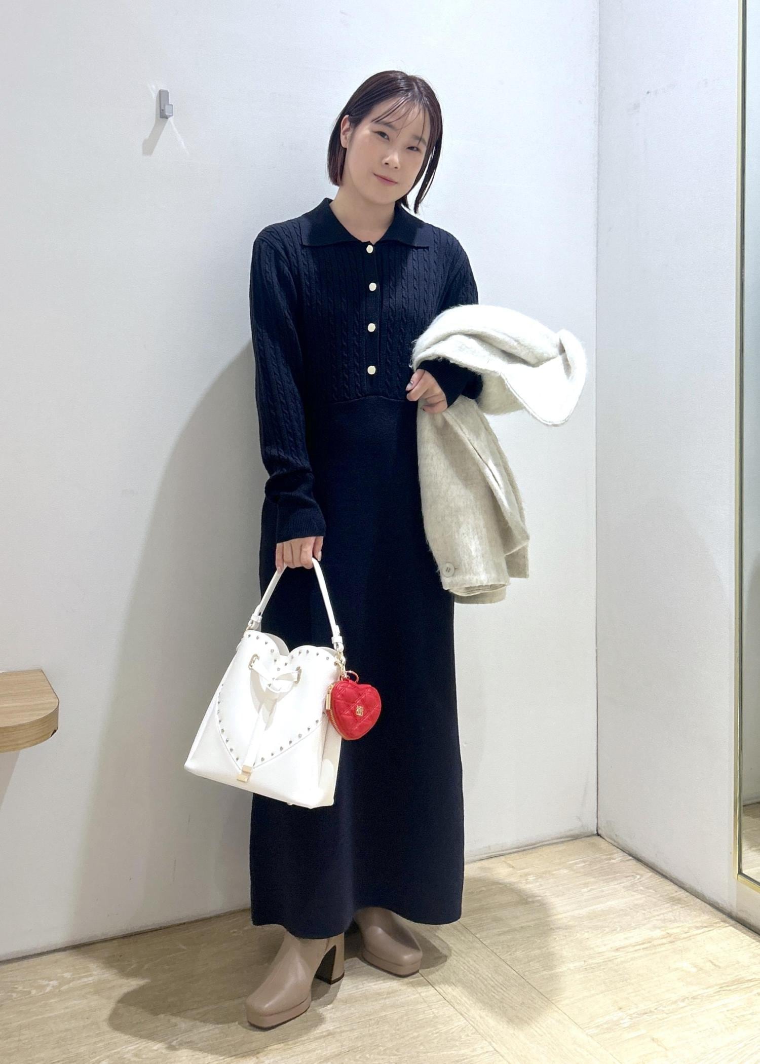 2BUY10%OFFVISポロケーブルモチモチニットワンピースネイビー / F¥7,119レビューポロ襟のニットワンピースです。