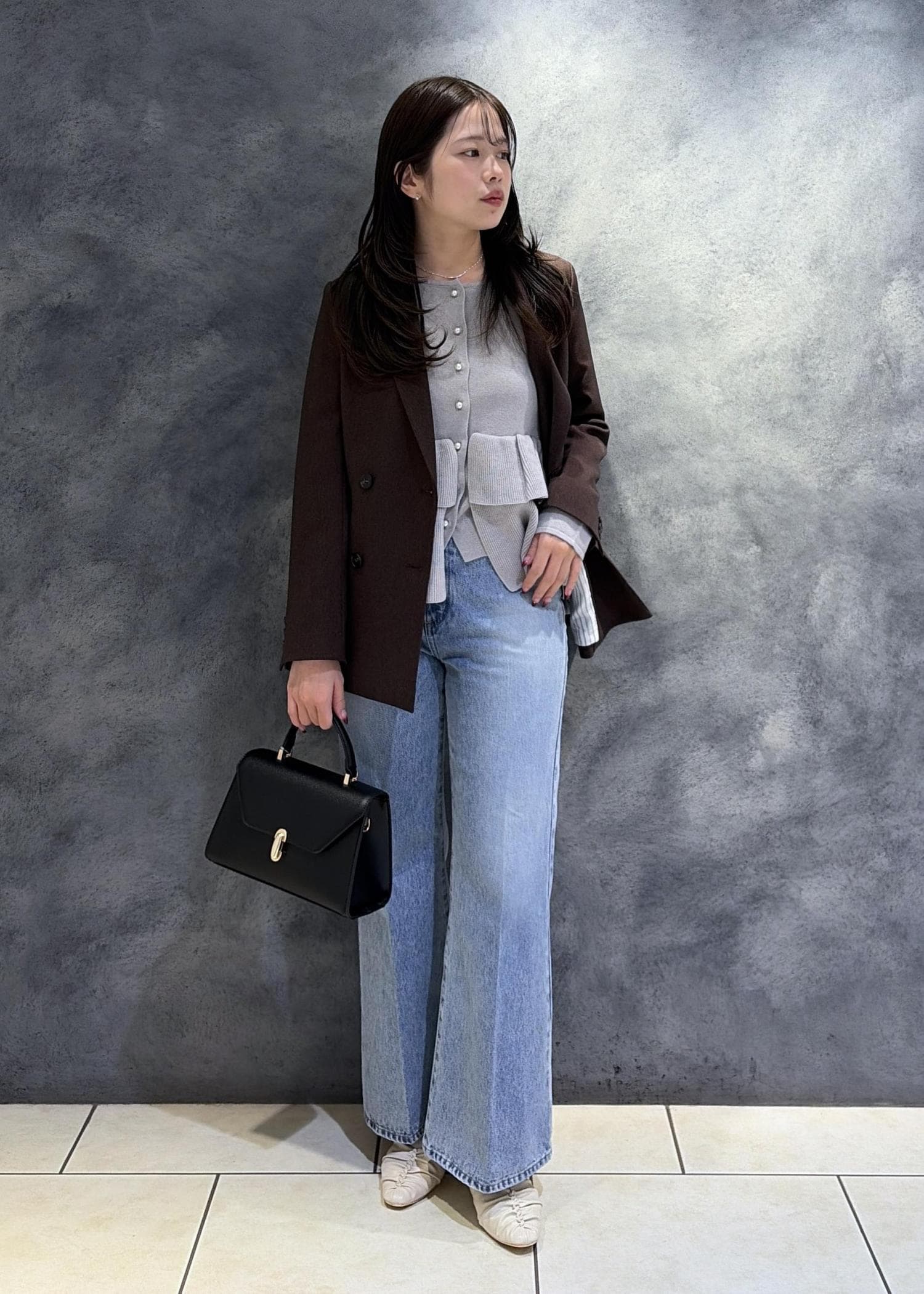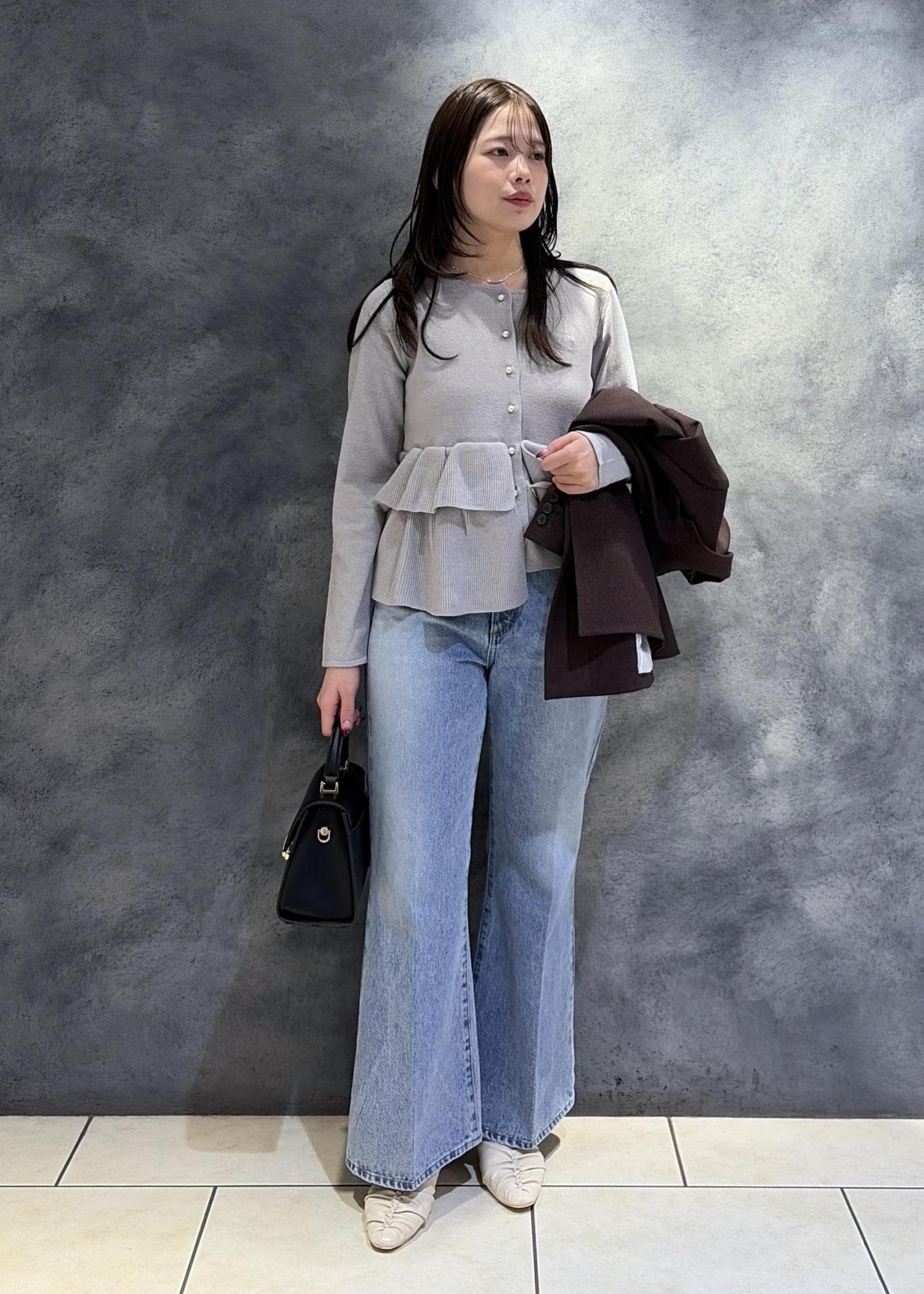 VISティアードペプラムニットカーディガンライトグレー / F¥6,589レビュー身長160cmで腰骨が隠れる丈感。