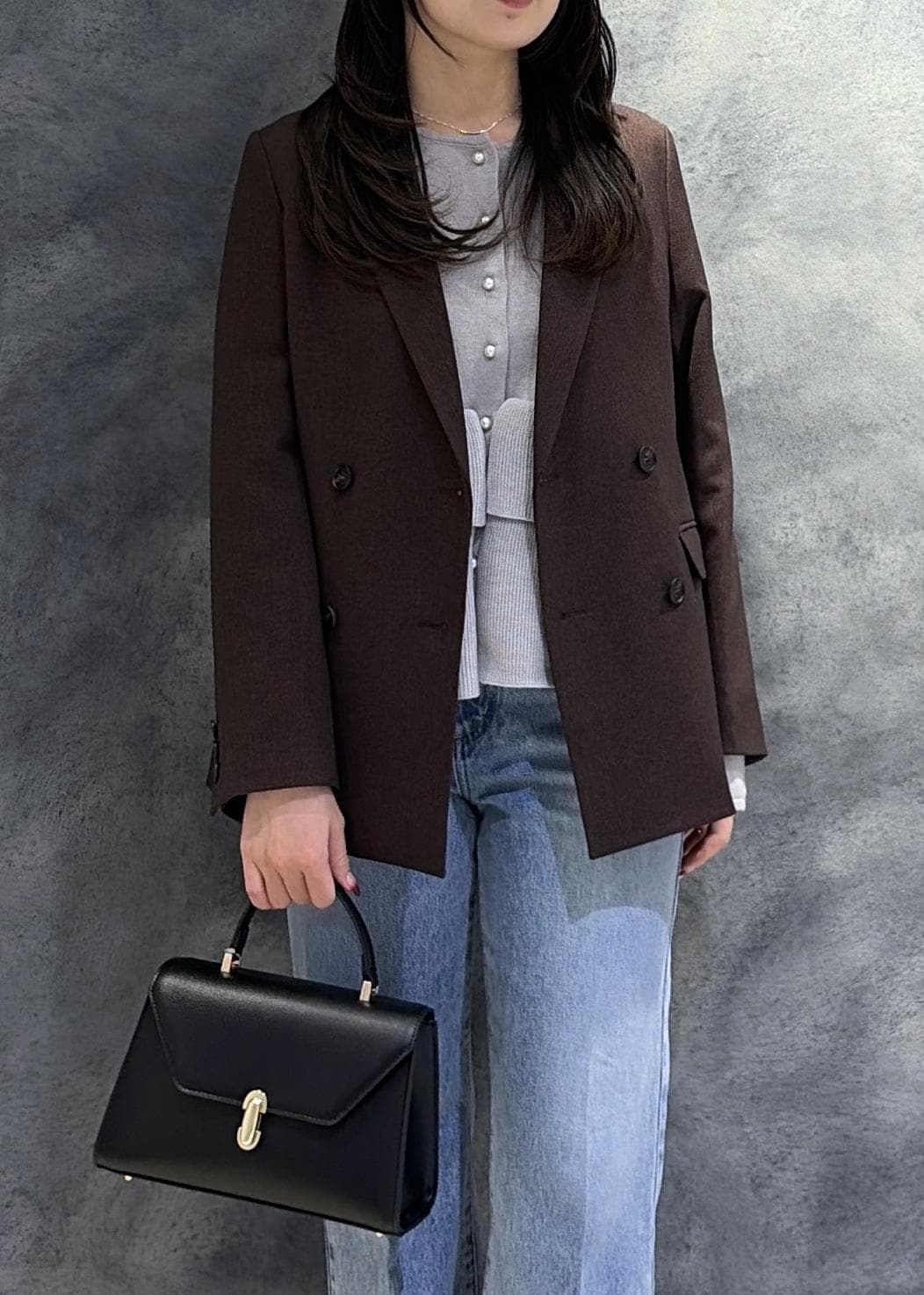 VIS【期間限定価格】美easyウーリッシュダブルブレストテーラードジャケット【セットアップ対応/洗える】ダークブラウン / M¥8,009レビュー身長160cmでMサイズ着用。