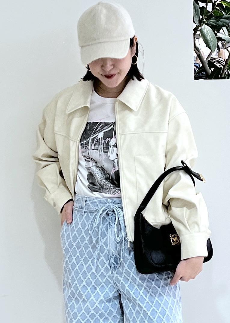 VISアウトポケット合皮ブルゾンクリーム / F¥10,989レビューフェイクレザーで生地が柔らかくて動きやすい素材。