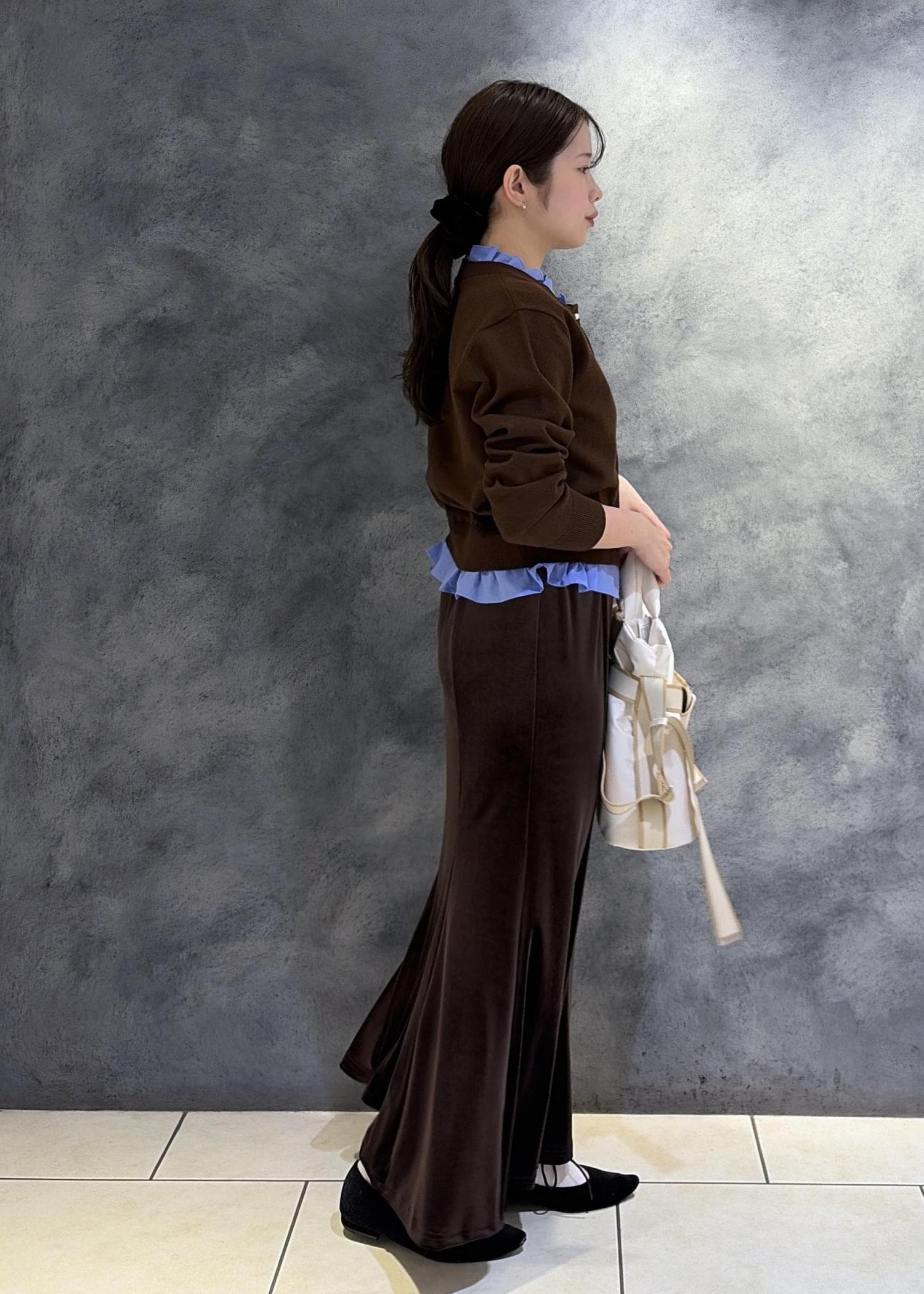 VIS【美得】フリル襟ドッキングニットカーディガントップスダークブラウン / F¥5,929レビュー一枚で着映えするレイヤードアイテム。