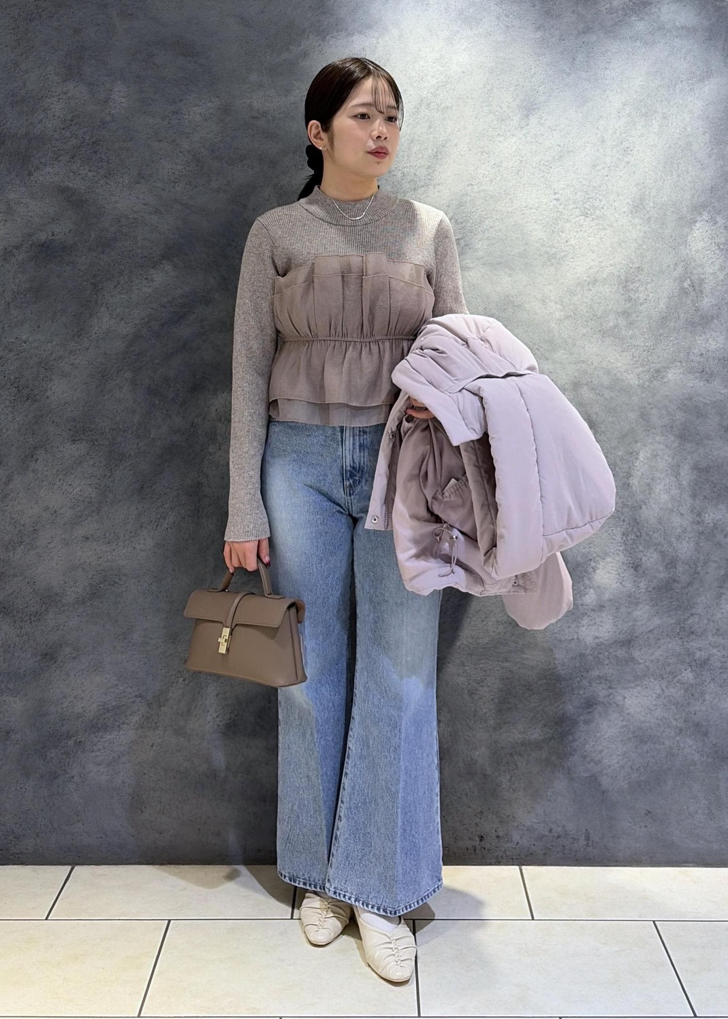 少しゆったりとしたシルエットなので体のラインを拾いすぎず細見えします! -