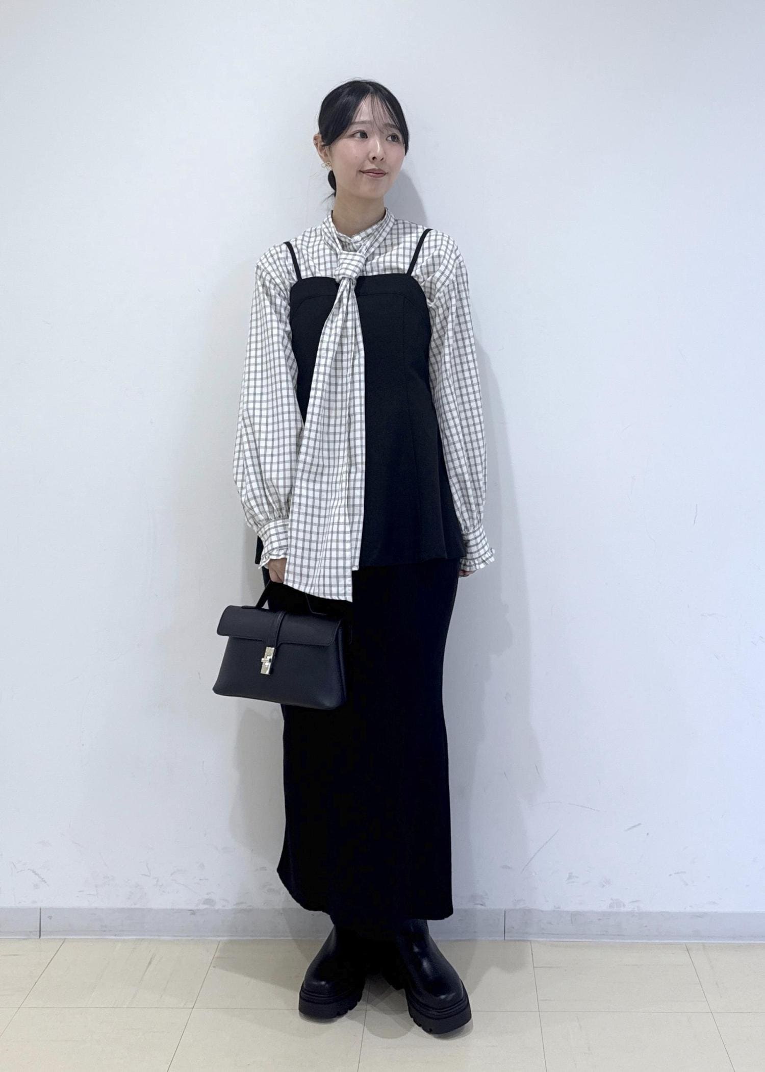 ベルト紐が着いているので、チョーカーにするとバランスがとりやすく、シンプルすぎないコーデになりました♪