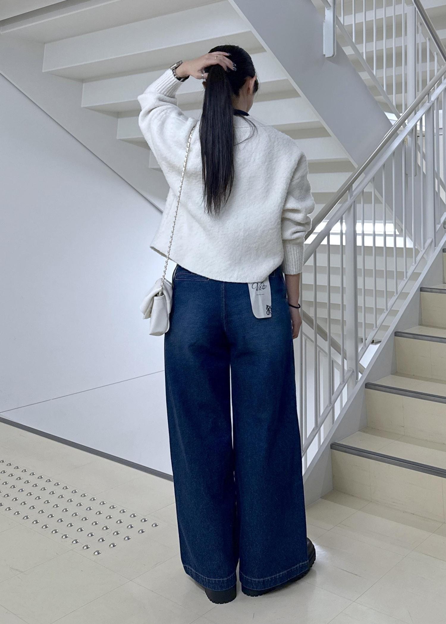 VISワイドシルエットベルト付きデニムブルー / M¥8,899レビュー158cm骨格ウェーブでMサイズを着用しています。ウェーブで骨盤が張っているので、少しラインを拾いました。窮屈感は特にないですが、気になる方は大きめのトップスと合わせるのがオススメです。丈感は、5センチ厚底ブーツと合わせて、床につかないくらいなので、ペタンコ靴だとものによっては床に着く丈感です。