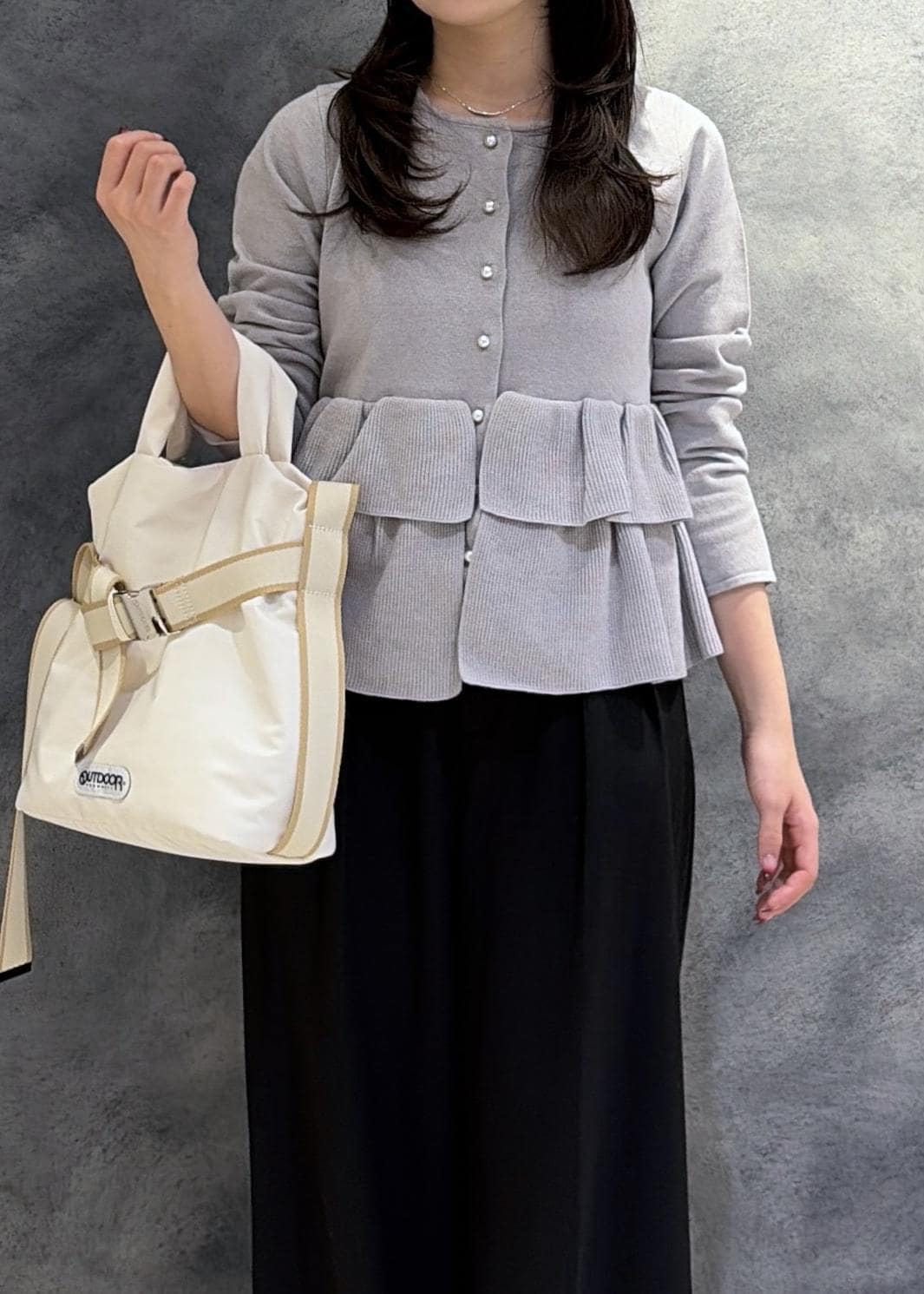 VISティアードペプラムニットカーディガンライトグレー / F¥6,589レビュー身長160cmで腰骨が隠れる丈感。
