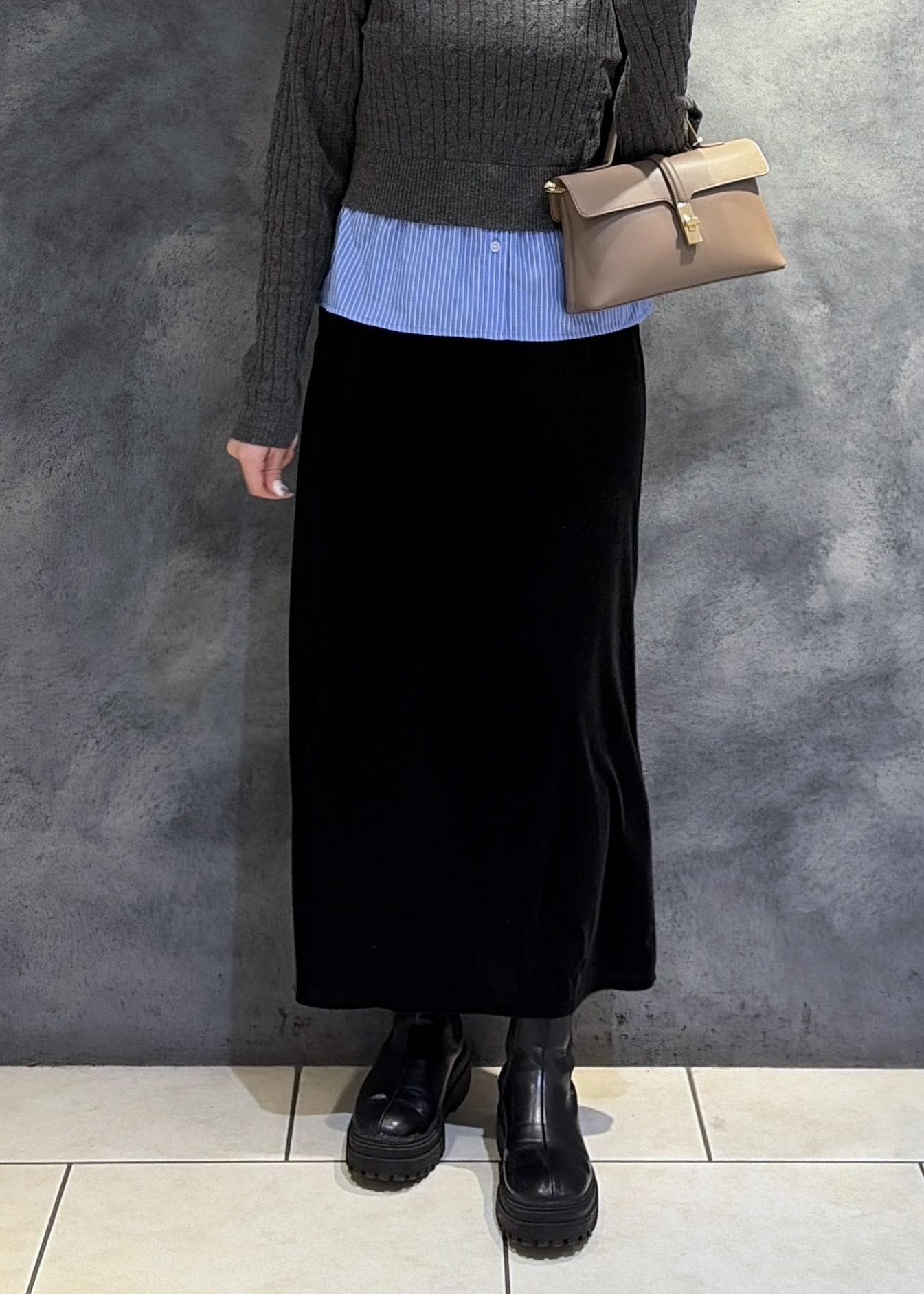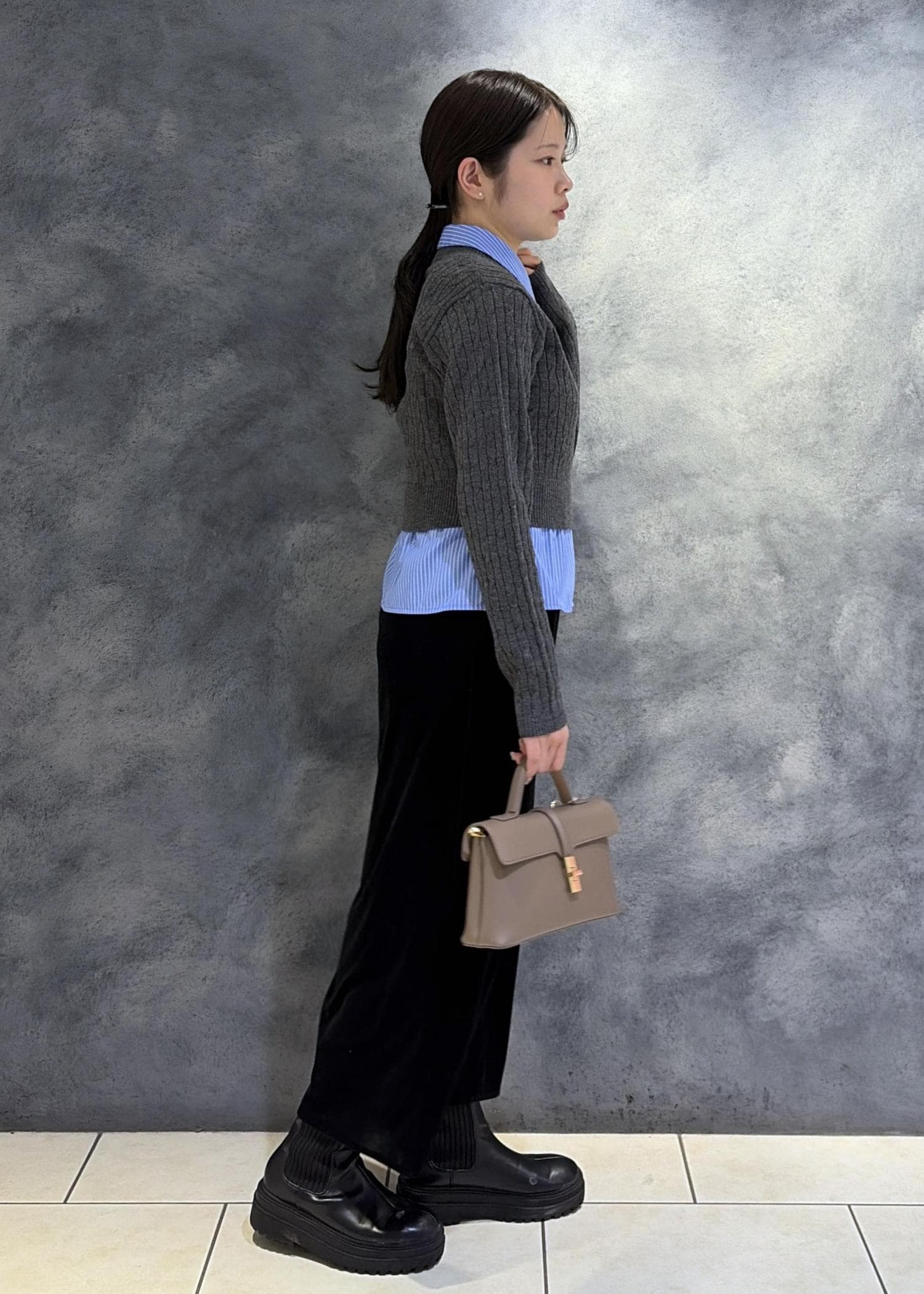 ニット部分は腰骨に当たるぐらいでコンパクトなシルエットです。伸縮性があり柔らかくきやすいです。