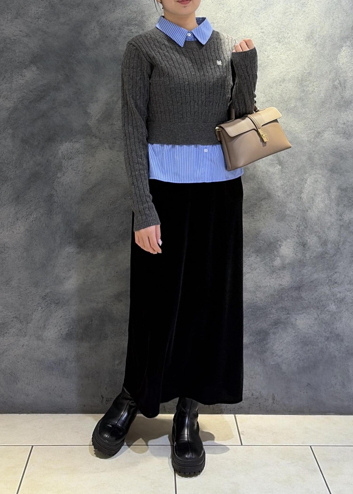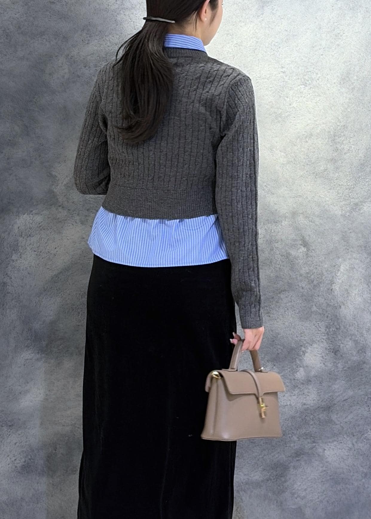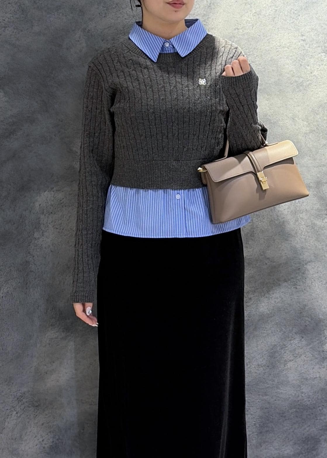 2BUY10%OFFVIS【美得】ハイゲージケーブシャツドッキングプルオーバーチャコール / F¥4,940レビュー身長160cmで腰骨が隠れる丈感。