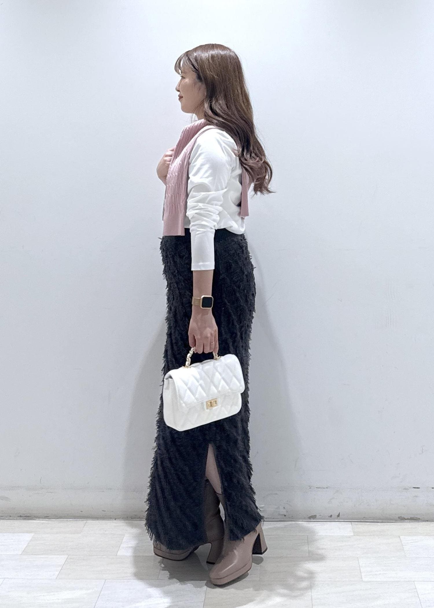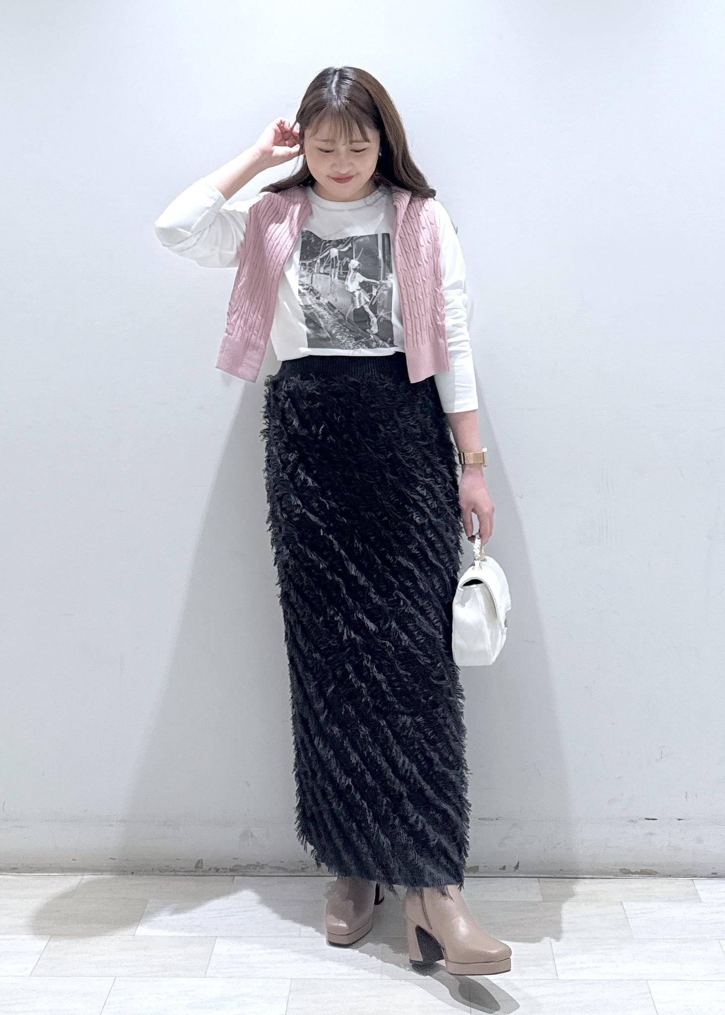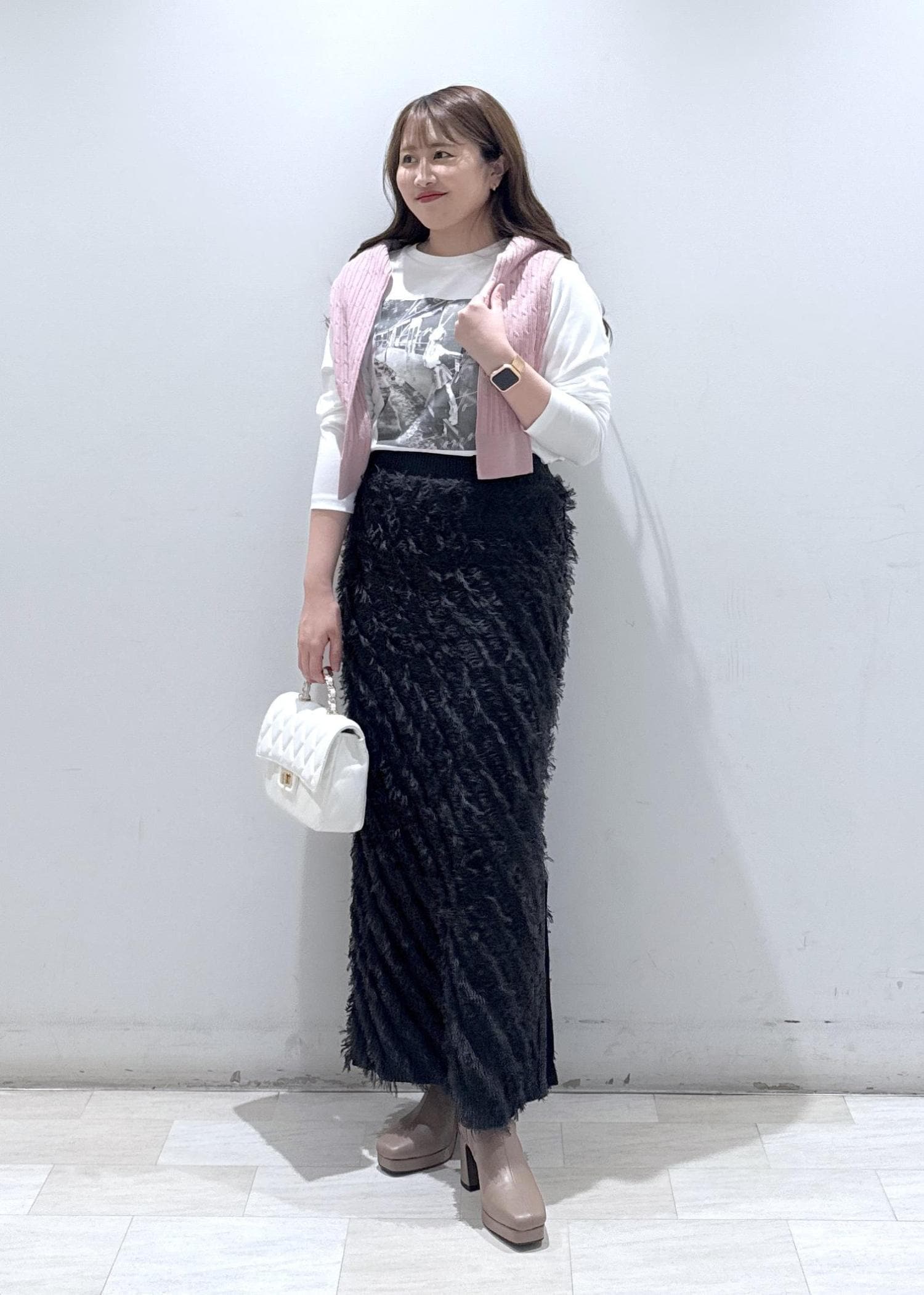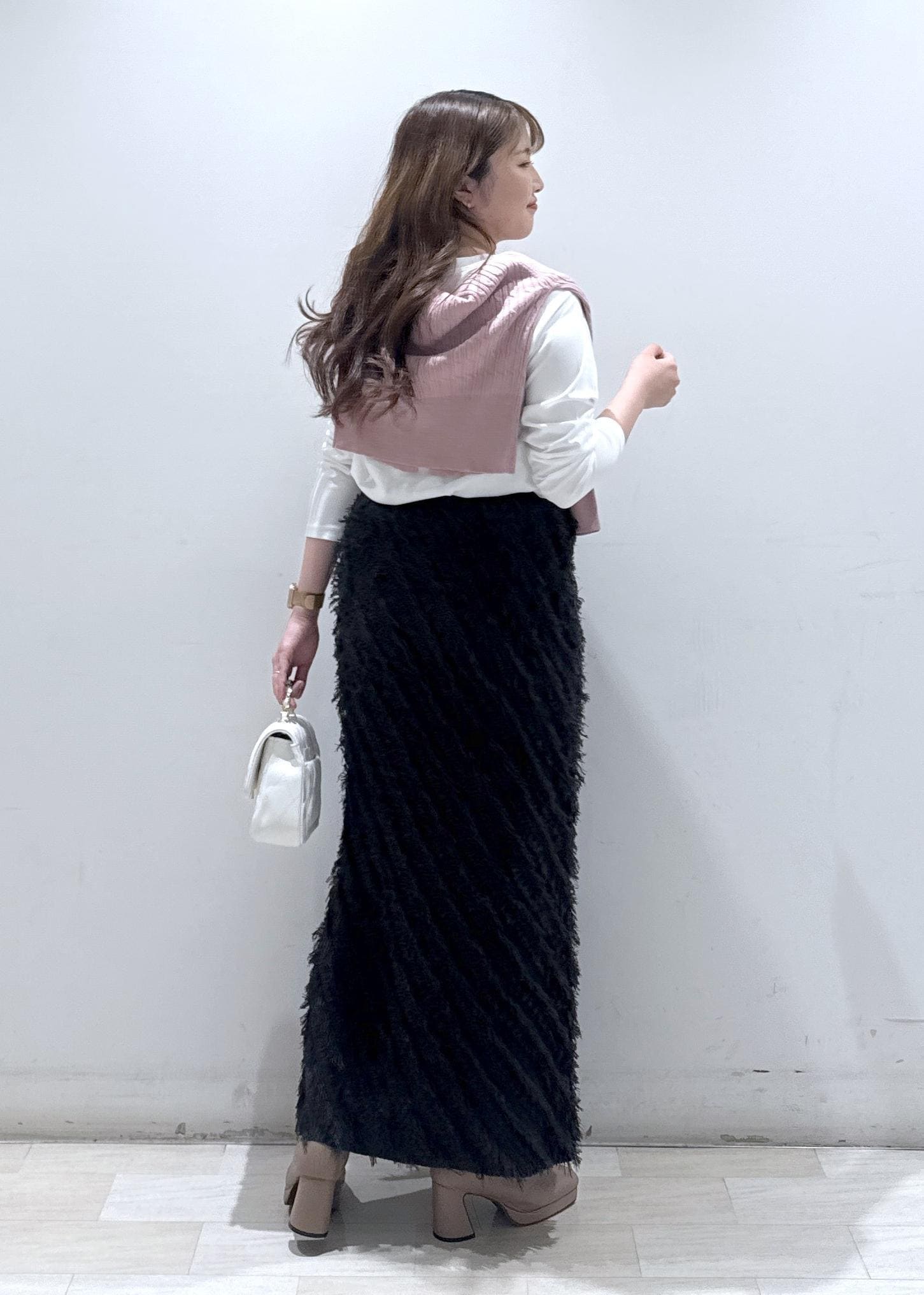 VISフリンジニットナロースカートチャコール / F¥4,612レビューフリンジの効いたIラインスカート♪身長157cm/Fサイズ着用。ウエスト全体がゴムが効いているので、伸び感があって履きやすいです!スリットも入っていて歩きやすく、キナリの色でも裏地付きだから透け感を気にせず履けるのもgood◎身体にピッタリし過ぎず、ゆったりとしているので綺麗めでもカジュアルでも履けそうです。