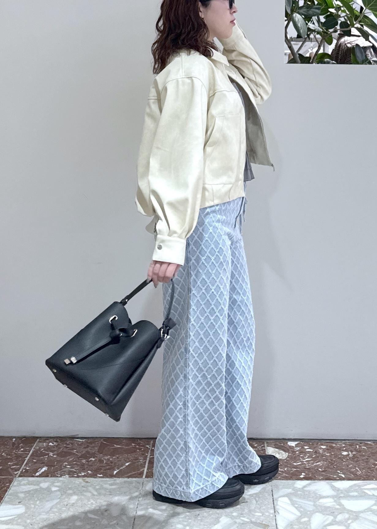 ワイドのシルエットが太すぎずスタイルをよく見せてくれるシルエットなので1枚で着痩せ!