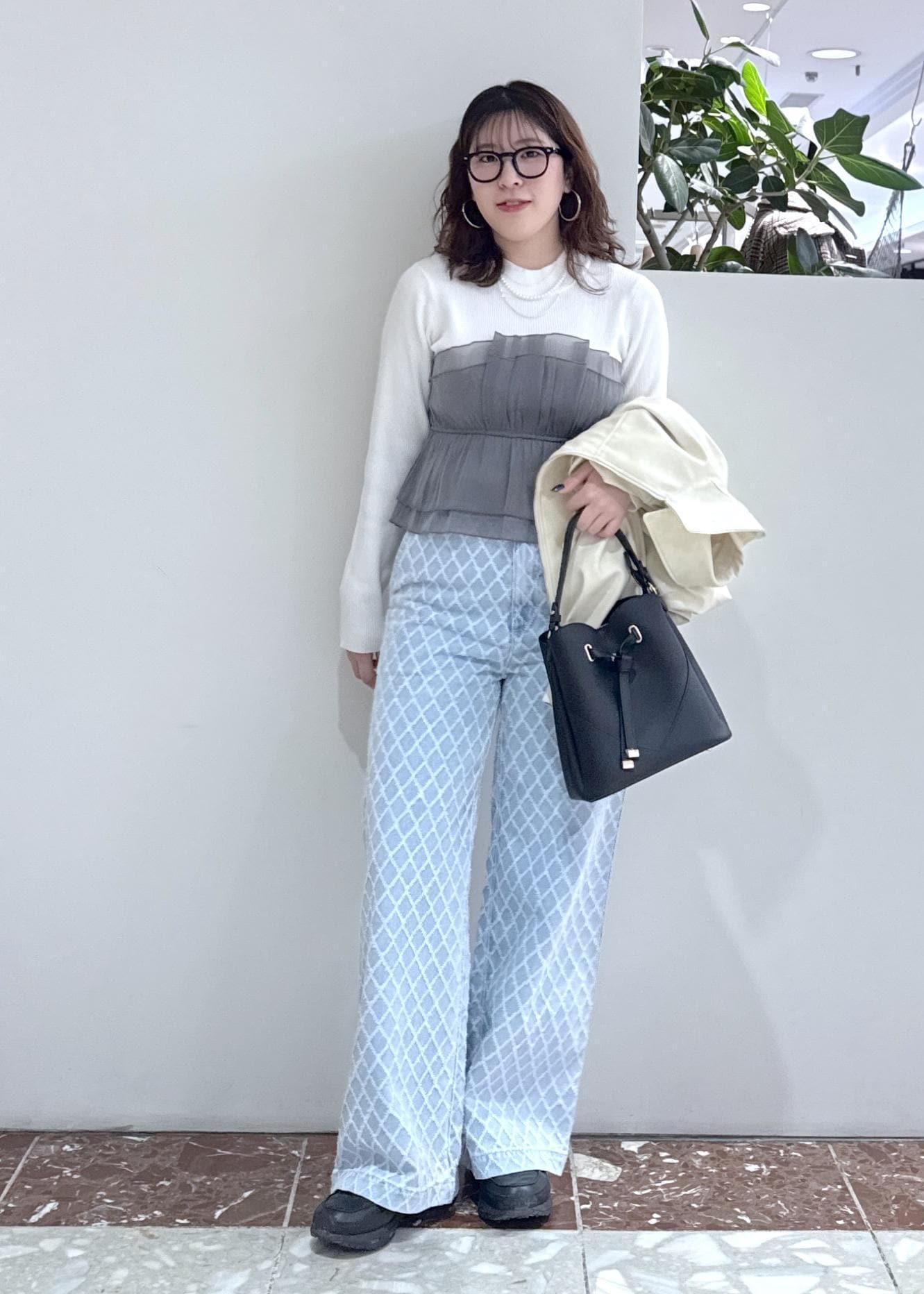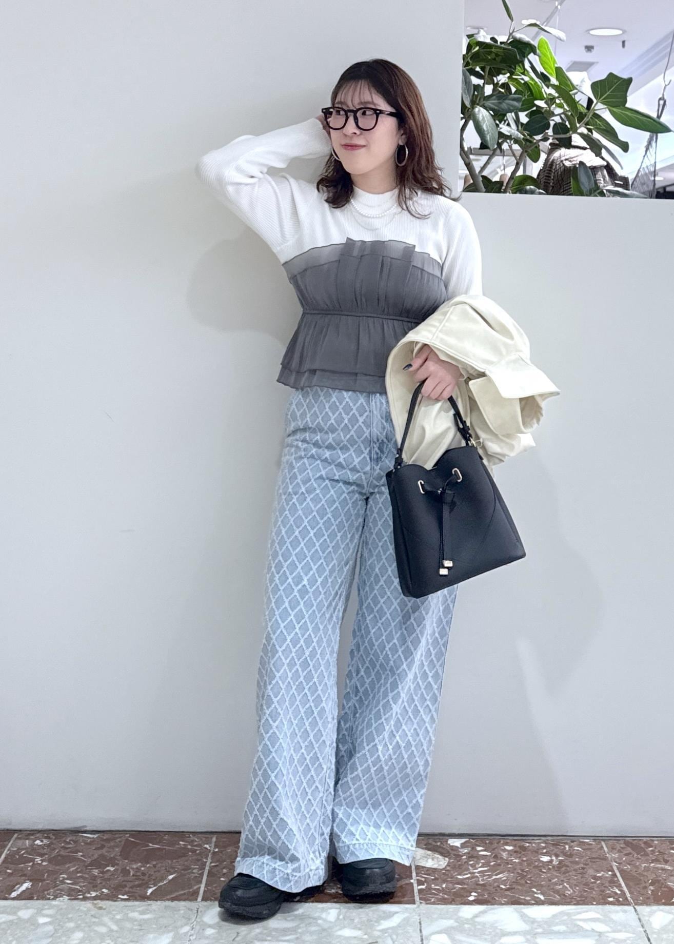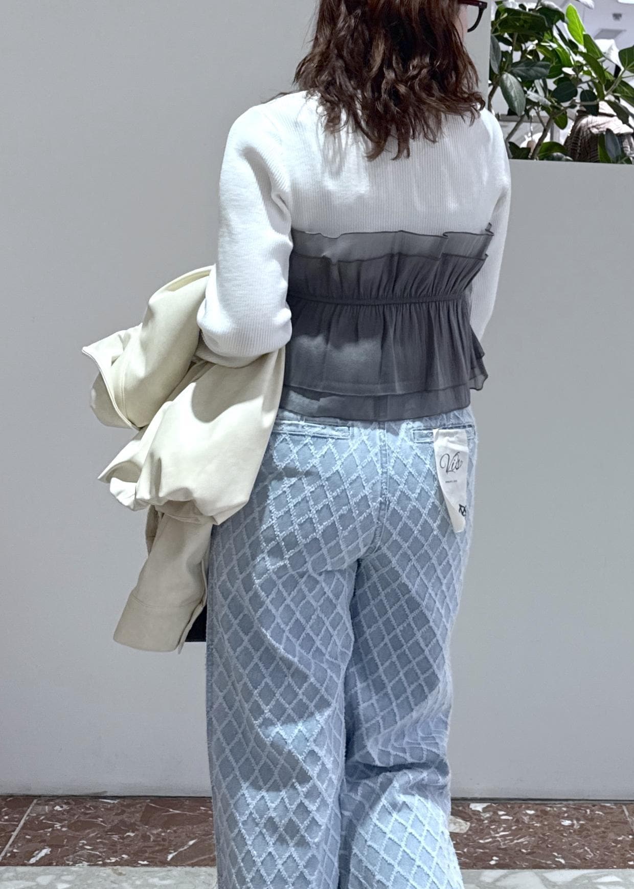 肉感を拾わない程よいフィット感と、1枚で着映えするトップスなのでベーシックコーデでも華やかに! -
