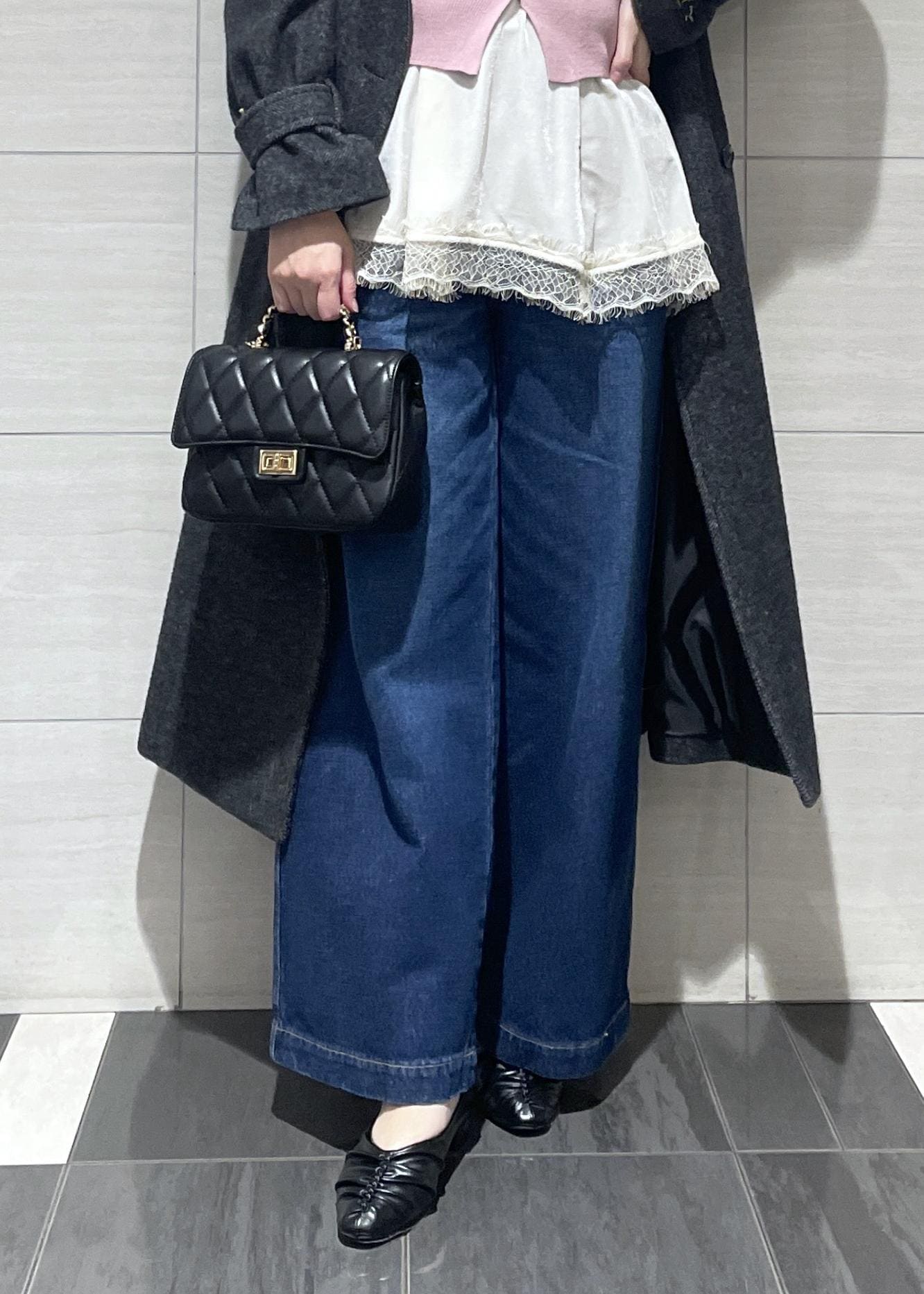 VISワイドシルエットベルト付きデニムブルー / M¥8,899レビュー163cm Mサイズ着用でフラットシューズを履いて床につかない丈感です。高身長でもしっかり長さがあるのが嬉しいです◎
