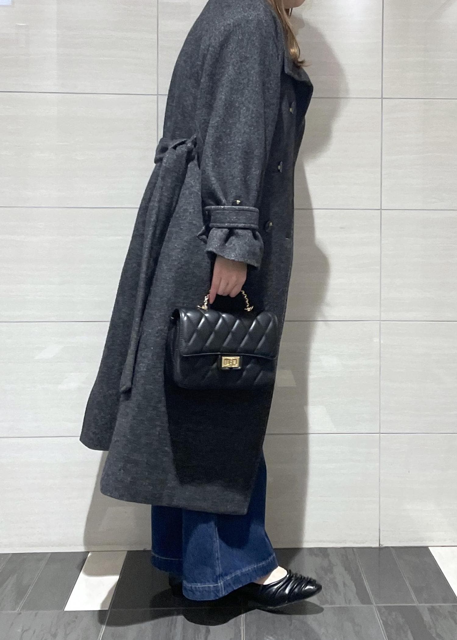 ロングコートですが柔らかい素材で動きやすく、ウールが入っているのでとても軽く暖かいです◎ -