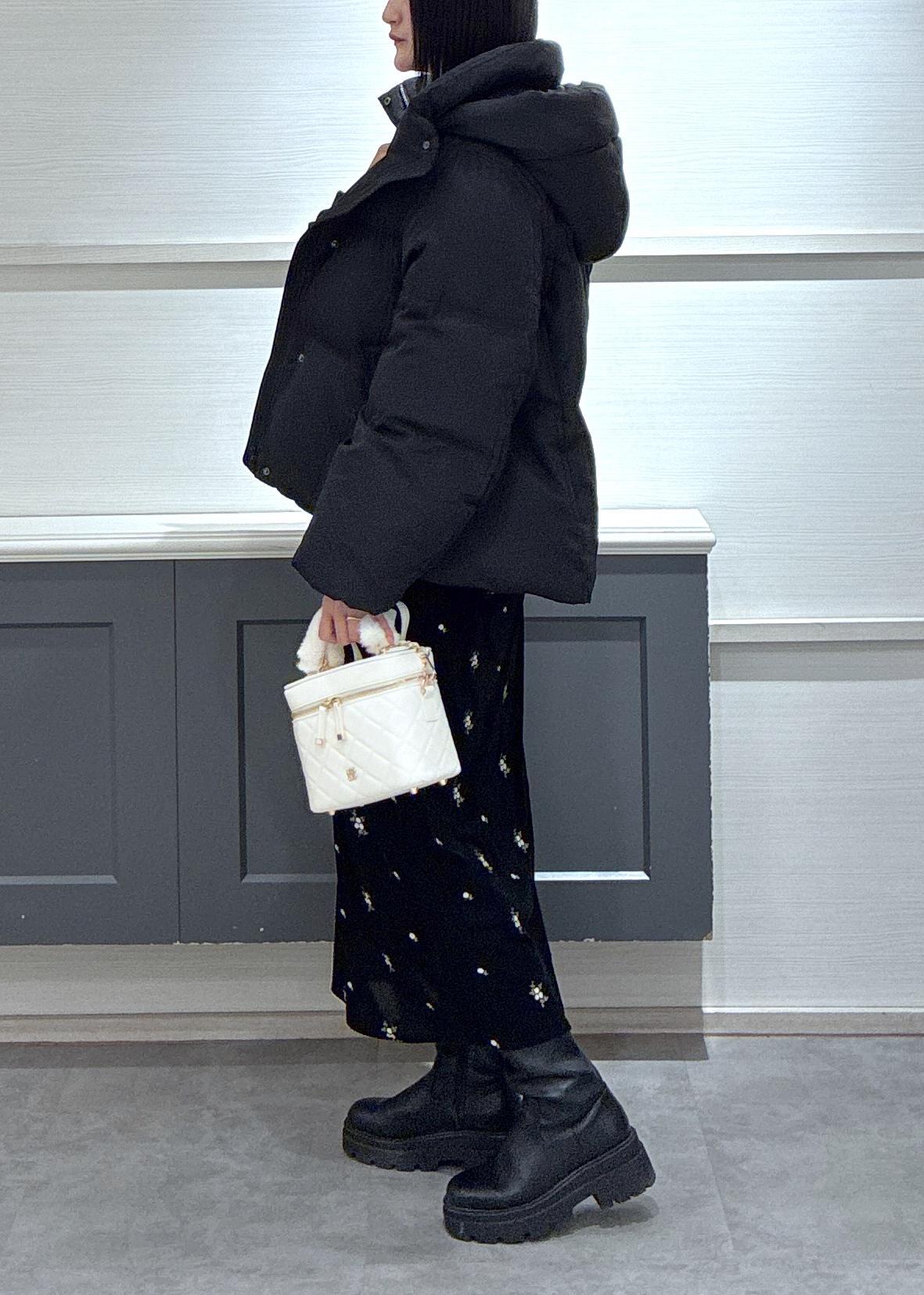 寒い日にピッタリのダウンジャケット×ワンピースのお出かけコーデです♪