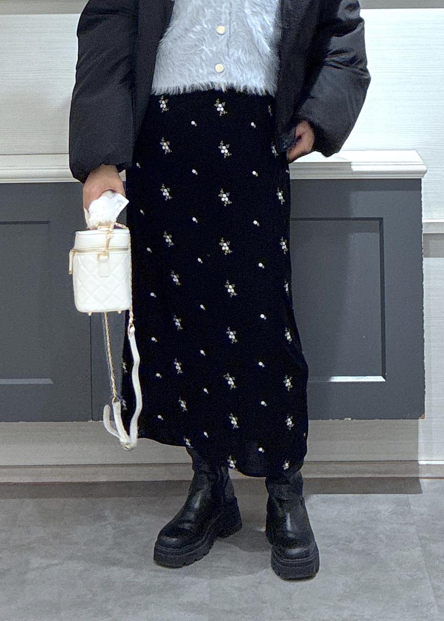 VIS刺繍アソートベロアキャミワンピース/2WAYブラック系 / F¥8,899レビュー身長168センチで足首にかかる長さですが調節出来るので、短くも長くもお好みで合わせることが出来るので嬉しいです♡