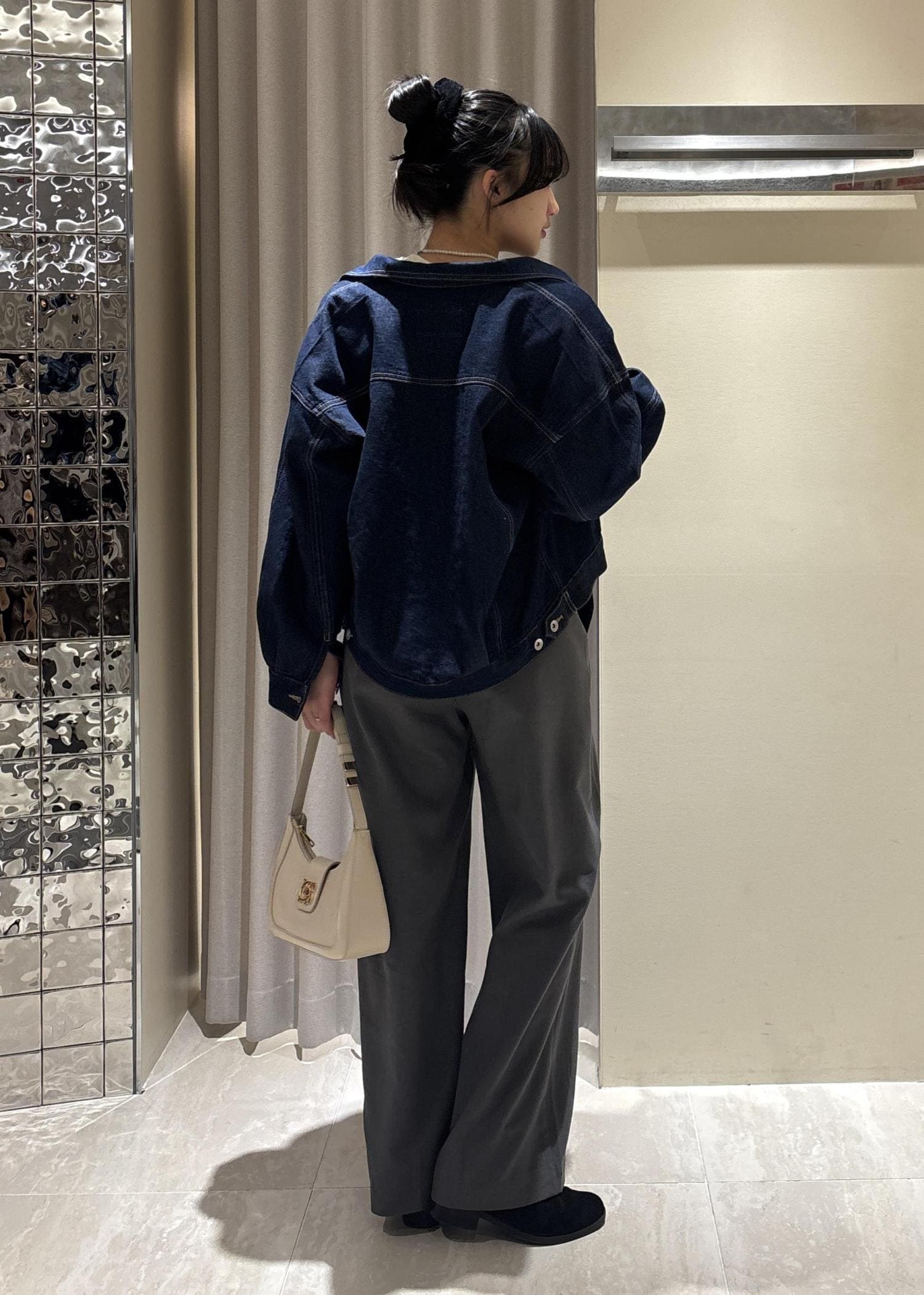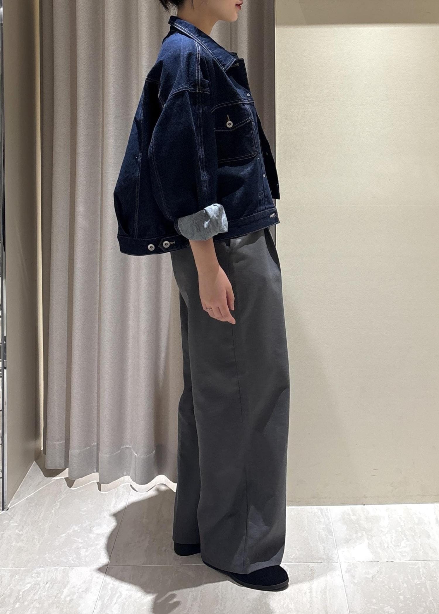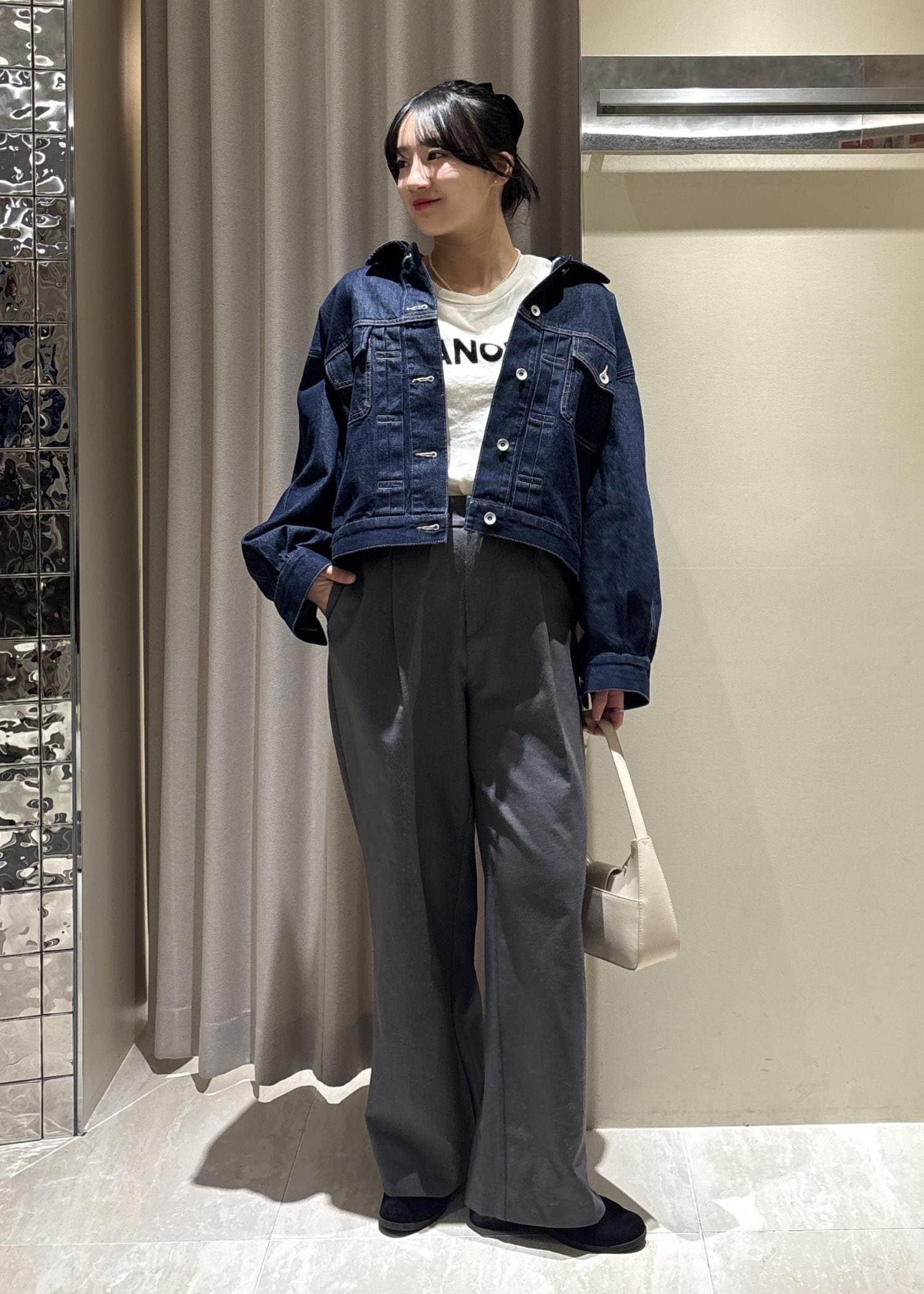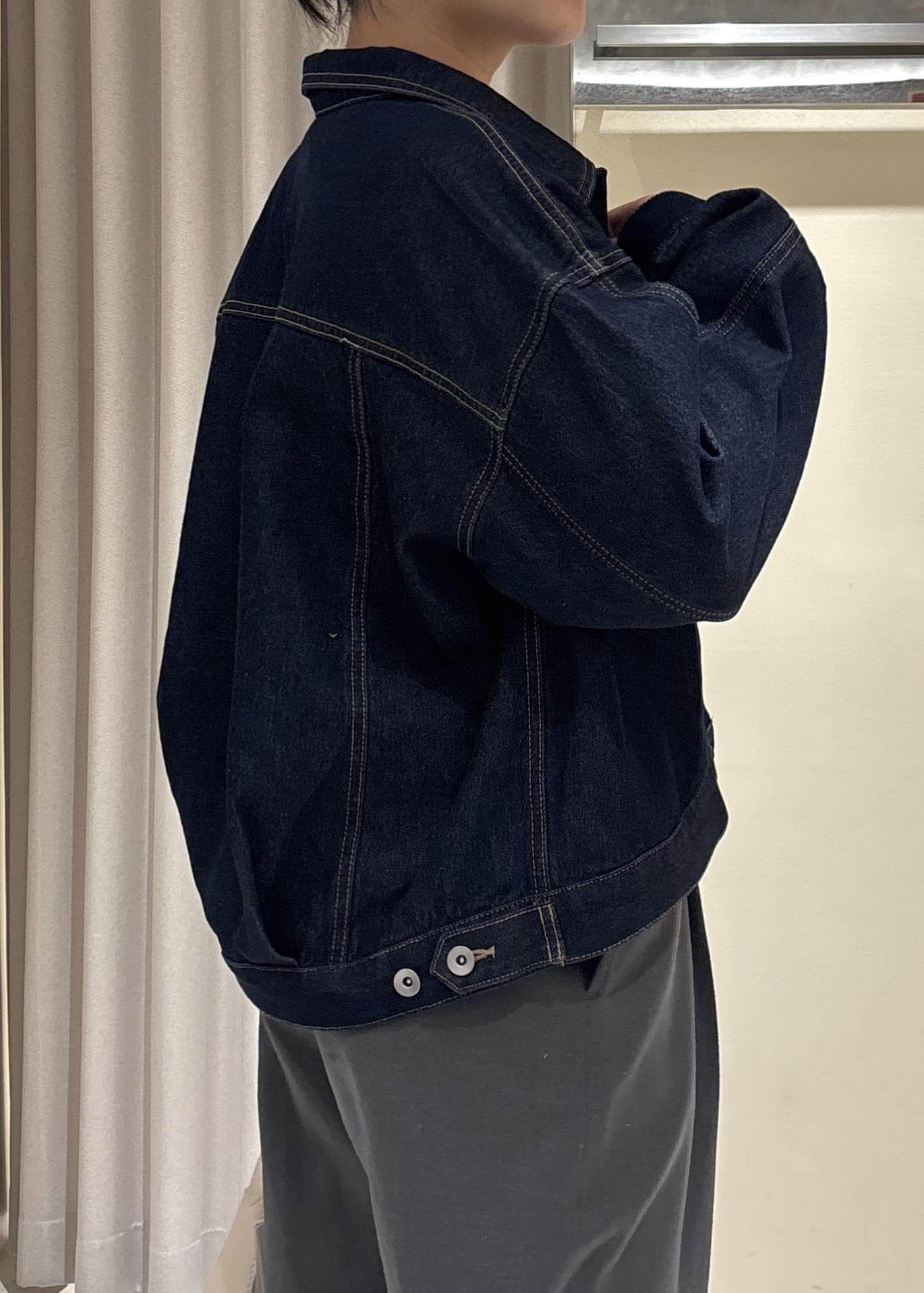 丸みシルエットなので、メンズライクなデニムジャケットも女性らしく着ていただきやすいです◎