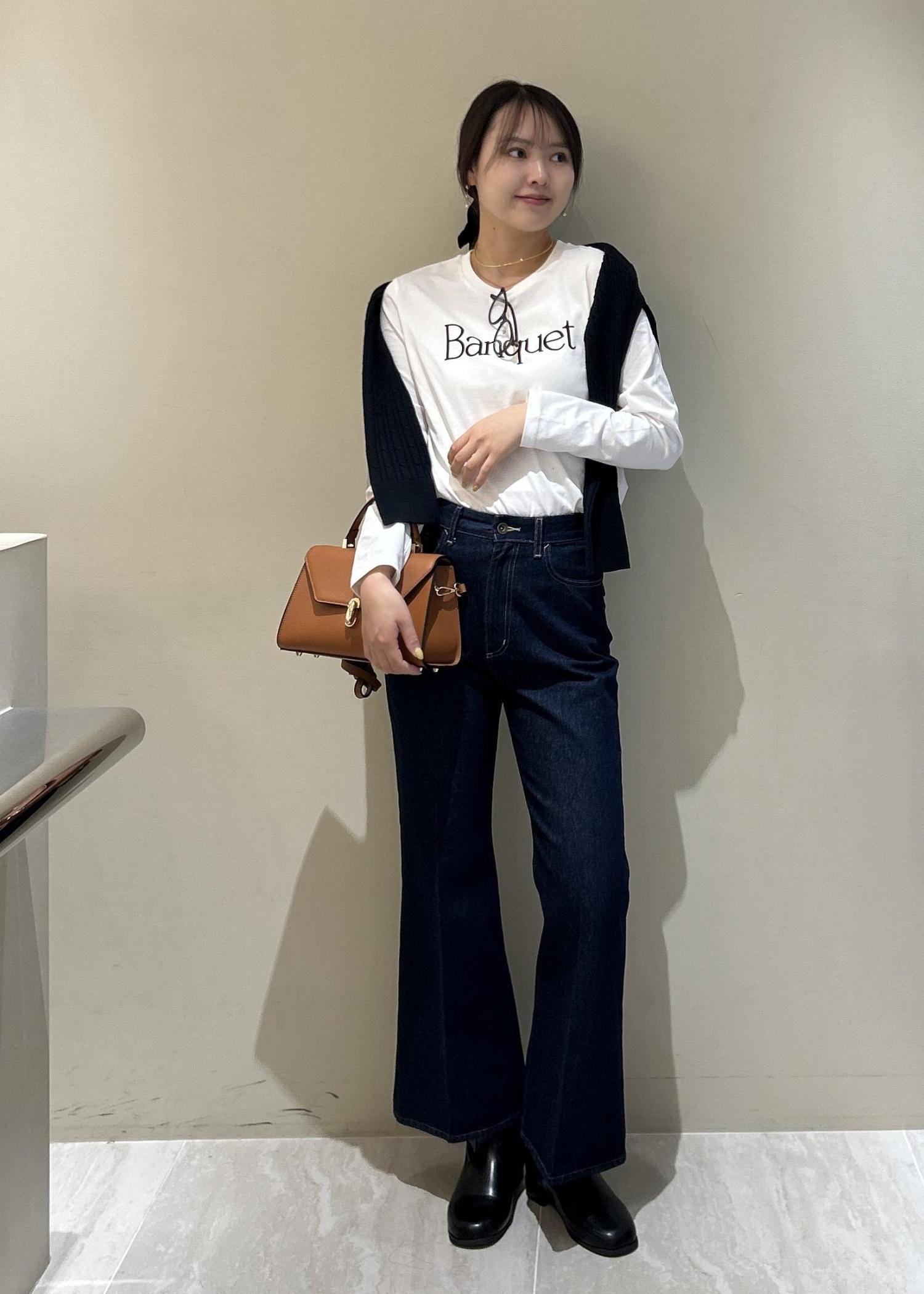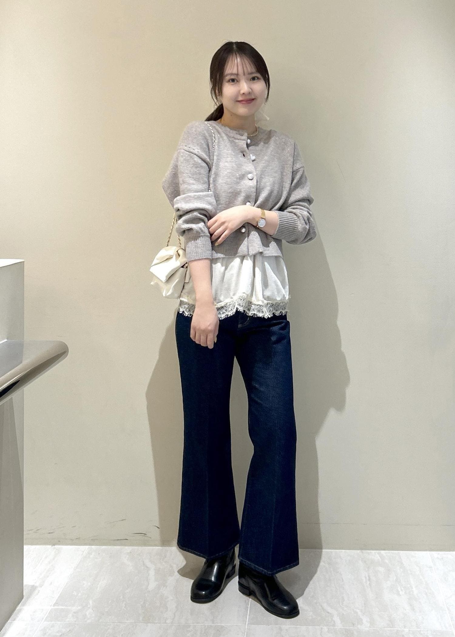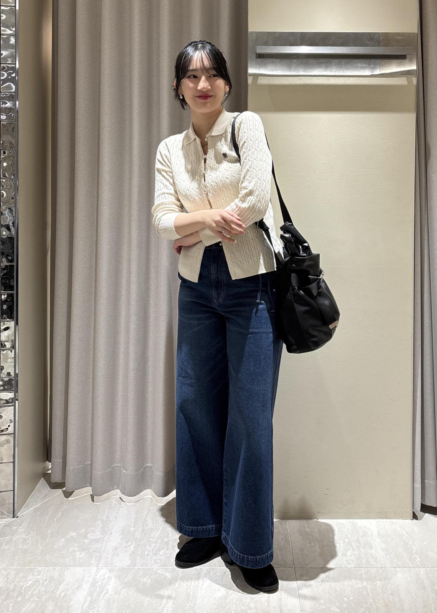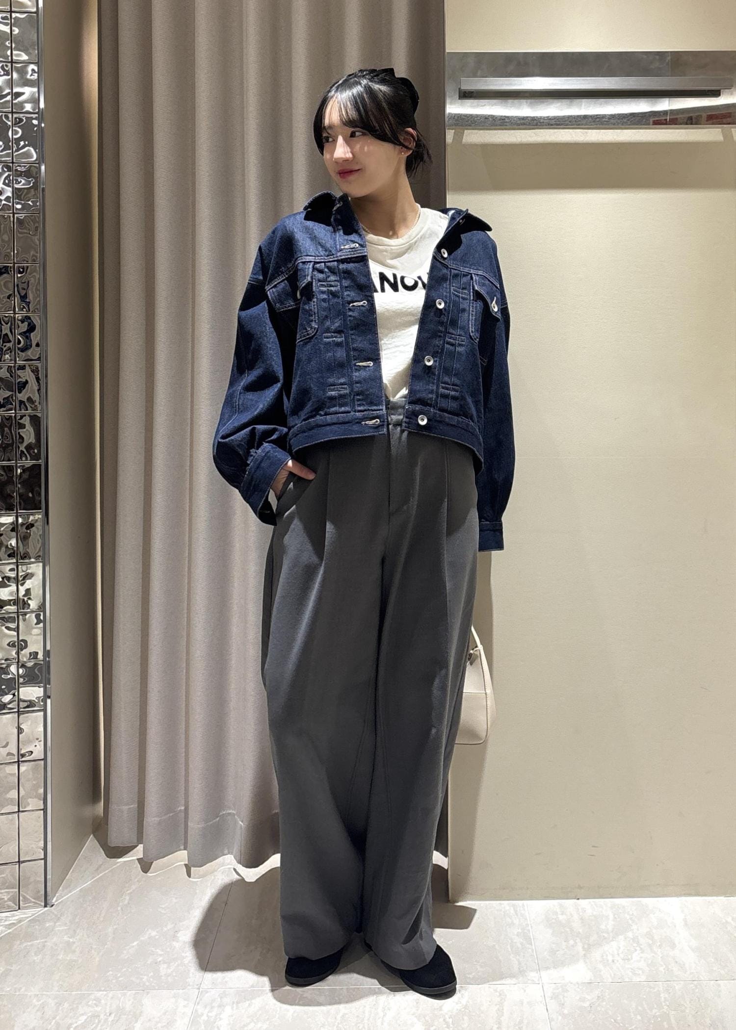丸みシルエットなので、メンズライクなデニムジャケットも女性らしく着ていただきやすいです◎