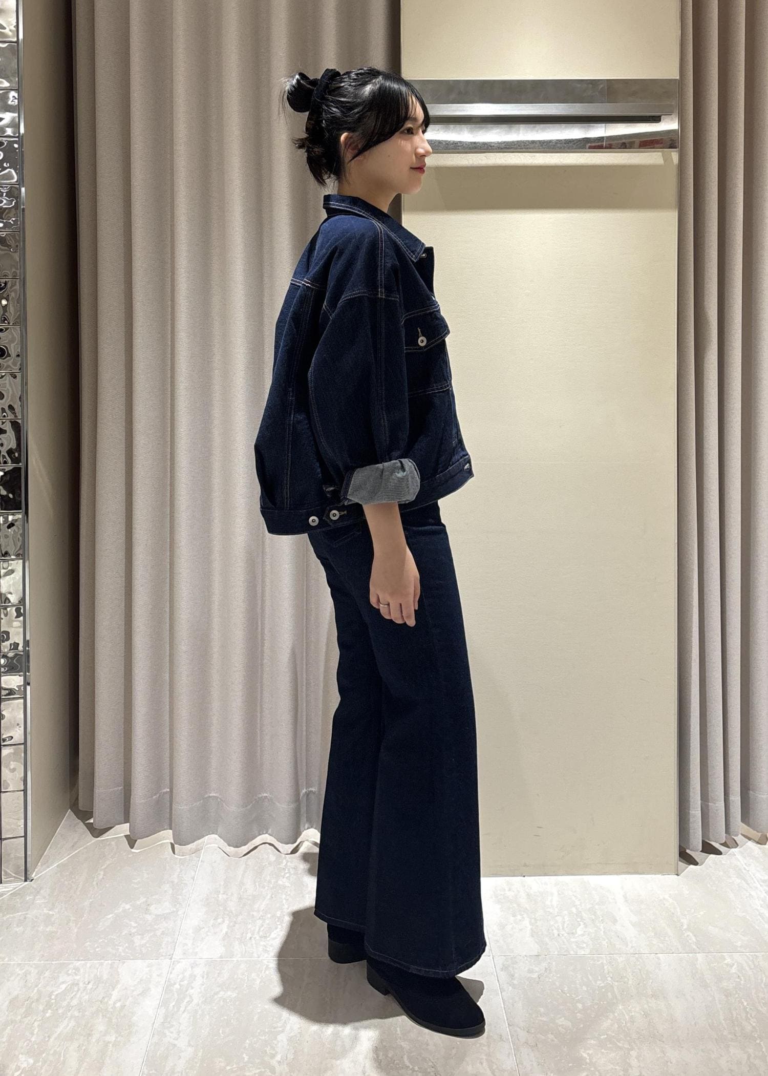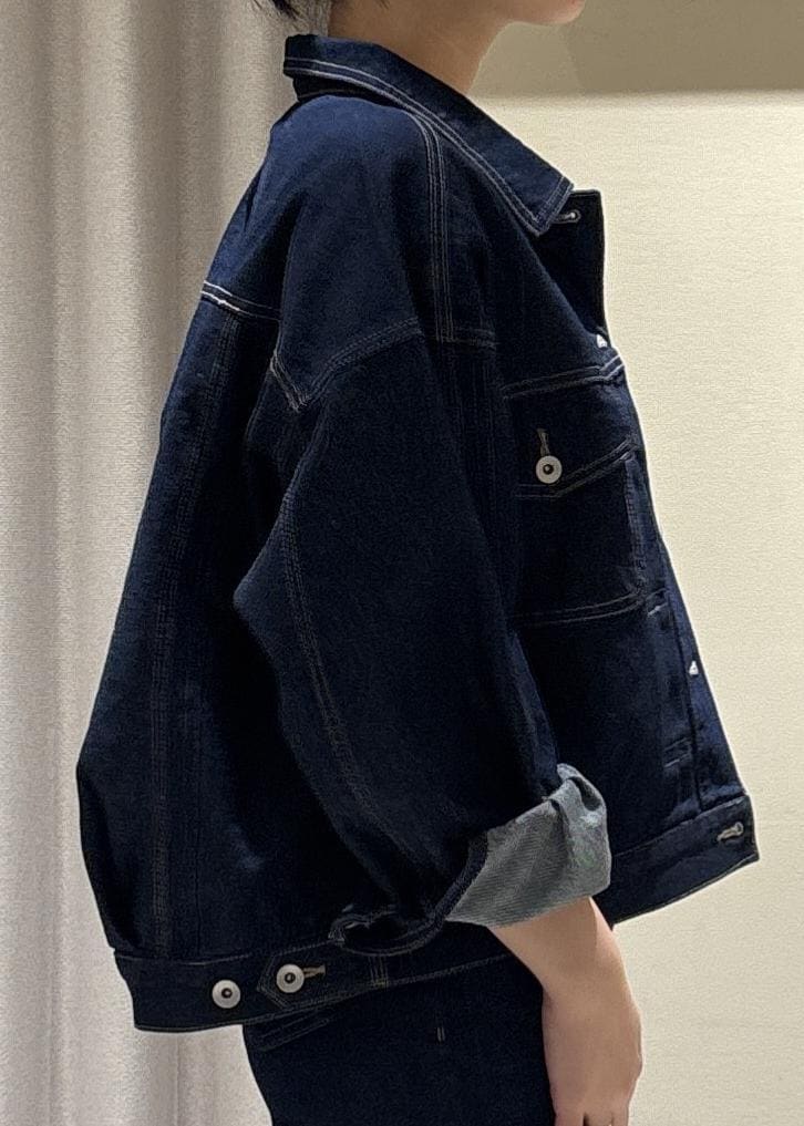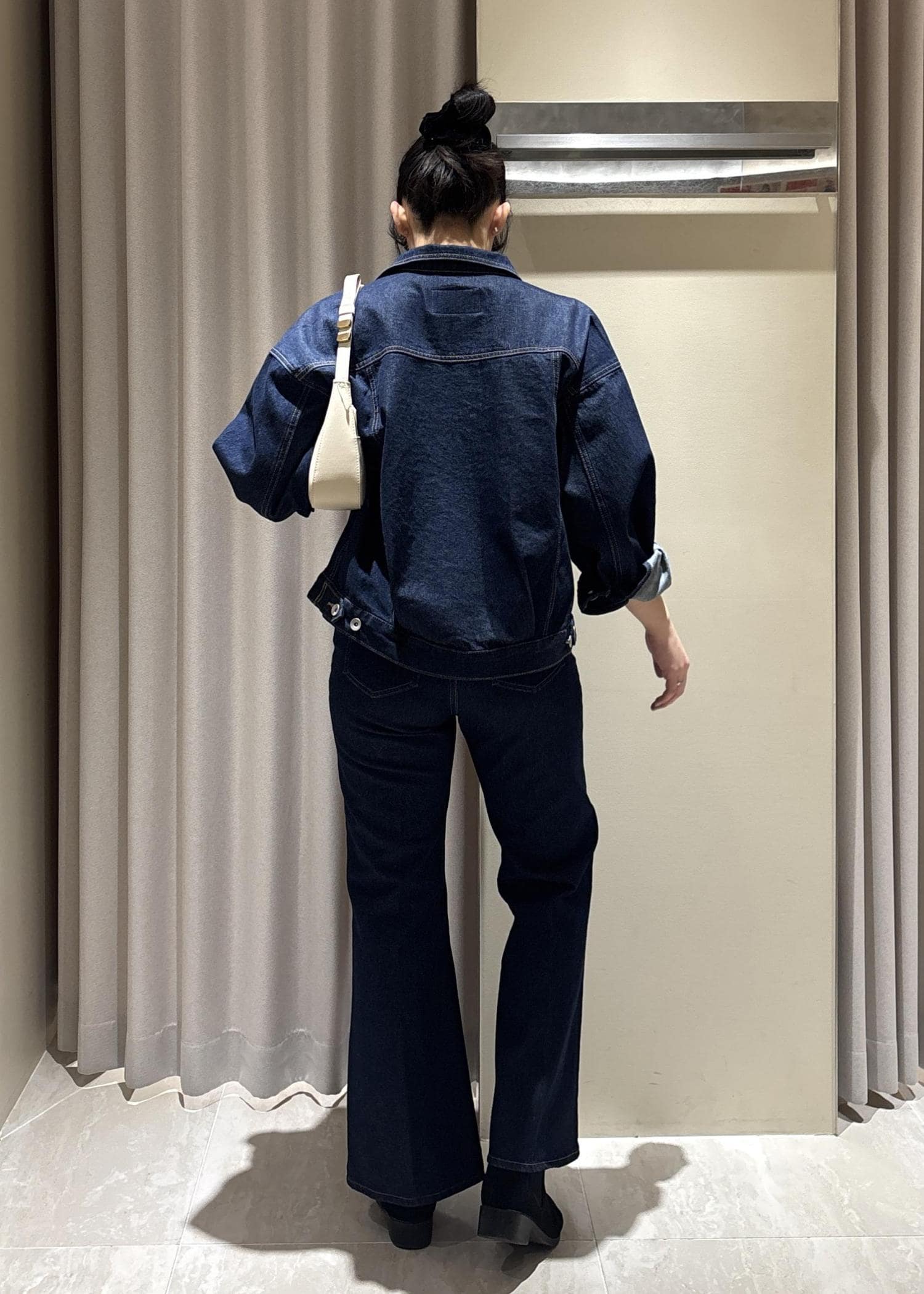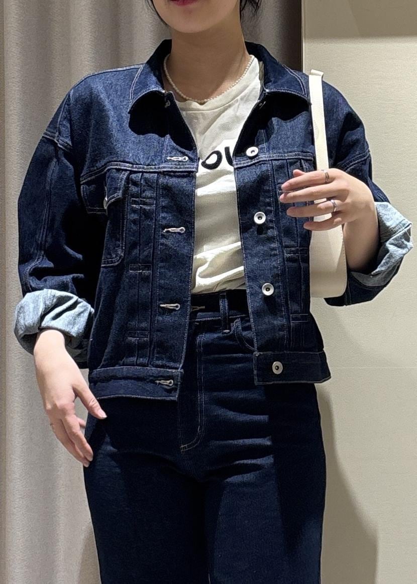 丸みシルエットなので、メンズライクなデニムジャケットも女性らしく着ていただきやすいです◎
