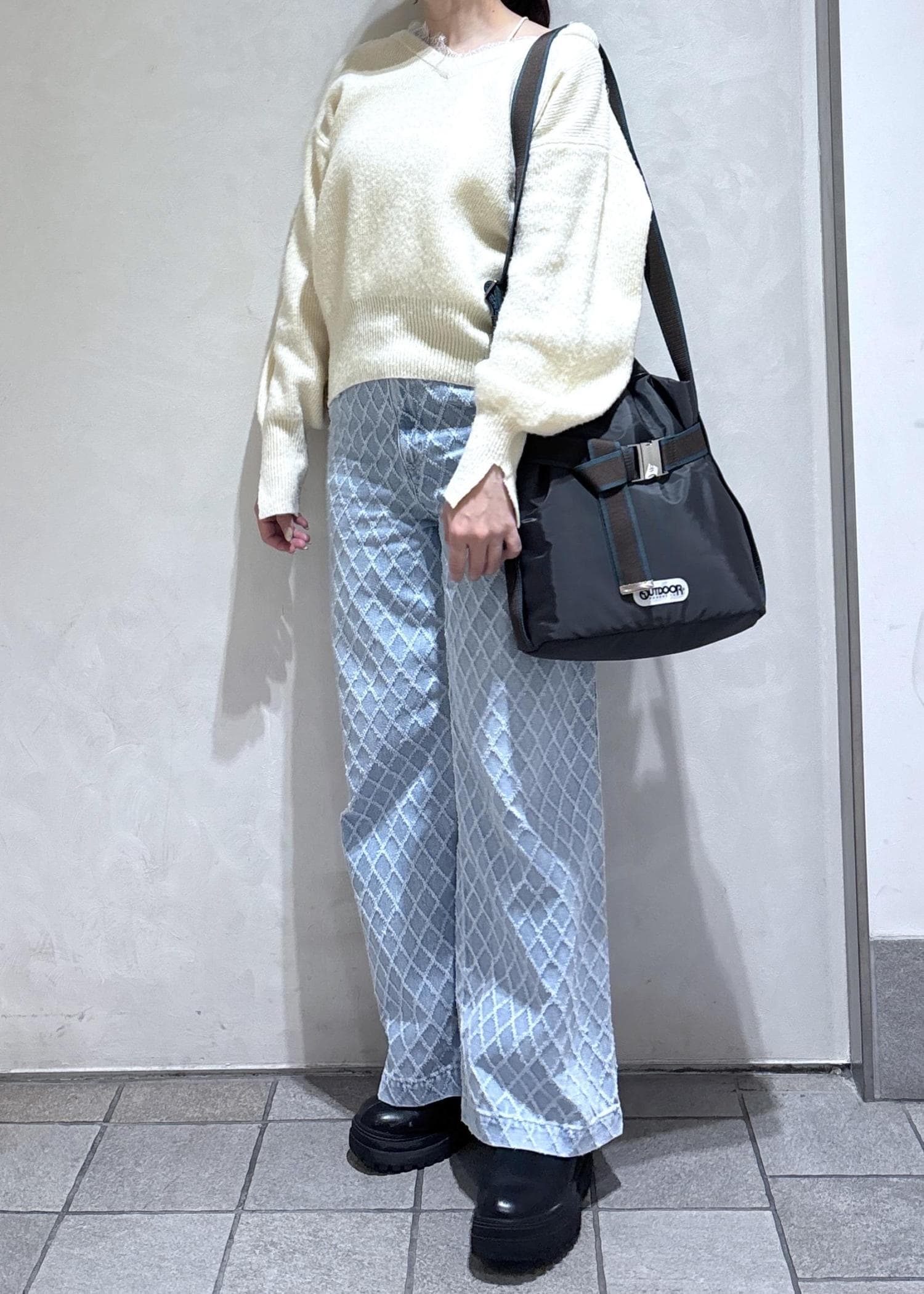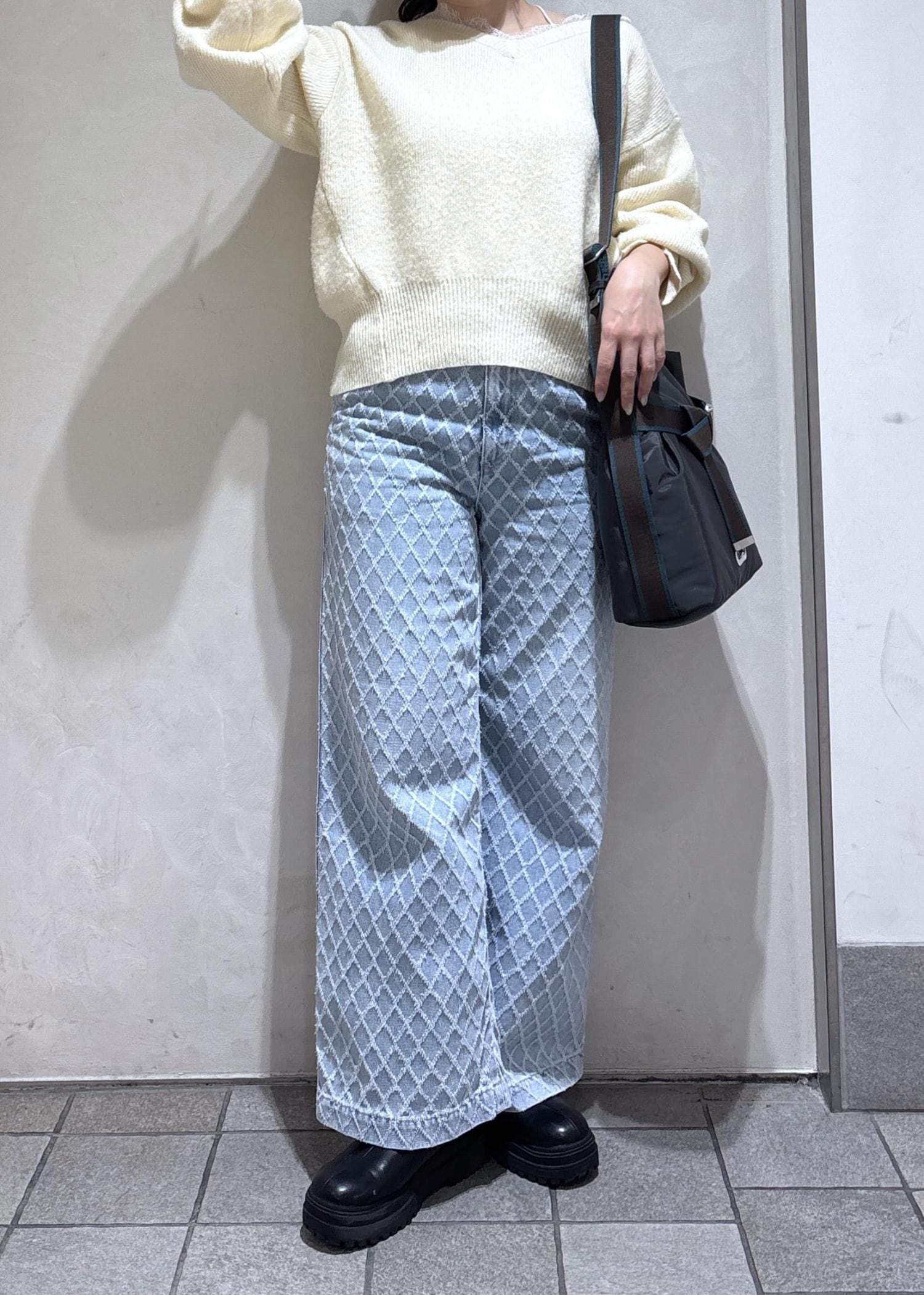 アーガイル柄のデニムで先取り春っぽコーデ♩
