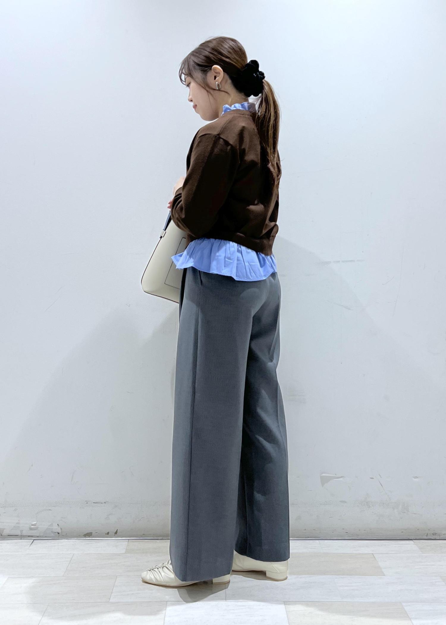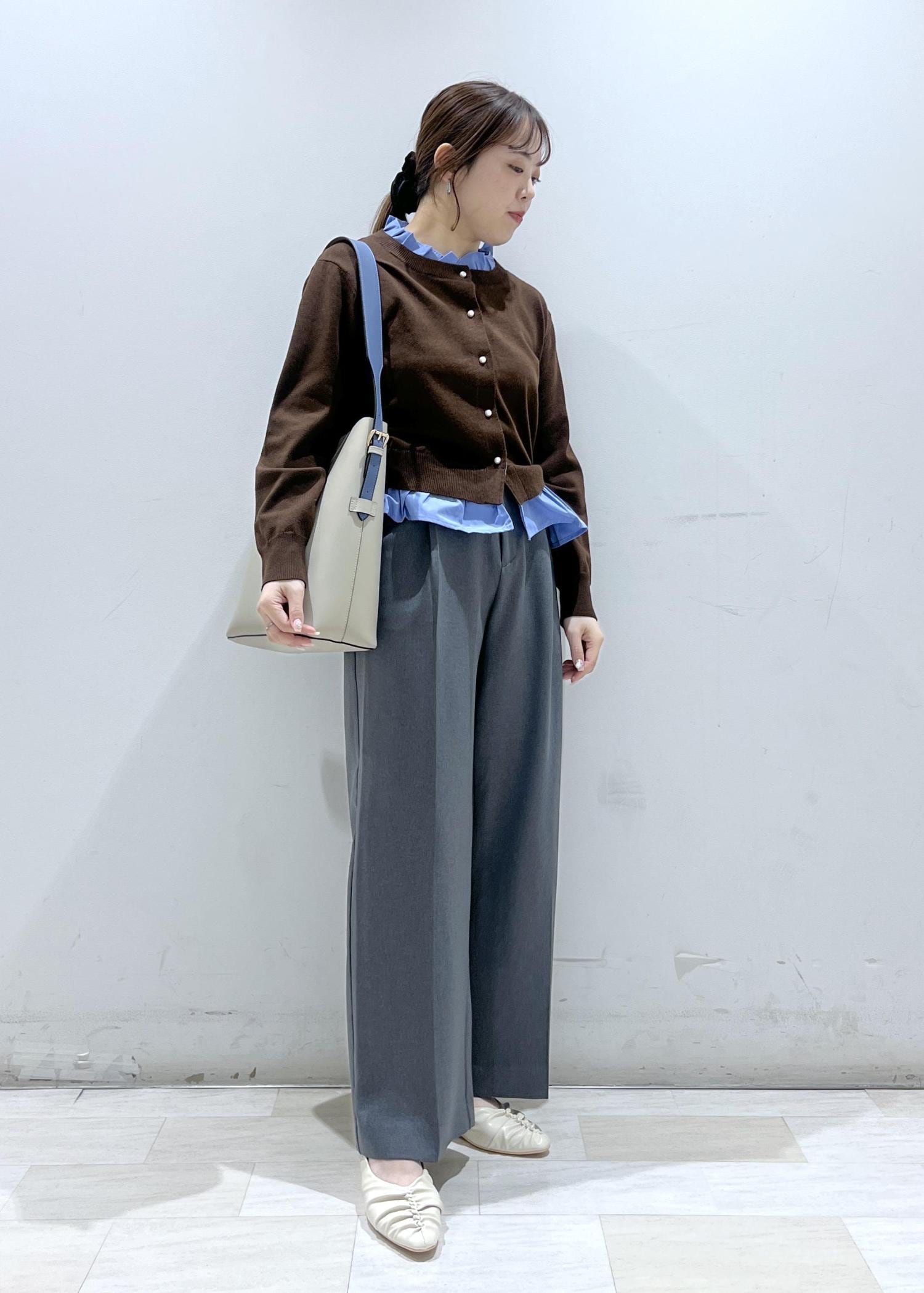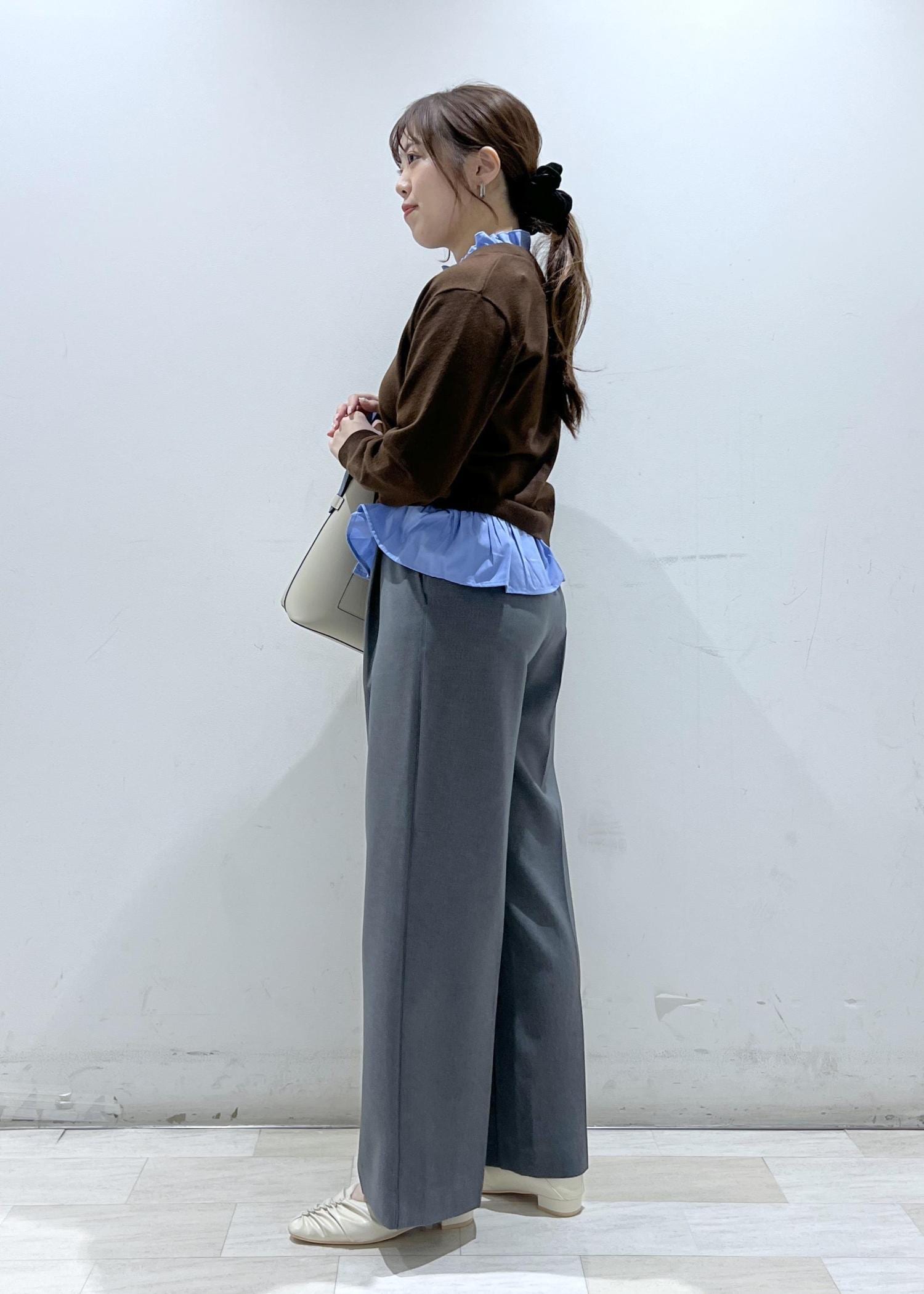 仕事でも普段使いでもさまざまなテイストで着れるデザインで、着用しているカラーはブラウン×ブルーの配色がとても可愛いです。ほどよく薄手なので3シーズン着やすい素材です。 -