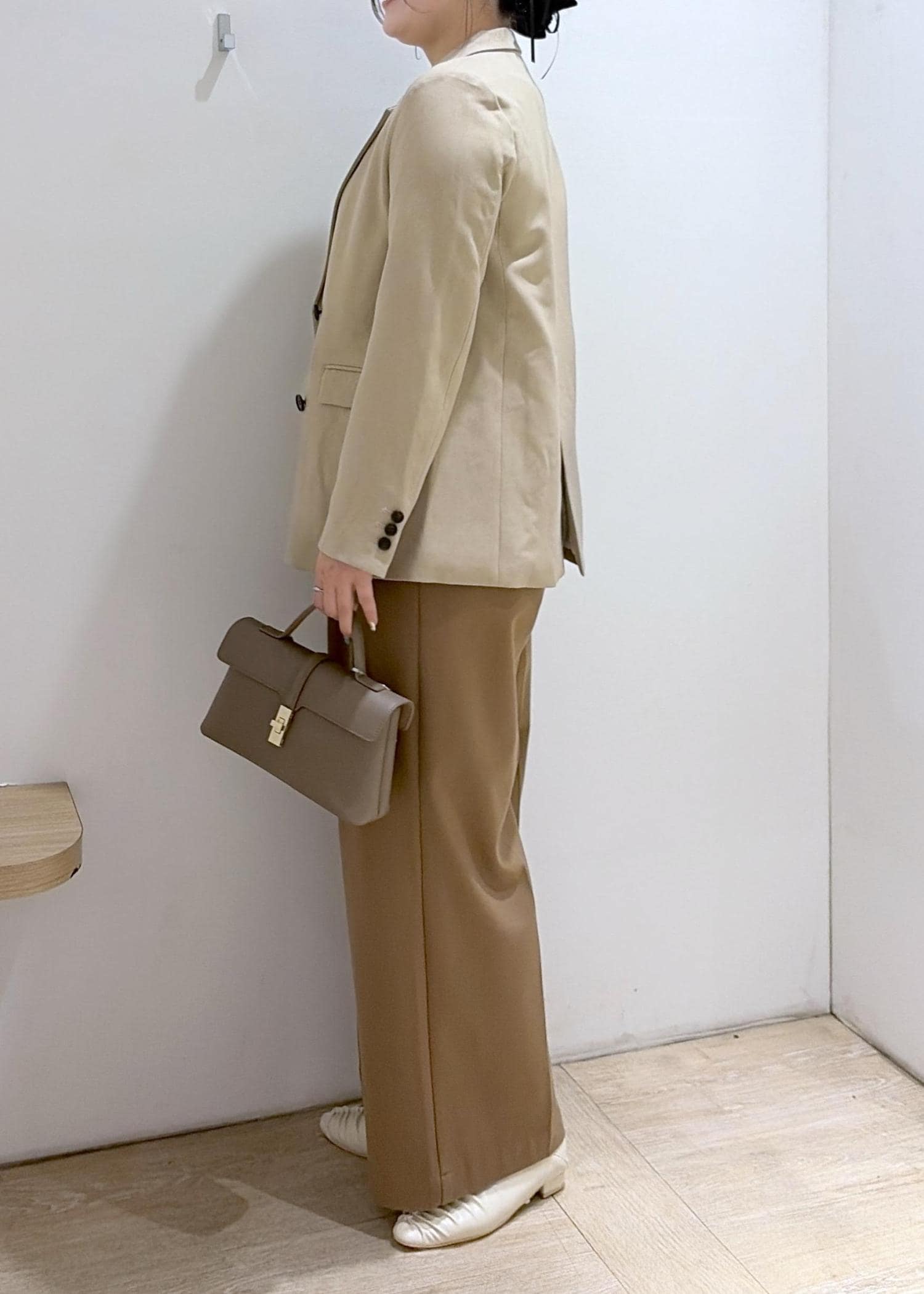 ツータックデザインなので、腰回りがスッキリ見えしやすいです。