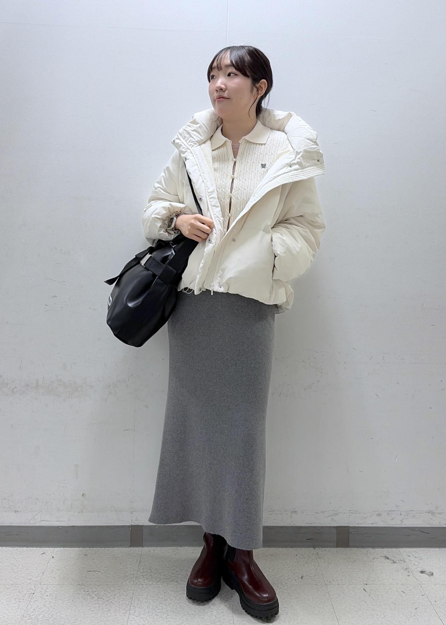ヒップにややかかる丈感なので、ボトムだけでなく、ワンピースを着用してもバランスがとりやすいです。 -