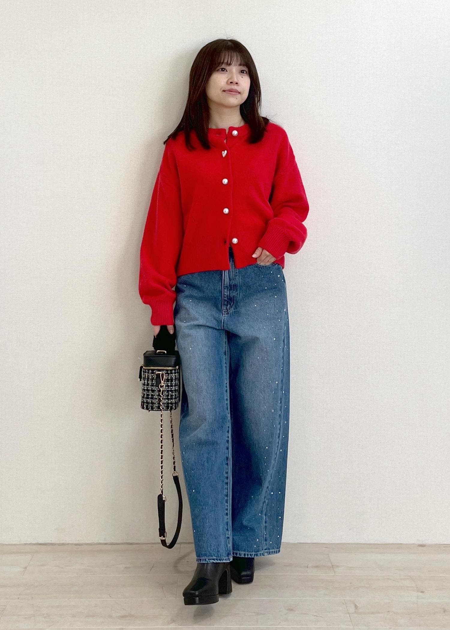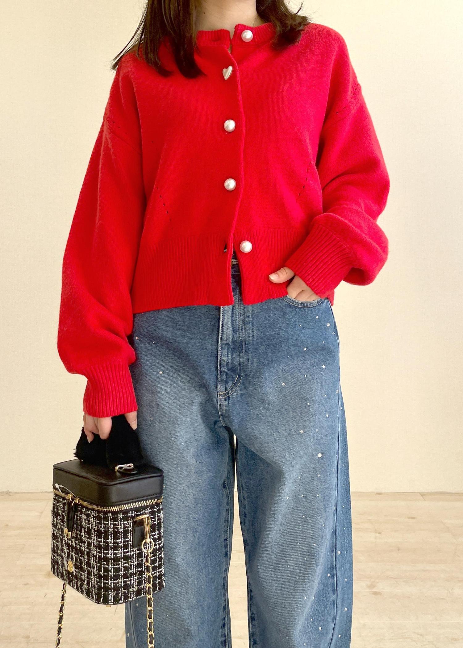 2BUY10%OFFVISハートアソートパール釦ラメミックスカーディガン/イージーケア・一部WEB限定カラーレッド / F¥4,391レビューサイズは少しゆとりがあるのでインナーにロンTや薄手のニットを重ねることができます。