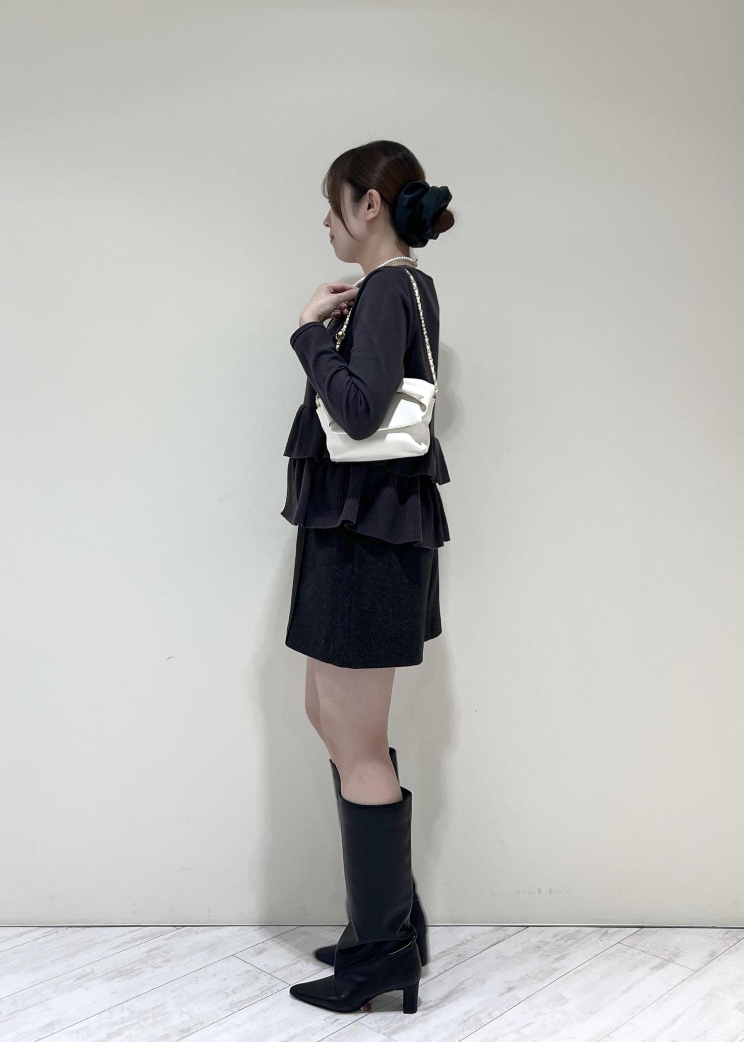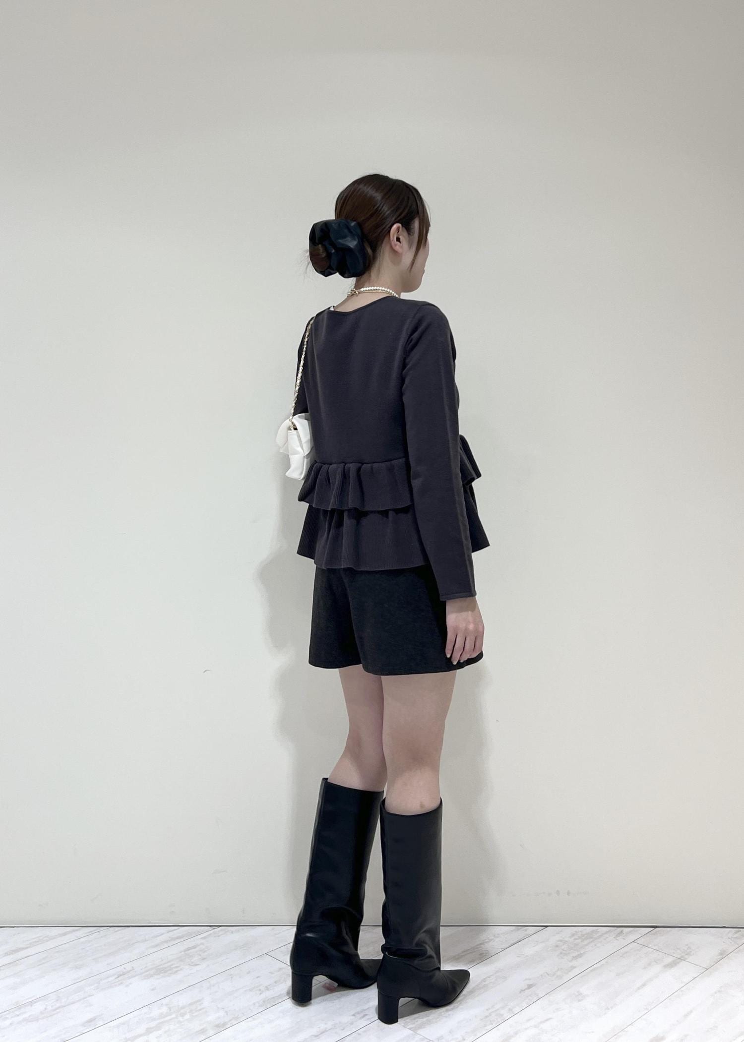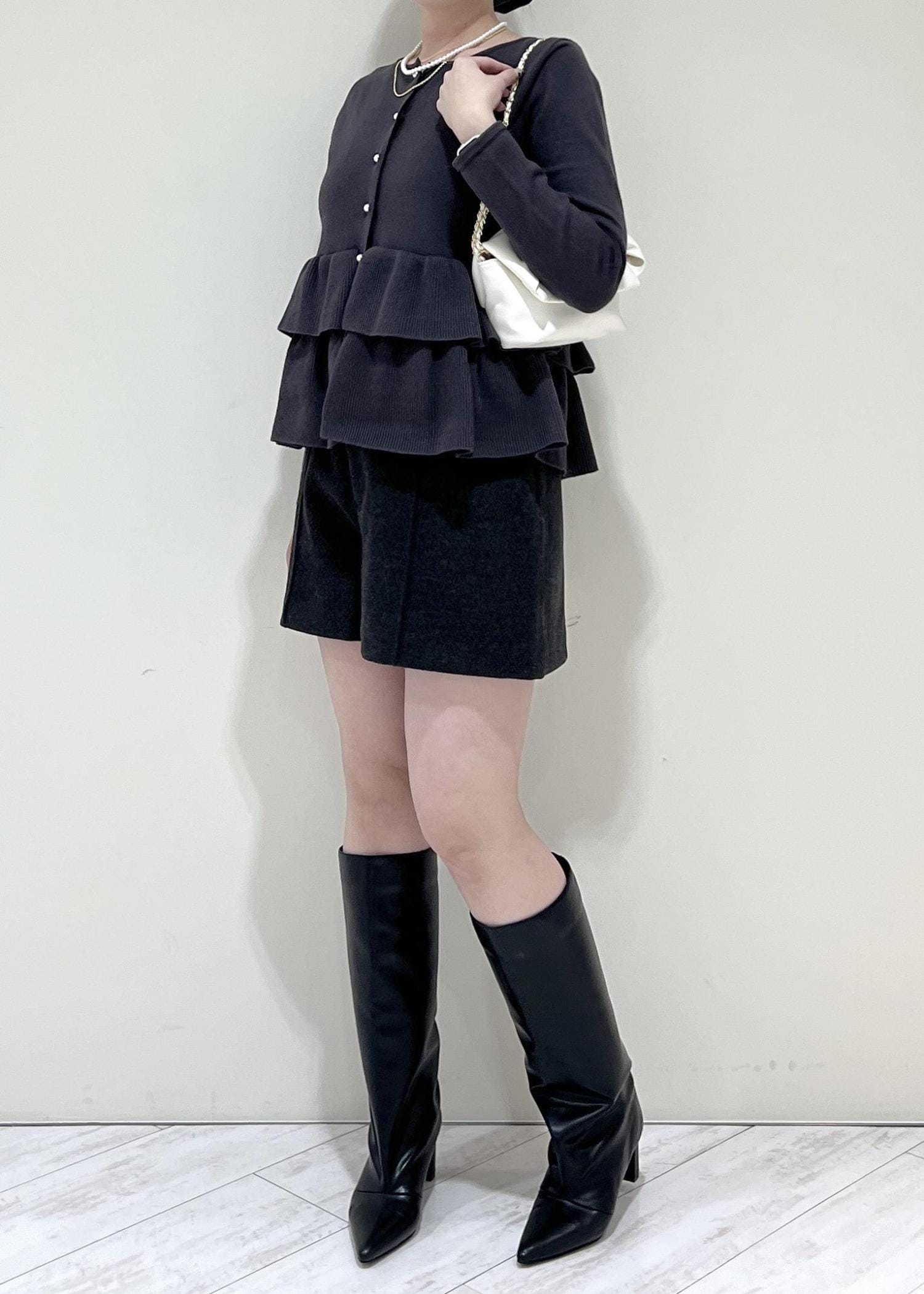 VISティアードペプラムニットカーディガンチャコール / F¥6,589レビューカーディガンとしても一枚着としても着回せるデザインです!着丈は腰にかかるくらいで、サイズ感は程よくゆったり着られるのでインナーにハイネック等を合わせても◎