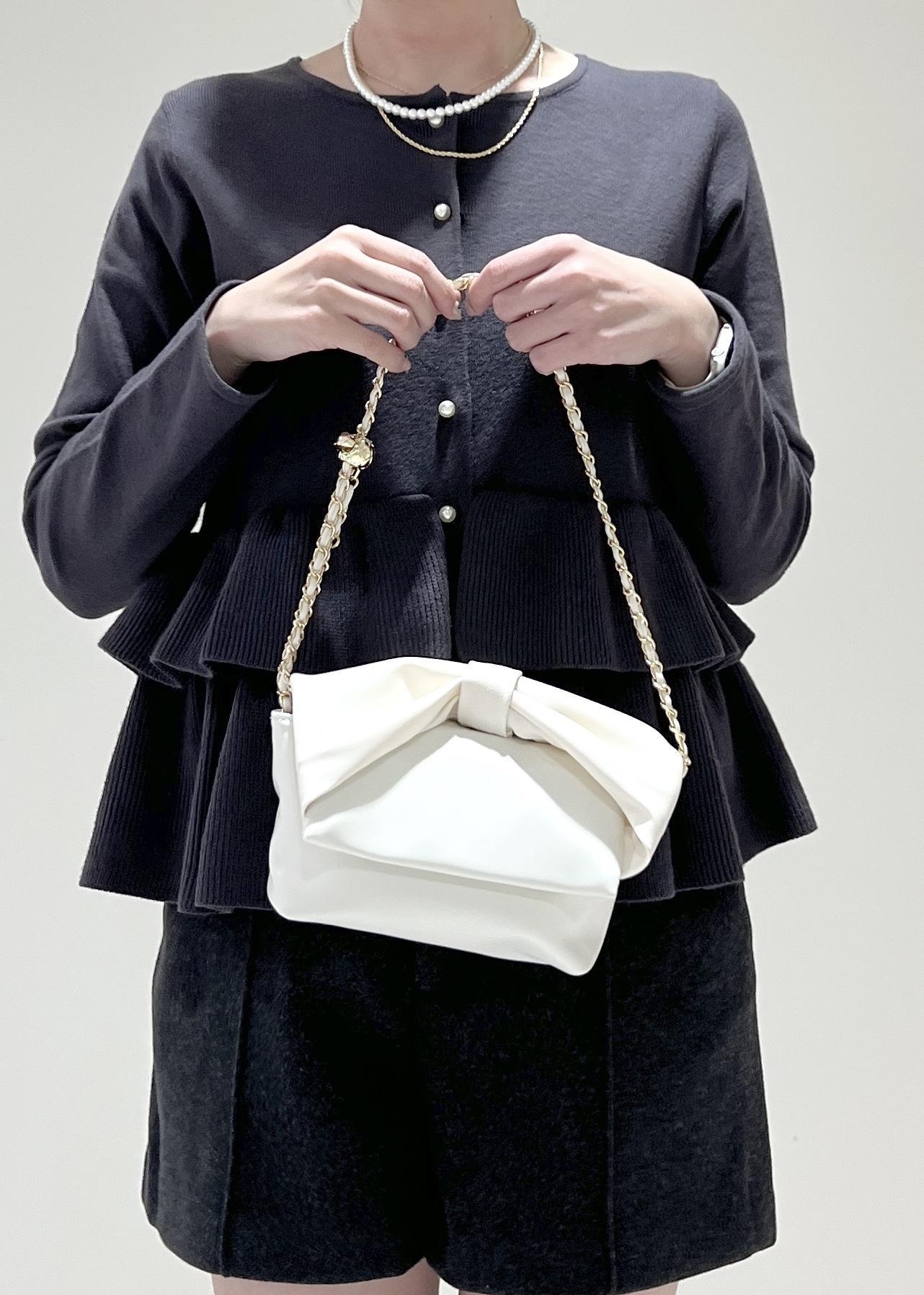 2BUY10%OFFVISリボンハンドルチェーンショルダーバッグ/2WAYキナリ / F¥4,743レビュー大きなリボンがポイントになるショルダーバッグです!二つ折り財布やスマホなどの貴重品はしっかり入ります。きれいめコーデにおすすめです♡