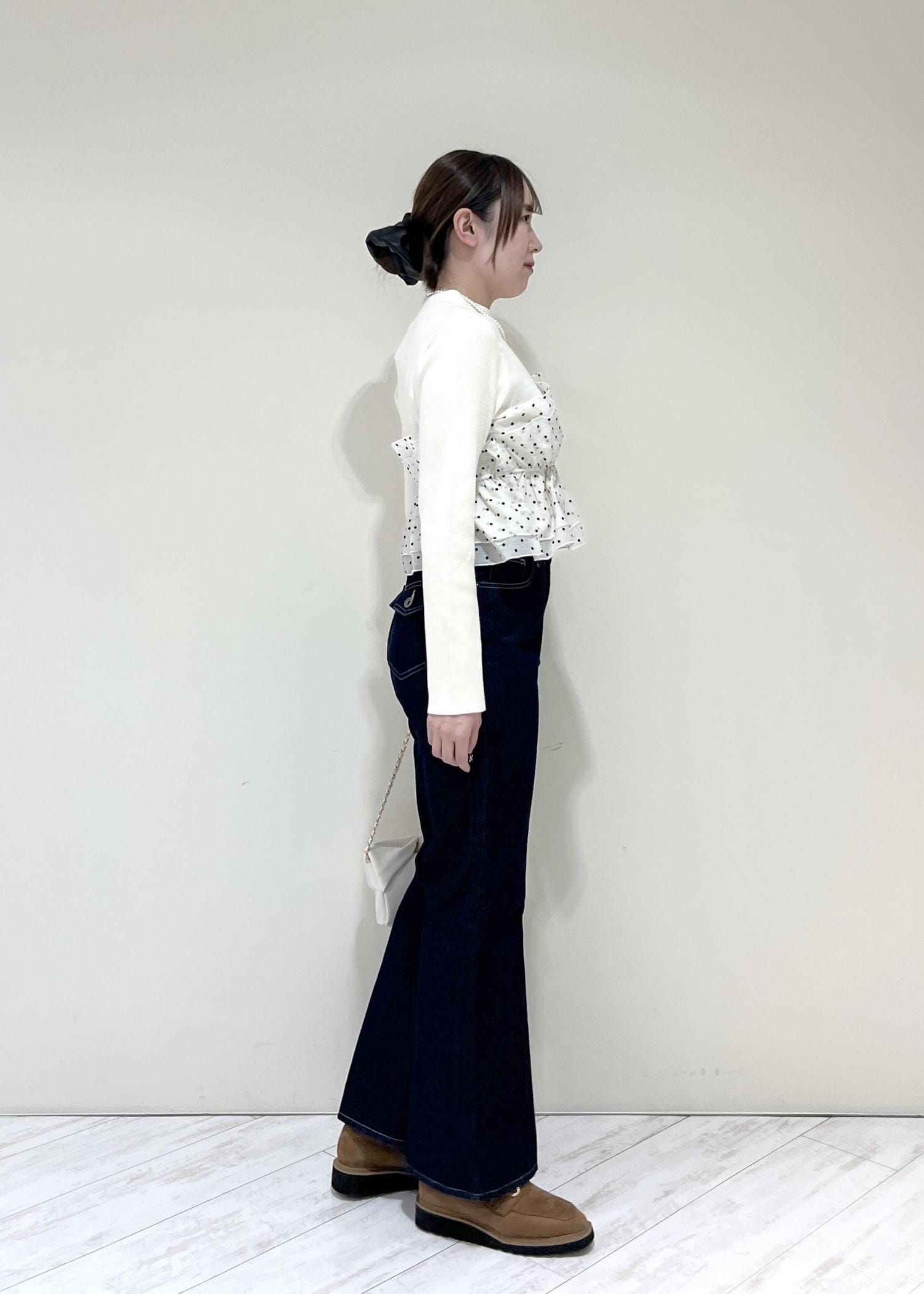 VISフレアシルエットデニムネイビー / M¥8,899レビューMサイズ着用ですが、ウエストや太もも周りはタイトめでぴったりでした!身長164cmで着丈はくるぶしが隠れるくらいです。とにかく、かたちが綺麗です♡