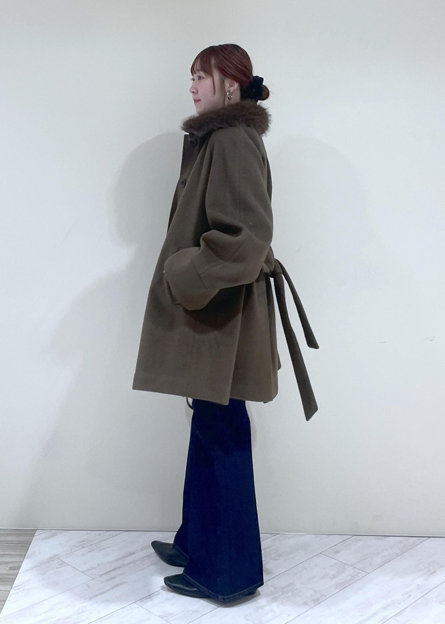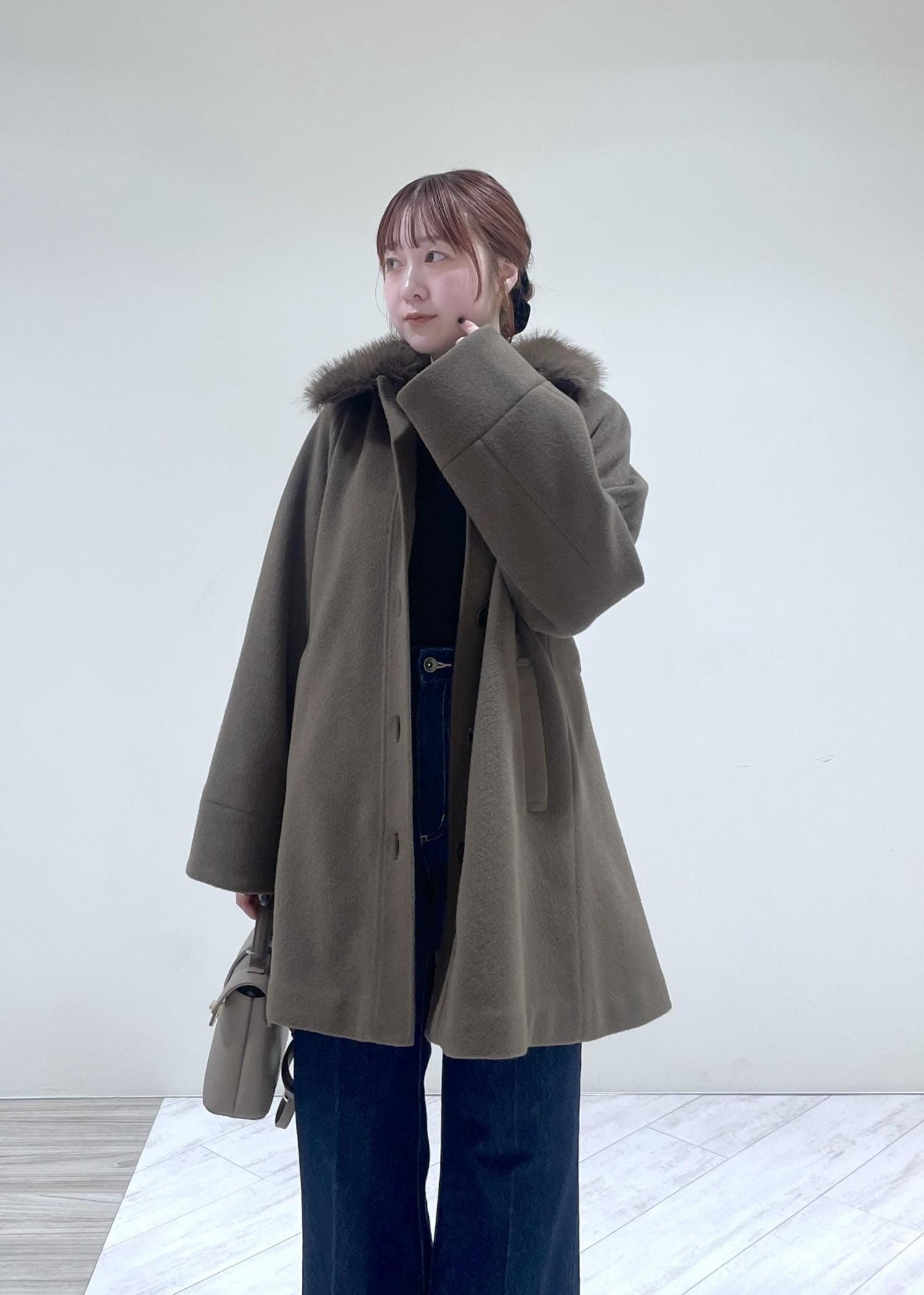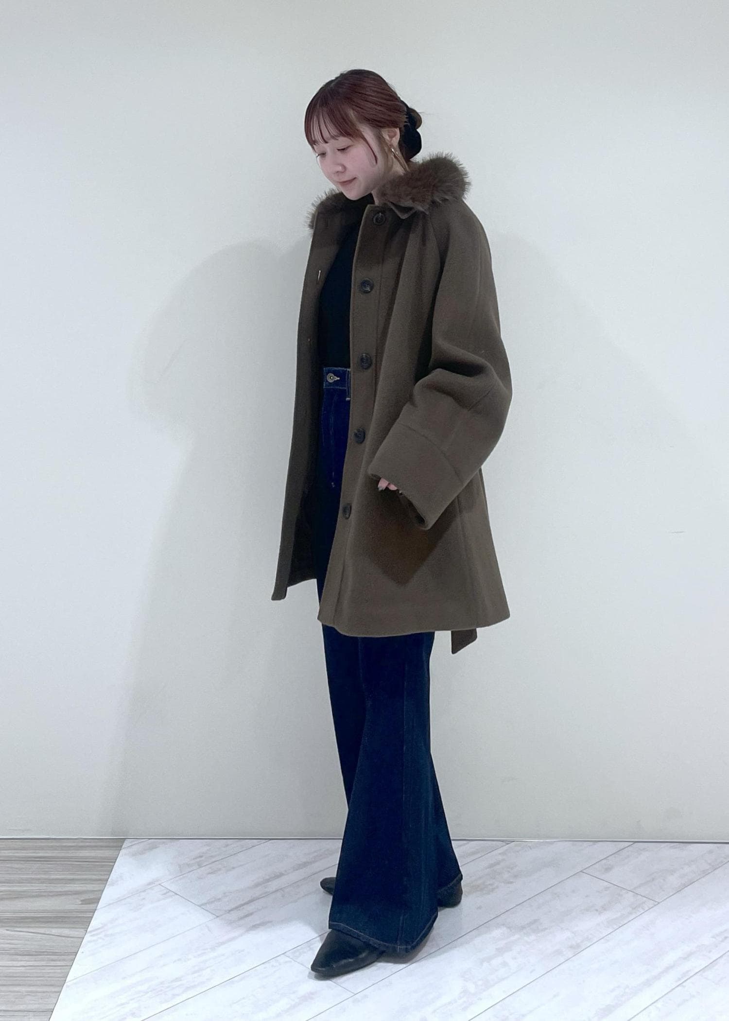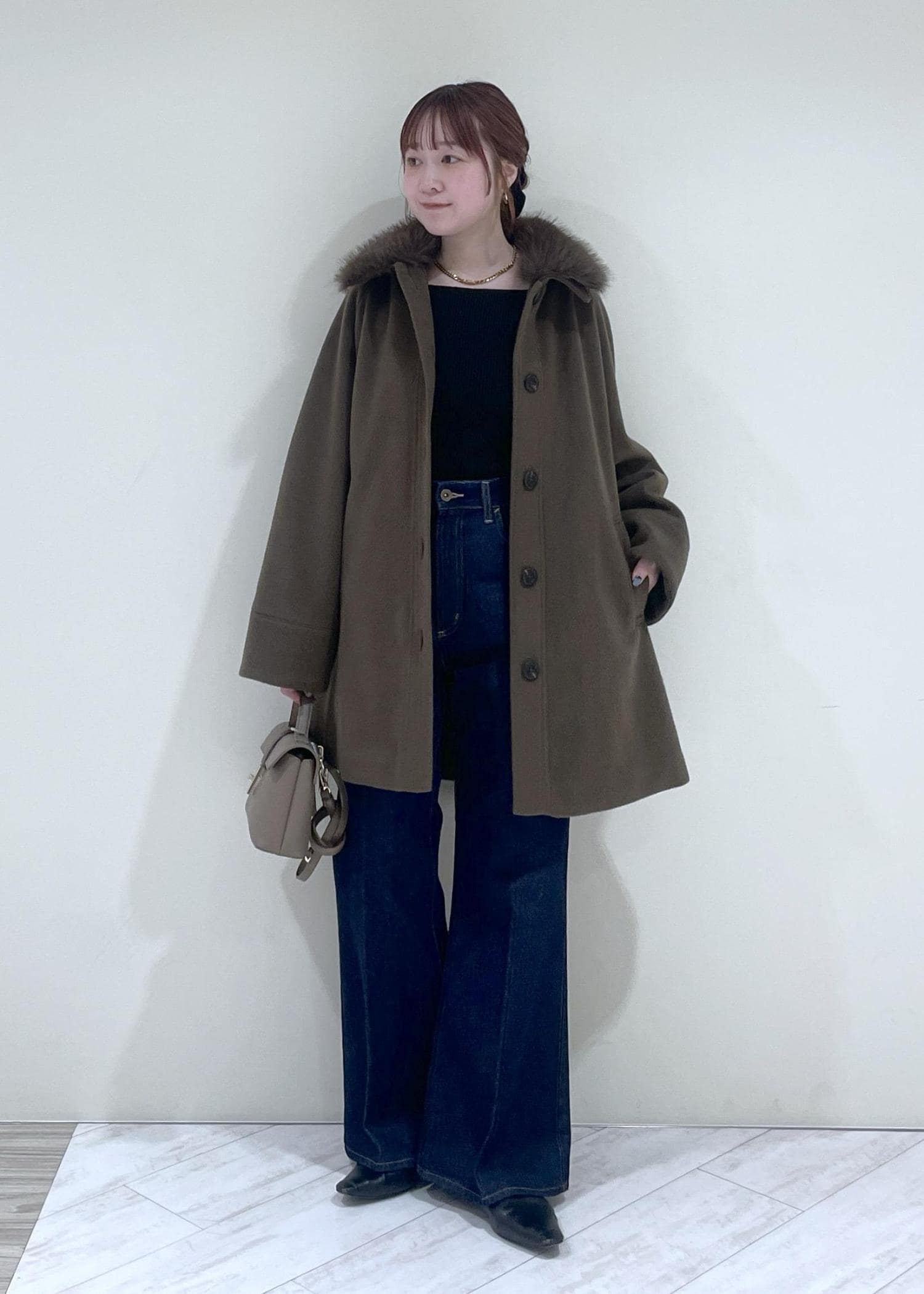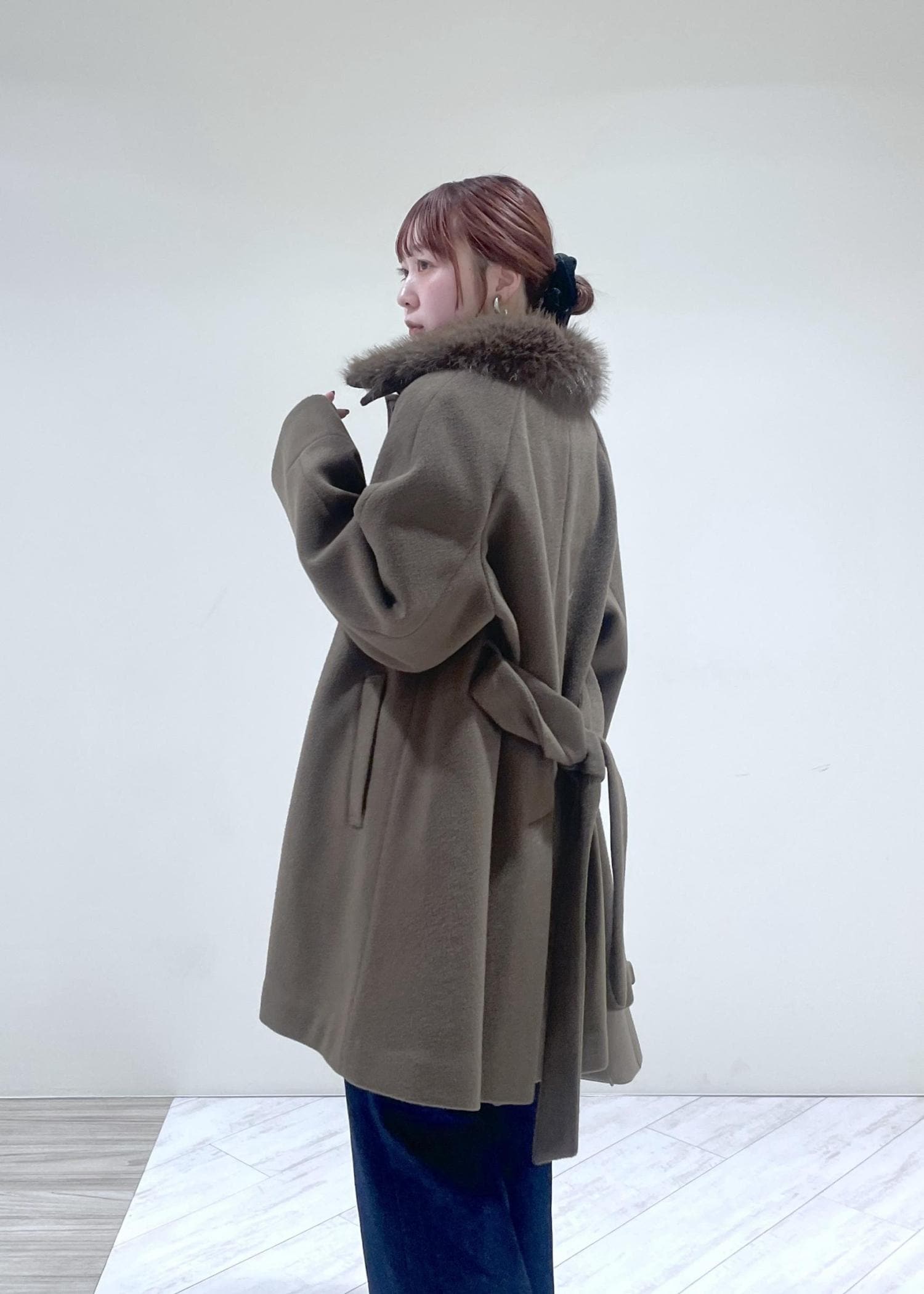 襟元のファーで華やかさも♡