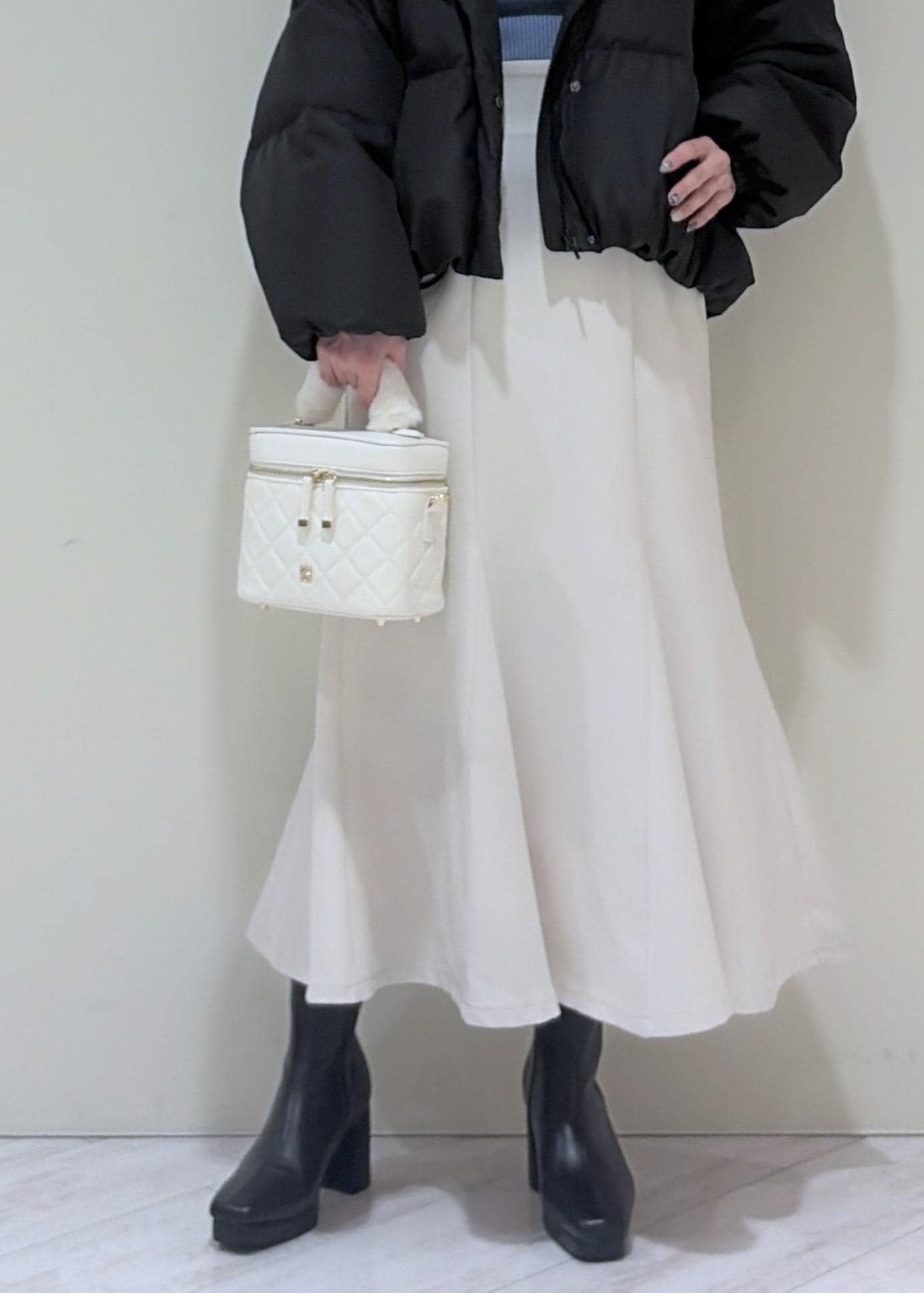 トップス、スカートはダウンを脱げは春までしっかり使える