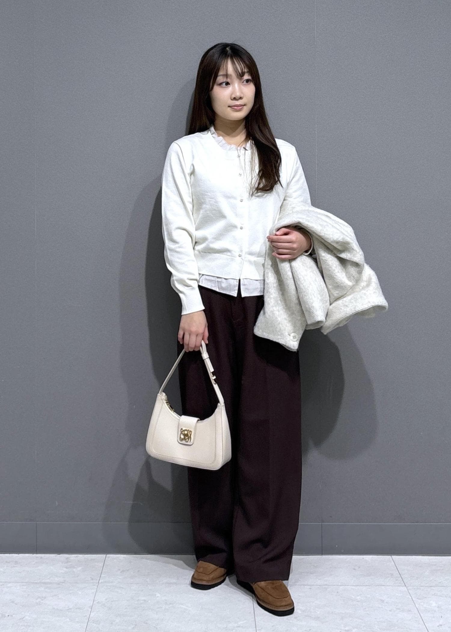 さりげないシャツレースのレイヤードが、トレンド感があって、マンネリ化しがちな冬コーデにぴったりなアクセントです☺︎