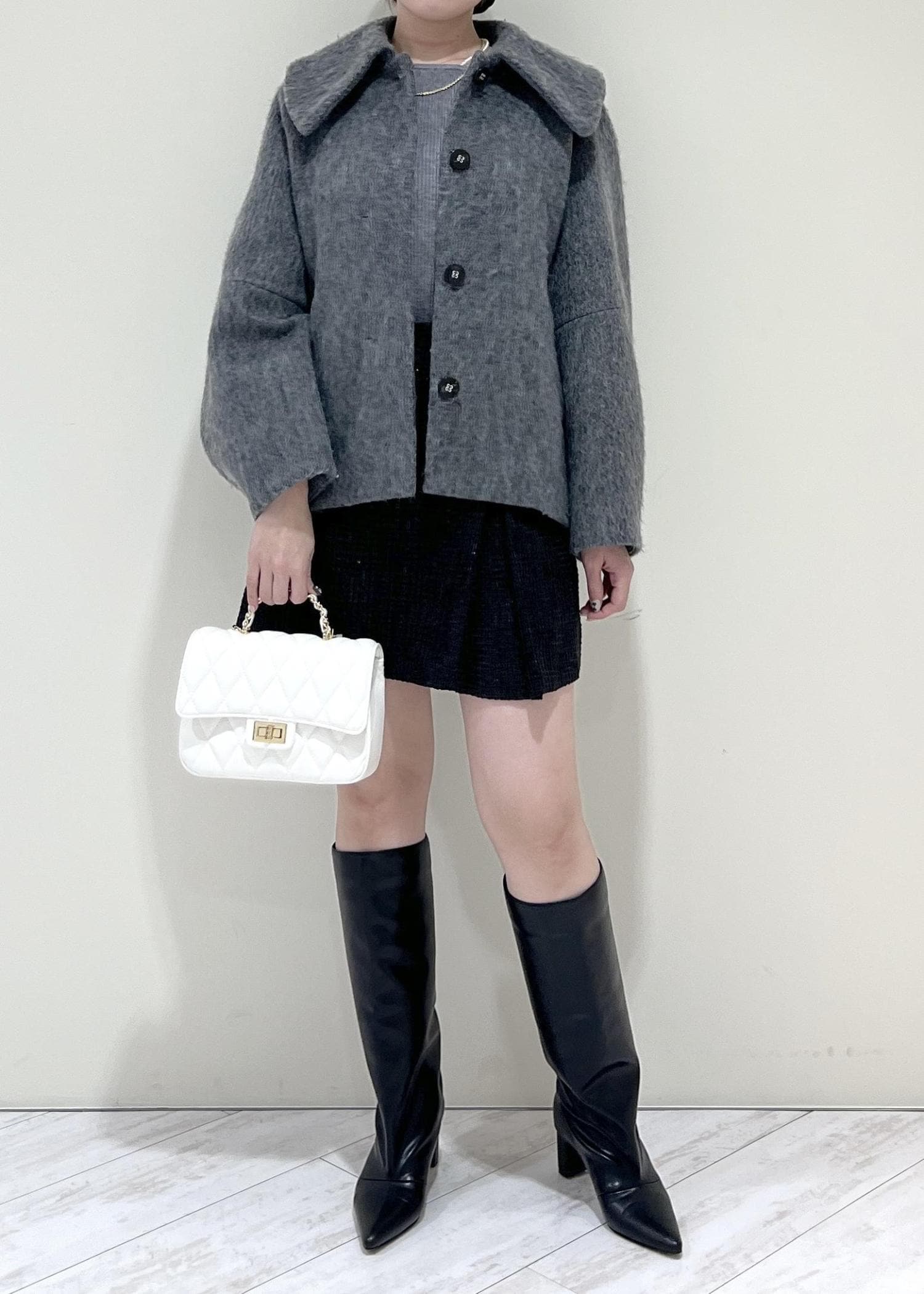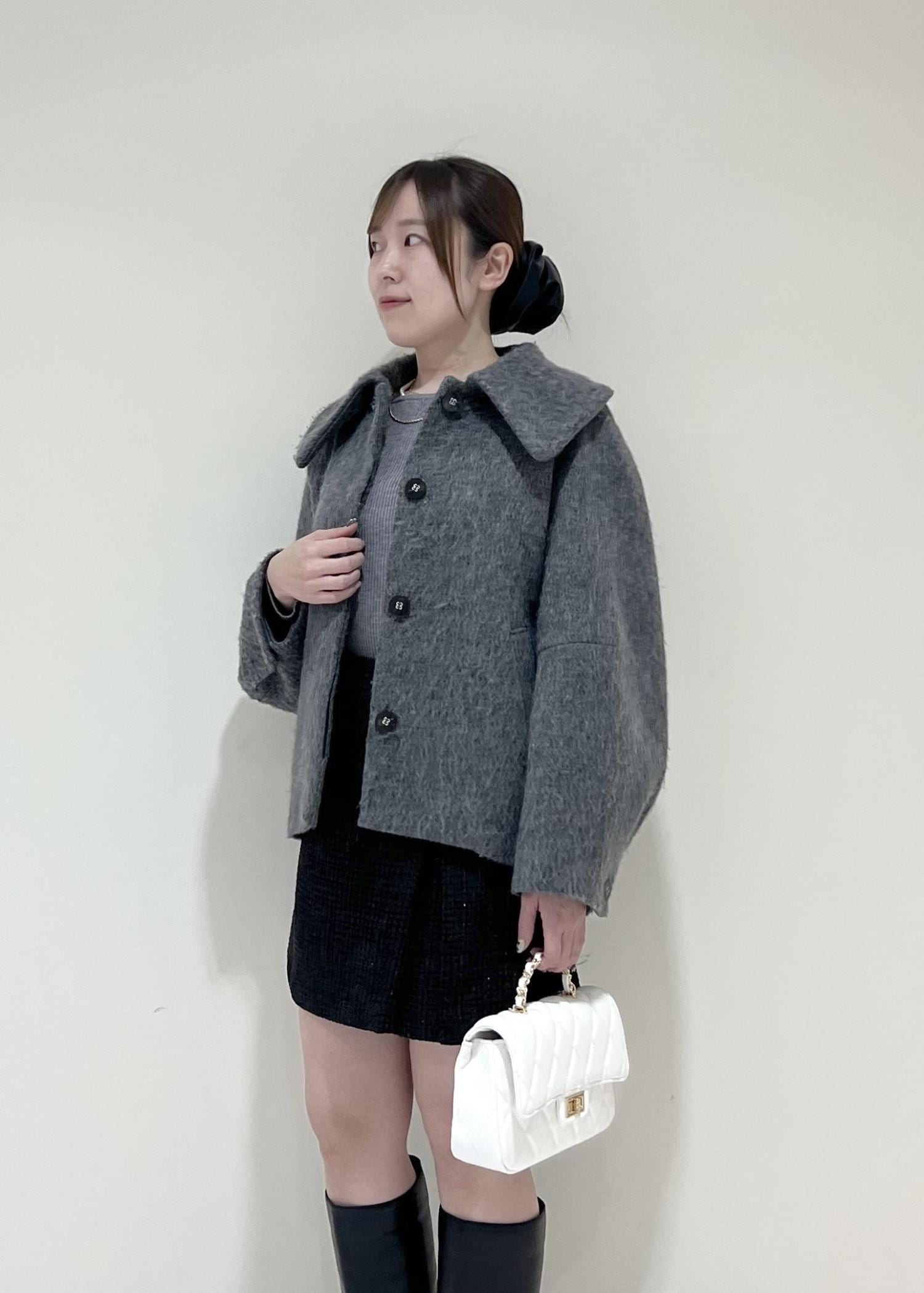 VIS【アウター総選挙1位】ビッグカラーモモンガシャギーショートコートグレー / M¥8,791レビュー身長164cmでMサイズ着用しています!着丈はおしりが隠れるくらいなので、どんなボトムともバランス良く着回せます◎余裕のあるサイズ感なので中にニットやスウェットなど着込みやすいです♡