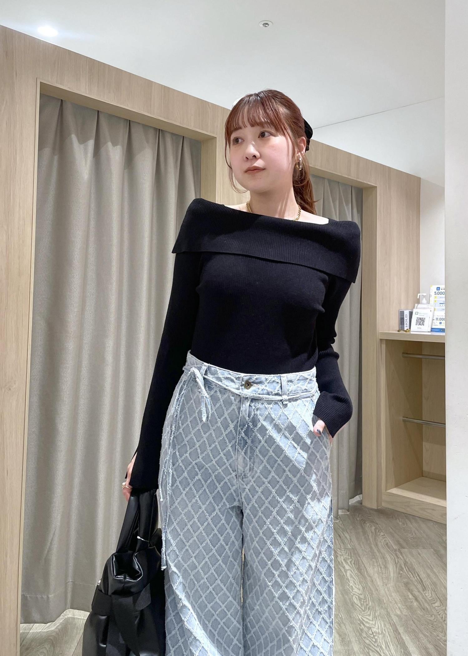 VIS【美得】オフショルダーモチモチリブニット/好評につき再入荷ブラック / F¥5,489レビュー人気の"オフショル風"ニット❤︎マチのおかげで肩紐が見えない、ずり落ちないとオフショルの不安を解消してくれます。デコルテが綺麗に見えるので骨ストさんは特に華奢見えします◎敏感肌ですがチクチク感無く、むしろもちもちとした肌当たりで着心地も良かったです!