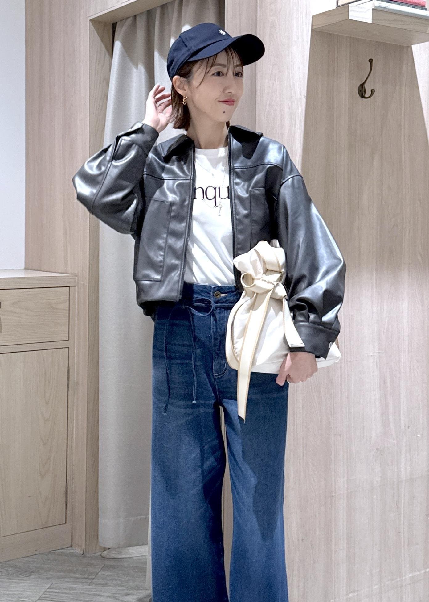 ロンTにブルゾン、デニムを合わせた30代ママの大人カジュアルコーデです!