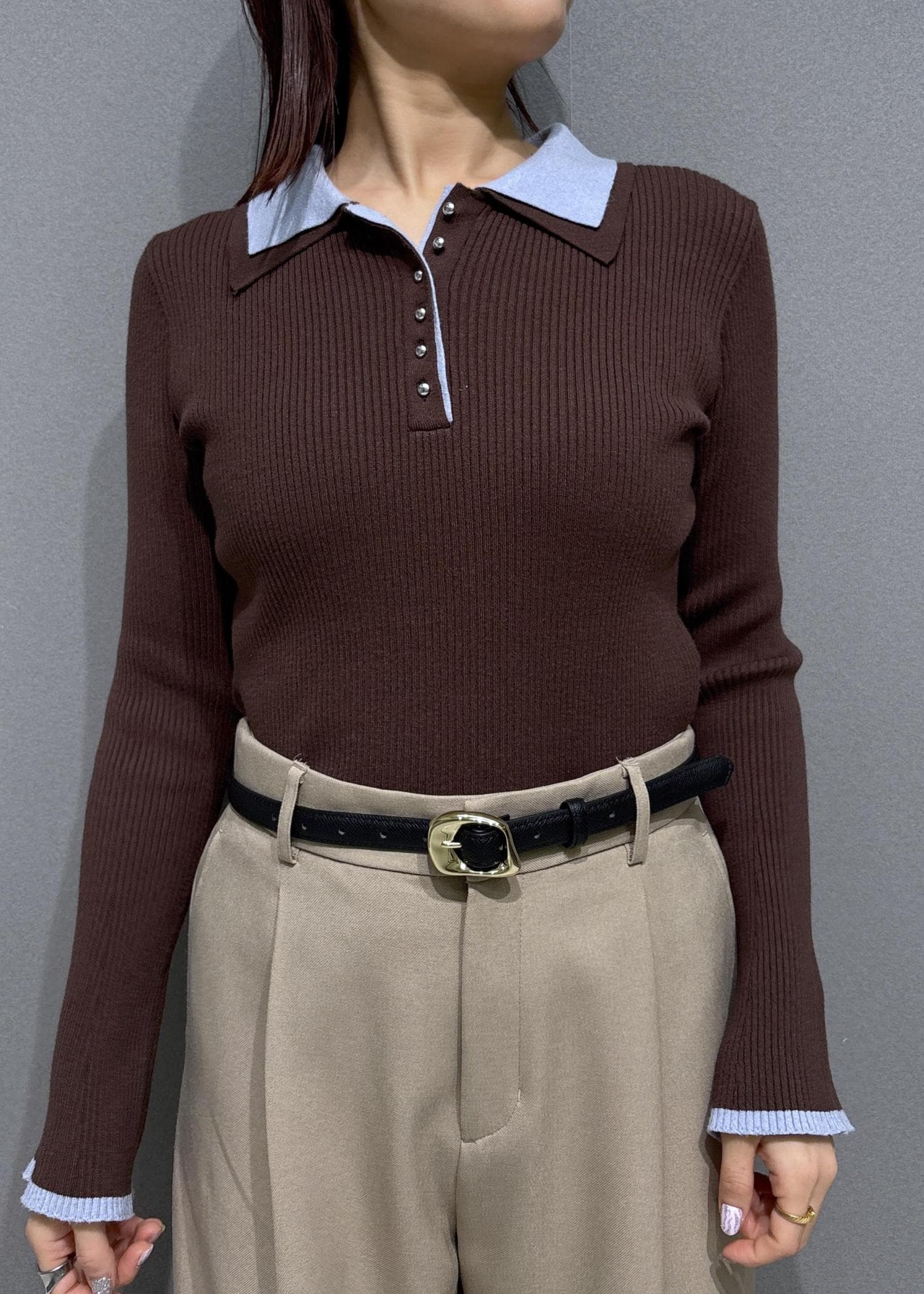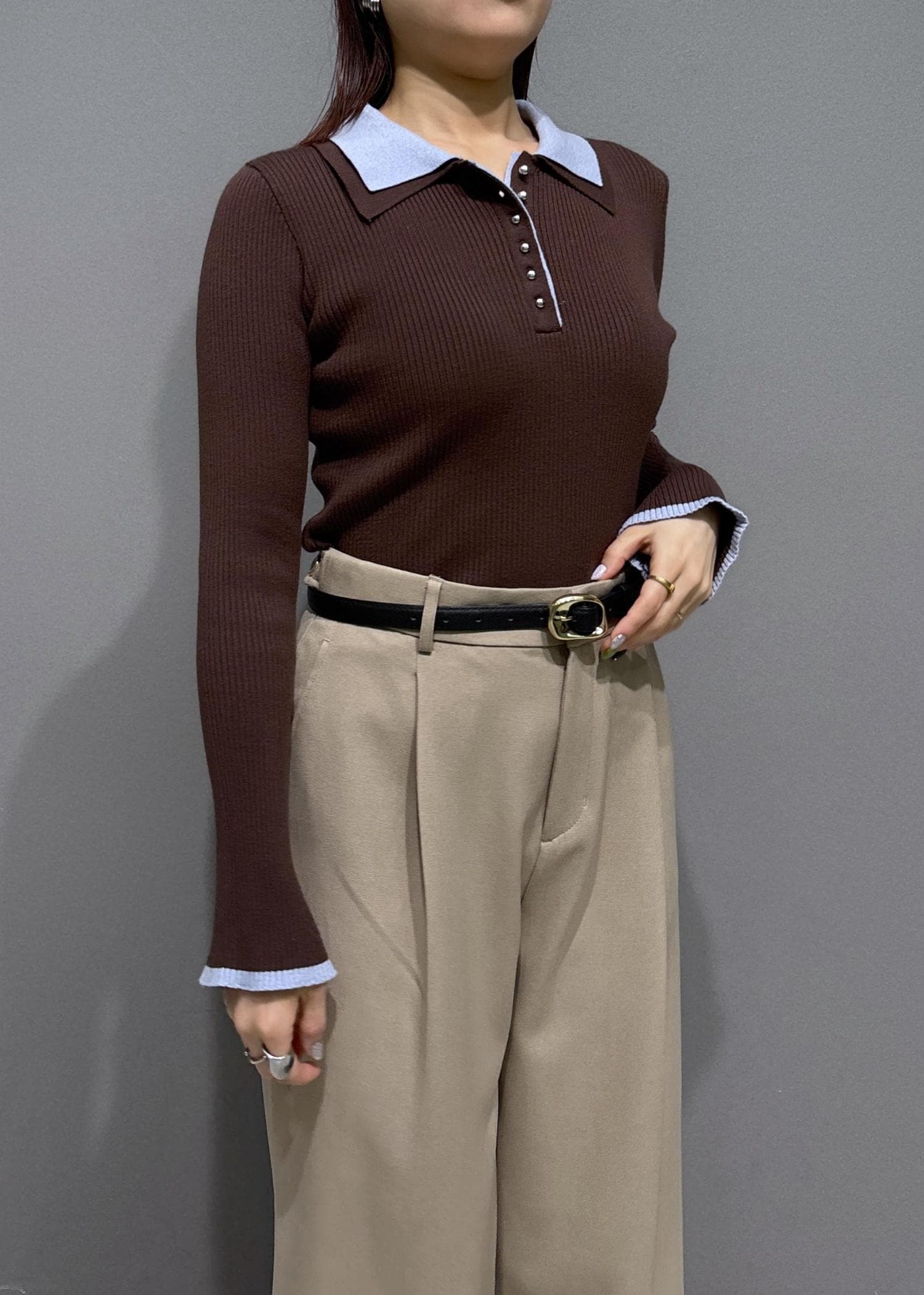 VISダブルカラーポロニットトップスブラウン / F¥5,929レビュー柔らかく伸縮性のあるニットで